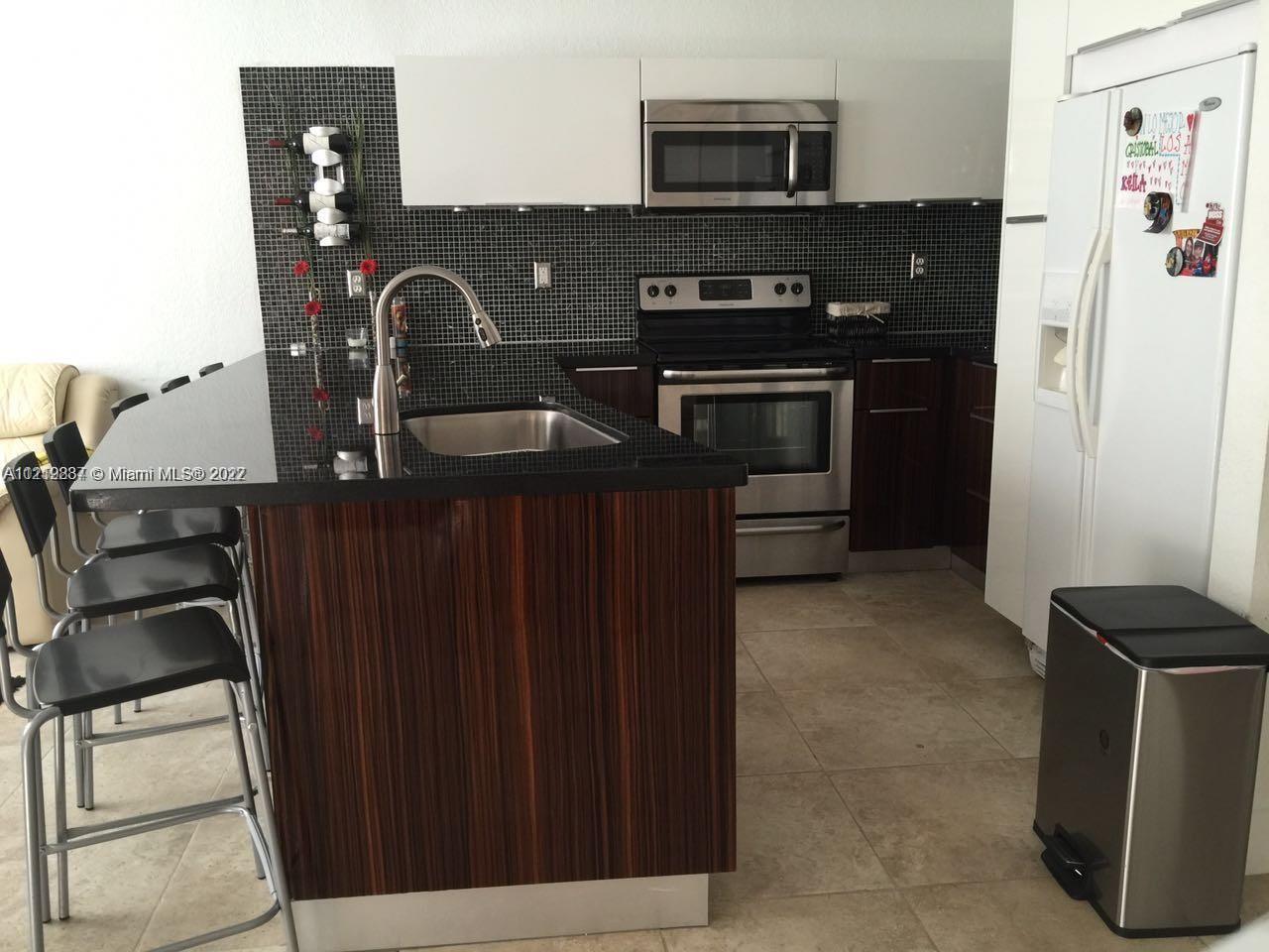 Functional town home with a lot of features: Corner unit with plenty of guest parking. Renovated granite counter top. All the bathroom also remodeled with glass doors. Master bathroom with double vanity. Located downstairs. Fenced patio with pavers. Gated community. Access to Island at Doral clubhouse. don't miss this opportunity.