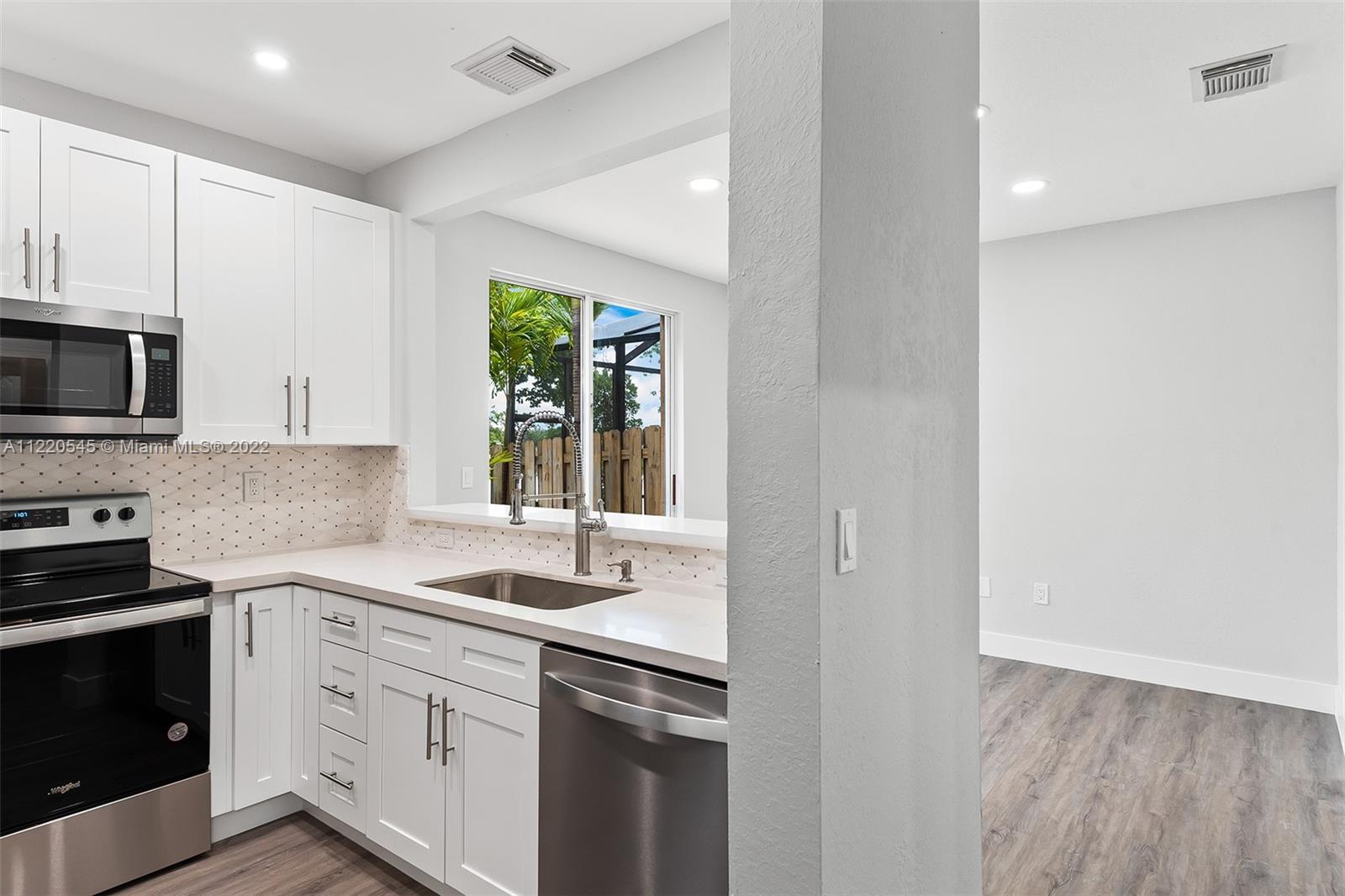 This beautiful Townhome has been completely updated. BRAND NEW AC System. New Kitchen with White Carrera countertops and European White Shaker cabinets. All NEW Whirlpool Stainless Steel appliances. New Samsung Smart Front Load Washer and Dryer as well! All new Vinyl Flooring throughout. ALL 3 Bathrooms fully renovated. Bathrooms have been completed with Custom Vanities done with Carrera tops. Back Patio updated with new landscaping. Freshly painted as well. This home is close to schools and several major highways as well as shopping. With a 1 car garage, Family Room, Dining Room, Living Room off of the open Kitchen and 2.5 baths, this Townhome makes the perfect home for your client!!