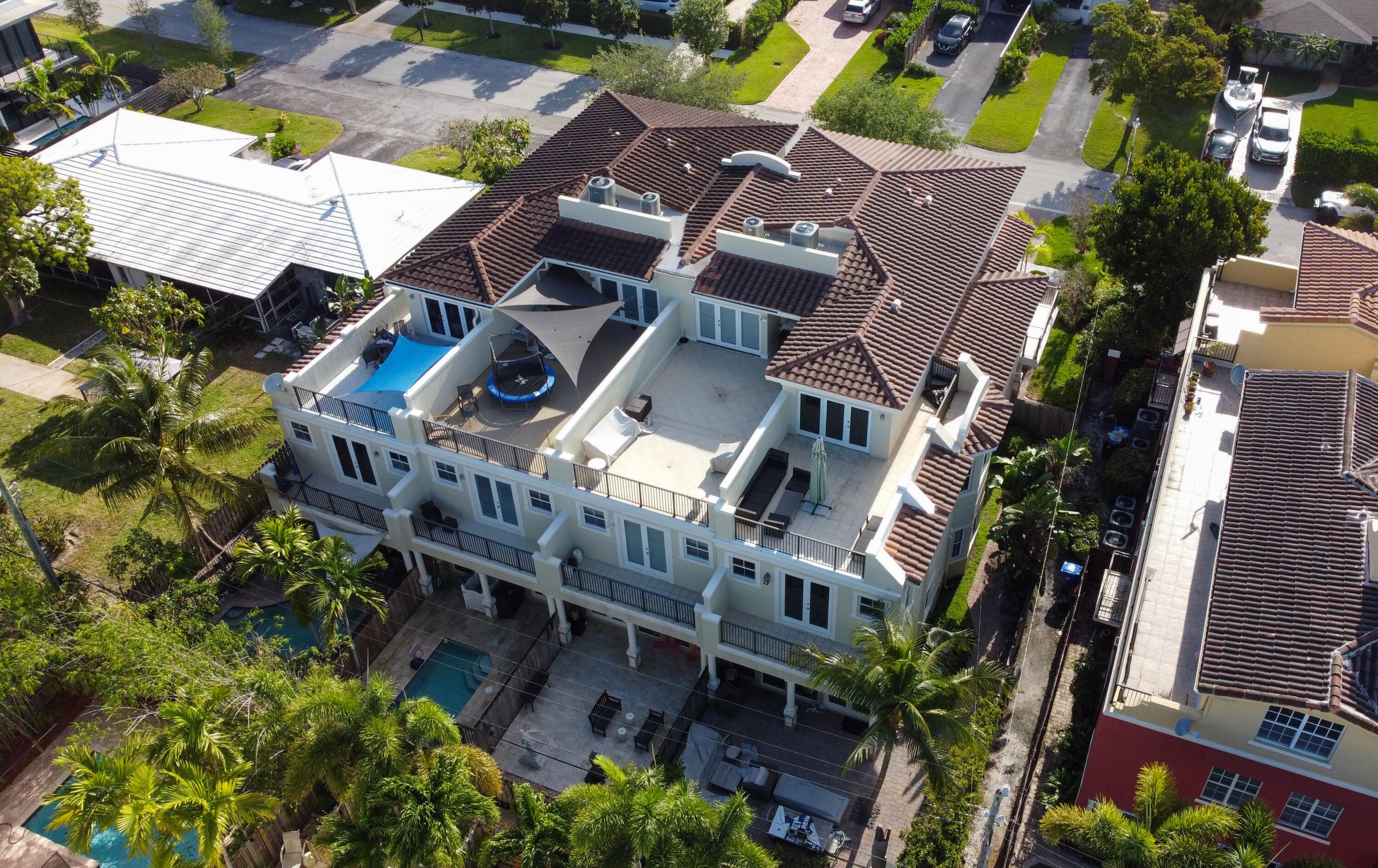 Amazing Corner Trilevel Townhome in highly sought after Coral Ridge/ Bayview neighborhood, with A graded schools. Bright and airy open floor plan, gourmet kitchen with SS appliances, separate dining area, with recessed LED lights and high ceilings throughout. The home boasts a spacious 4 bedrooms + 3.5 baths, over 3500 sq ft, plus a huge rooftop terrace with amazing views of the city. Great backyard for entertaining friends and family w room for a pool. Saturnia marble and laminate floors throughout the house. Immense Master Suite with a DREAM closet. Motorized Shades and black outs, along with the convenience of an elevator. Complete hurricane impact glass. Large 2 car garage w electric car charger and driveway that can accommodate 4 or more cars. NO HOA FEES.