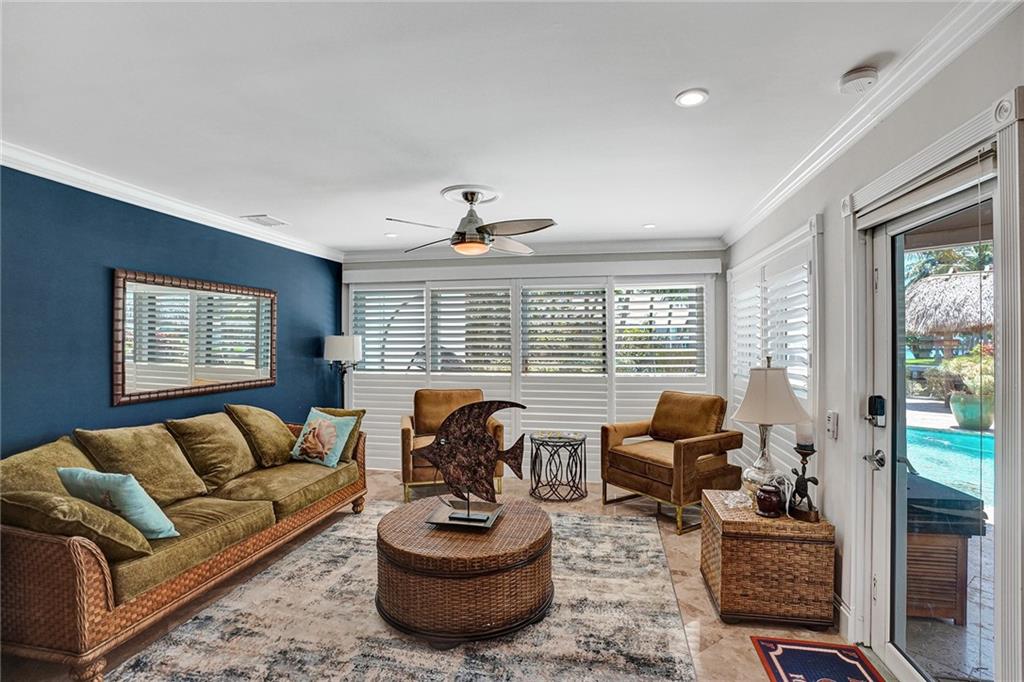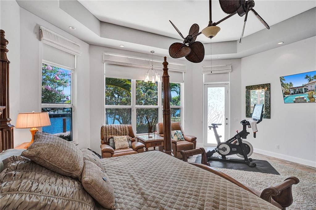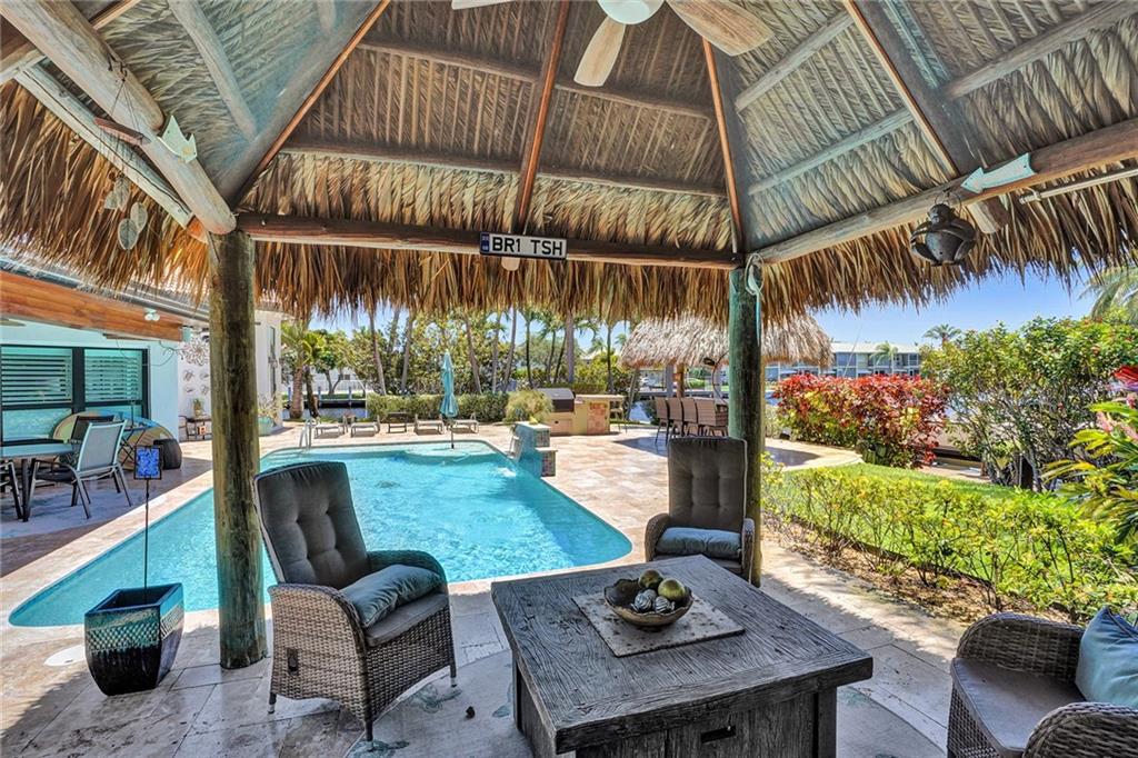 Wow on the Water A Breathtaking 190 foot Point lot w/180ft dock+10,000lb old boat lift. The backyard faces E,NE. There is a constant breeze to enjoy from your backyard. Over 50k in tropical landscaping. Complete privacy! You will find multiple private lounging areas as you explore the property.2 tiki hut fun zones overlooking the newly updated saltwater, heated pool with shallow swim area. Built in gas grill and WHOLE HOME GENERATOR. Travertine all around the exterior.Split&open plan Master suite with 12 ft ceilings, walk in his/hers closets, Updated bathroom,2 car garage, marble and real wood flooring in the bedrooms, Impact Glass throughout, chef's kitchen with Thermador gas cook-top and upgraded appliances,2 wine frig's laundry/espresso bar area off the kitchen.