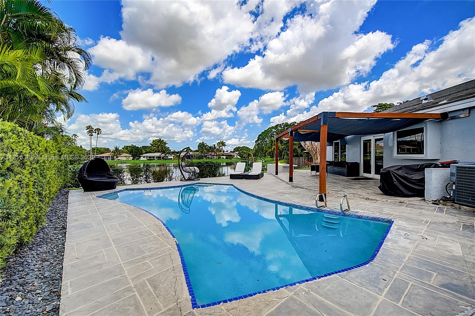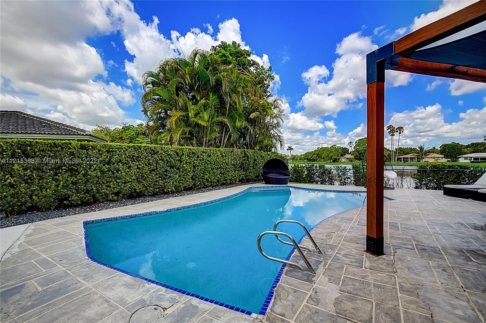 Updated 3 BR / 3.5 BA, Single-Family, FURNISHED, SMART home features vaulted ceilings w/ skylight windows, impact windows & doors, porcelain tile flooring throughout, updated kitchen with quartz countertops w/ waterfall design, SS appliances, W & D, camera system, Roof (<3 Yrs old), A/C (<6 Yrs old), 2-car garage and a shed in back w/ electricity. All bedrooms feature en-suite bathrooms. Soak in the waterfront views from the entertaining-friendly backyard with heated pool, jacuzzi, hammock area and fire pits. This 10K Sq Ft lot sits on a quiet cul de sac just minutes from major highways, Sawgrass Mills, and local beaches. Great investment for future Airbnb opportunities. NO HOA!!