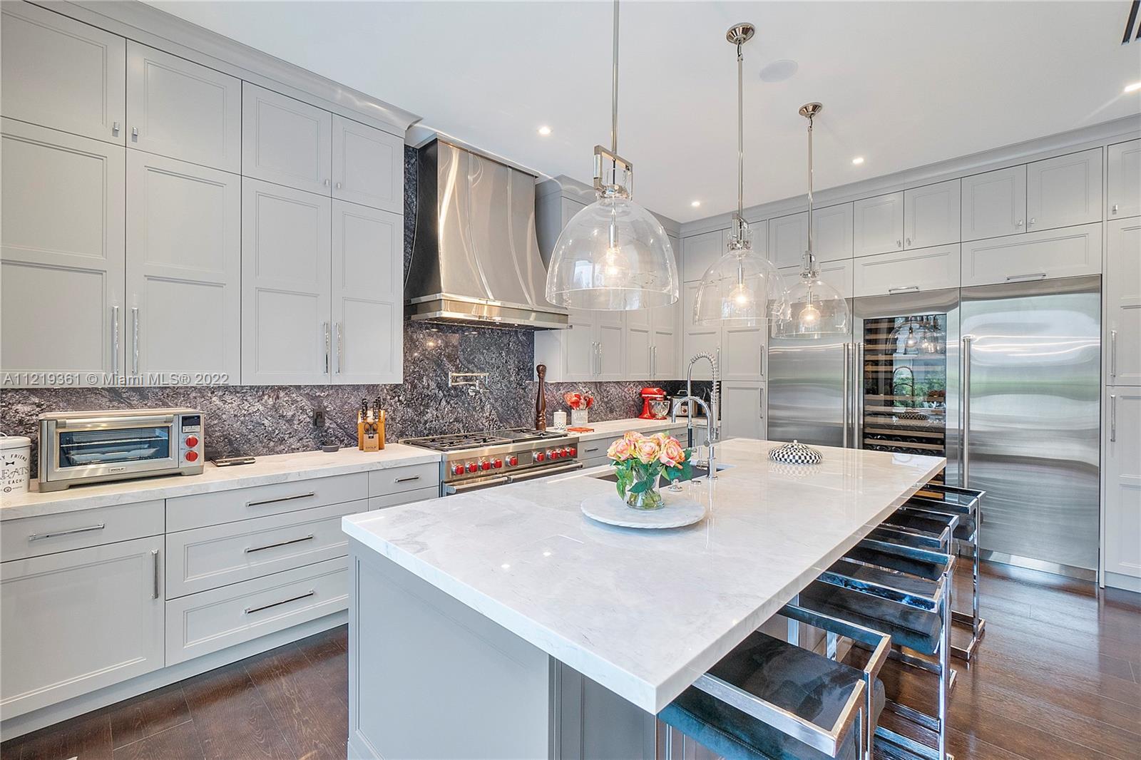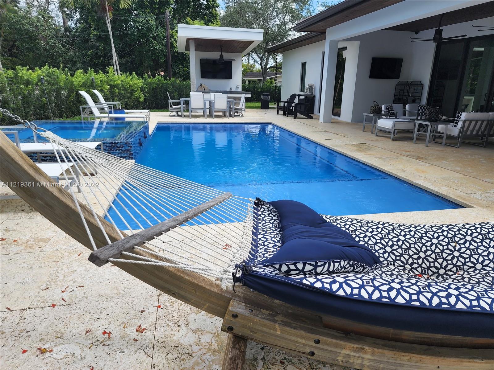 Brand New state of the art home in North Pinecrest Luxe-living as it finest. A split plan 5 BR/5BA built in 2022, Featuring extra high ceilings, private foyer entrance large open floor plan. Enjoy a fully equipped gourmet kit w/ custom designed wood cabinets, Subzero freezer, fridge & wine cooler/wolf appl, dual stove & Quartz counters, oversize isle w/coffee station & bar. pool with Spa w/heater, outdoor kitchen and a cabana bath. This stunning property offers 3 on-suite bedrooms. Master suite features coffee station and built-in fridge, walk-in closets, expansive glass enclosed shower & tub, smart toilet, linen closets & TV. Elec. shades, wood floors, 3 car garage, parking for 10+ cars, Elec car charging station, laundry room, impact windows & doors. No detail was left behind!!!