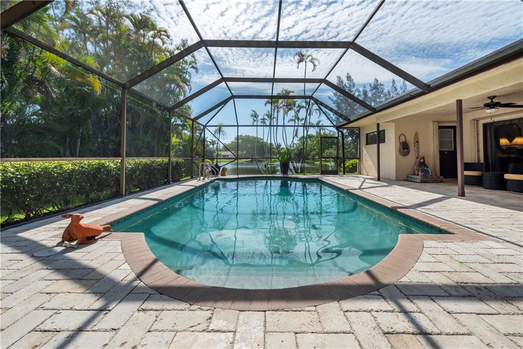 Rarely Available Plantation Harbor "original owner" Beauty! Walk into this 5 bedroom, 3 bathroom home and feel right at home! This meticulously maintained home includes wood ceilings in the living room, custom kitchen cabinets with granite counters, tile backsplash, top of the line stainless appliances, large eat-in Kitchen, formal dining room, family room, wet bar, office and more! Roof was replaced in 2017 and the house has full hurricane protection. Pool is salt water. Electrical panel is 2 years old. Huge 1/2 acre corner lot sitting next to a beautiful wide sparkling lake. Four wall mounted flat screen TV's included. Minutes from schools, shopping, Plantation Heritage Park, Happy Trails dog park, highways and more! Great location and NO HOA! This one won't last!