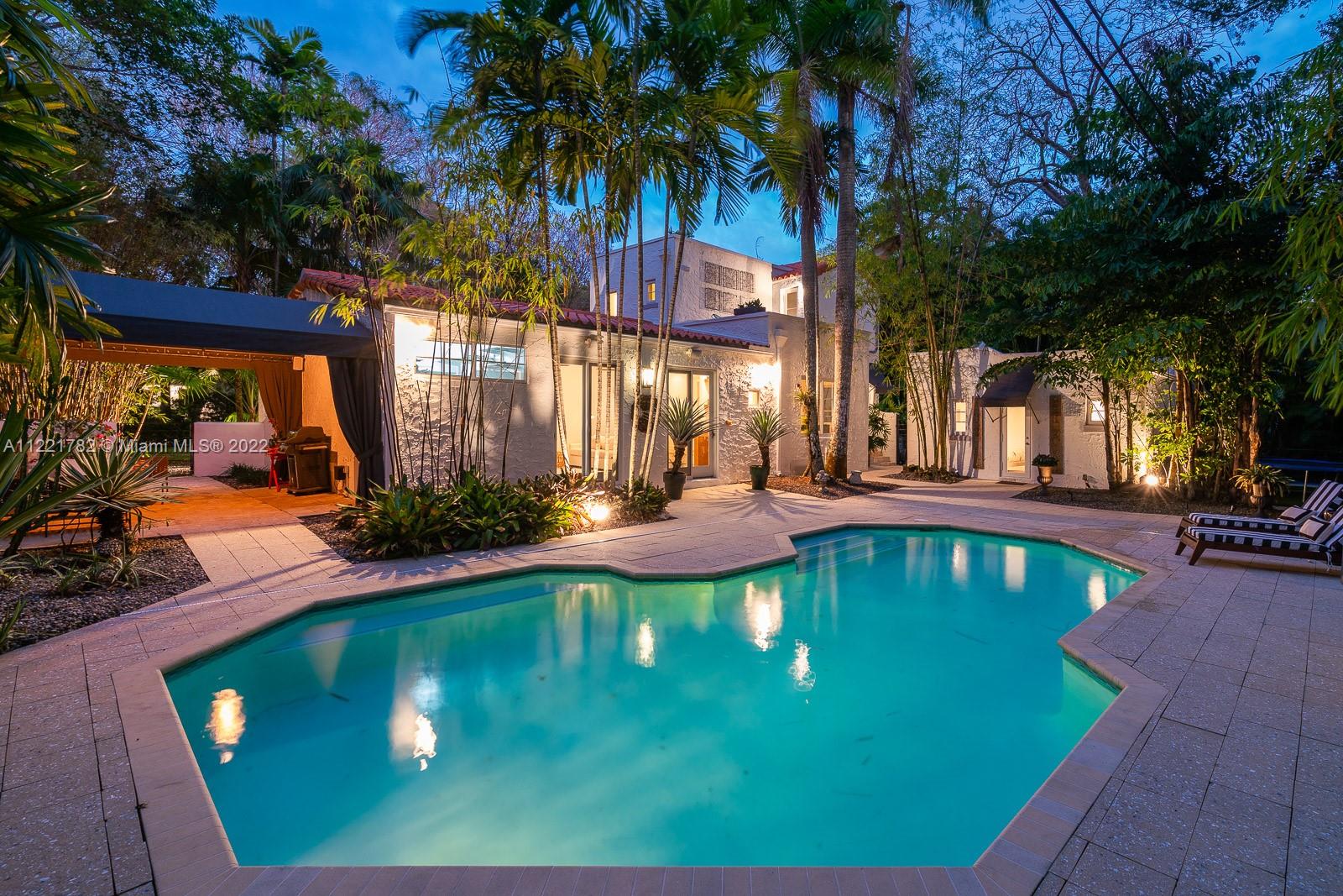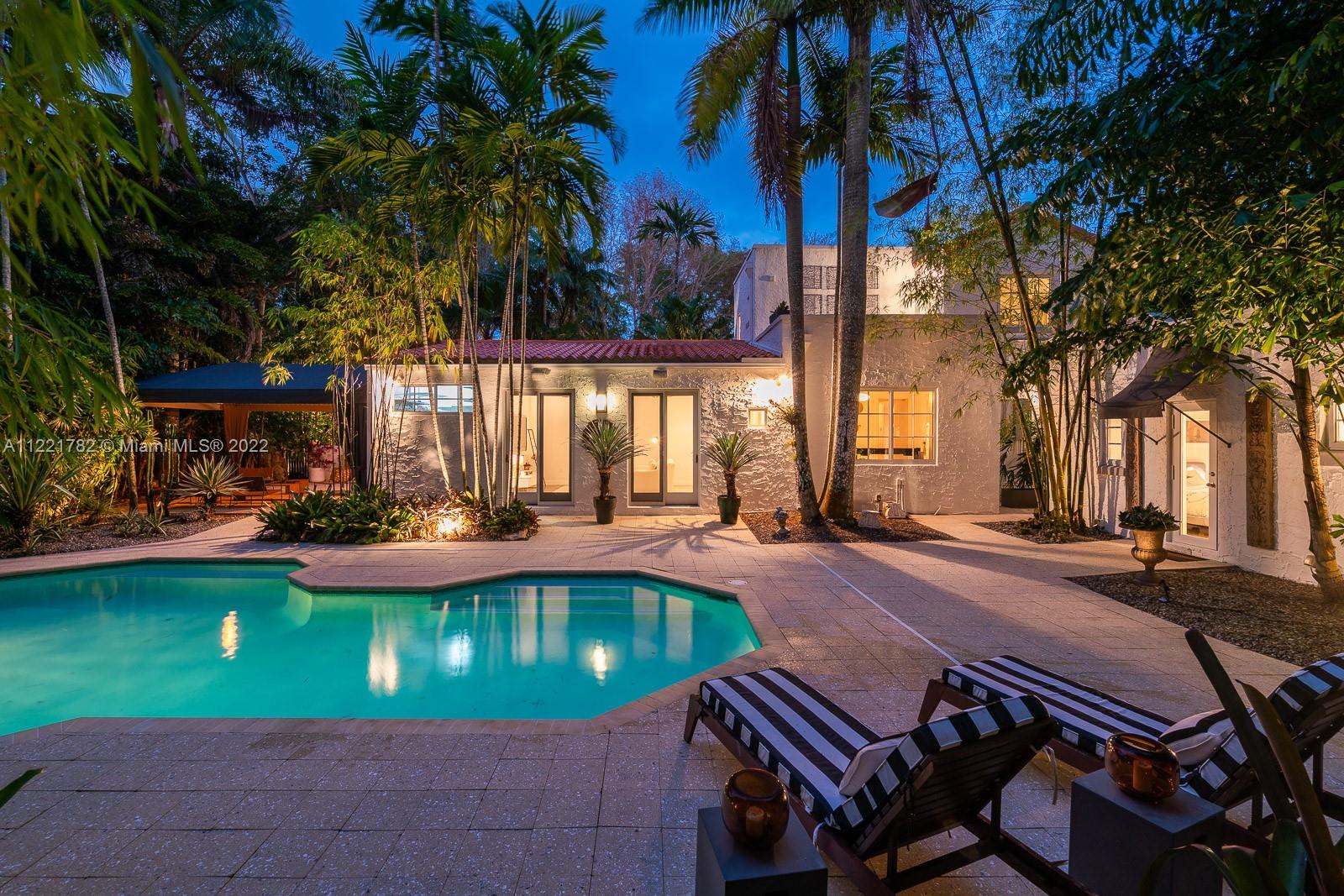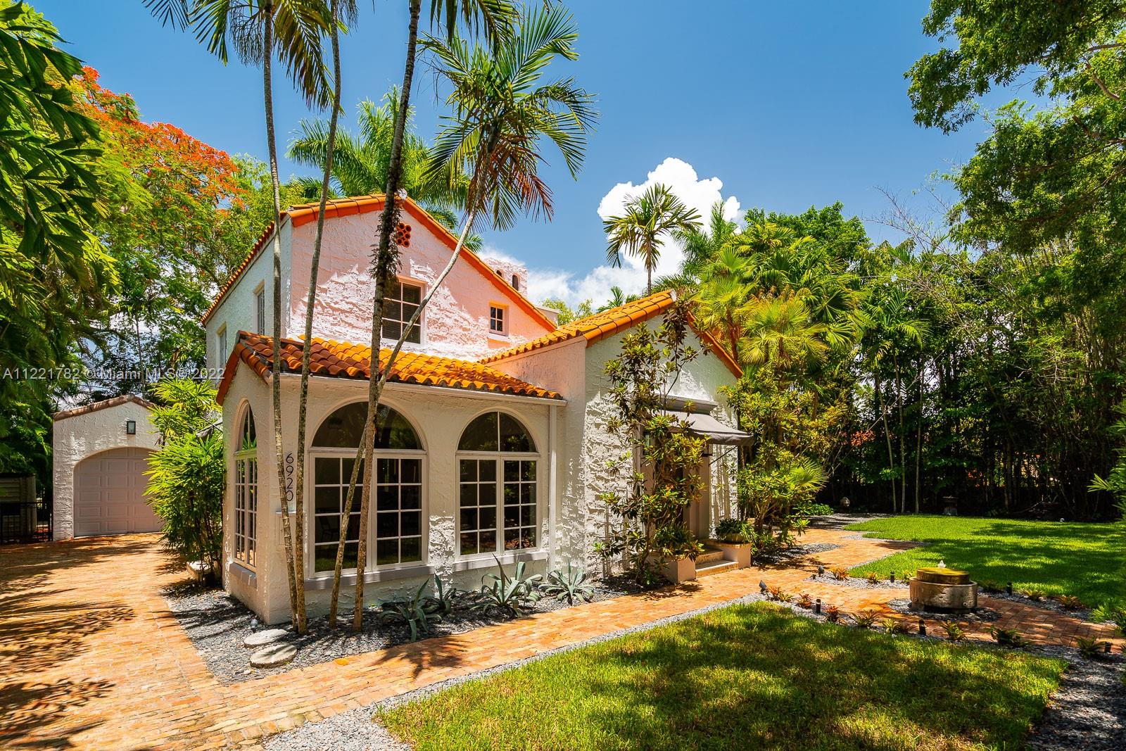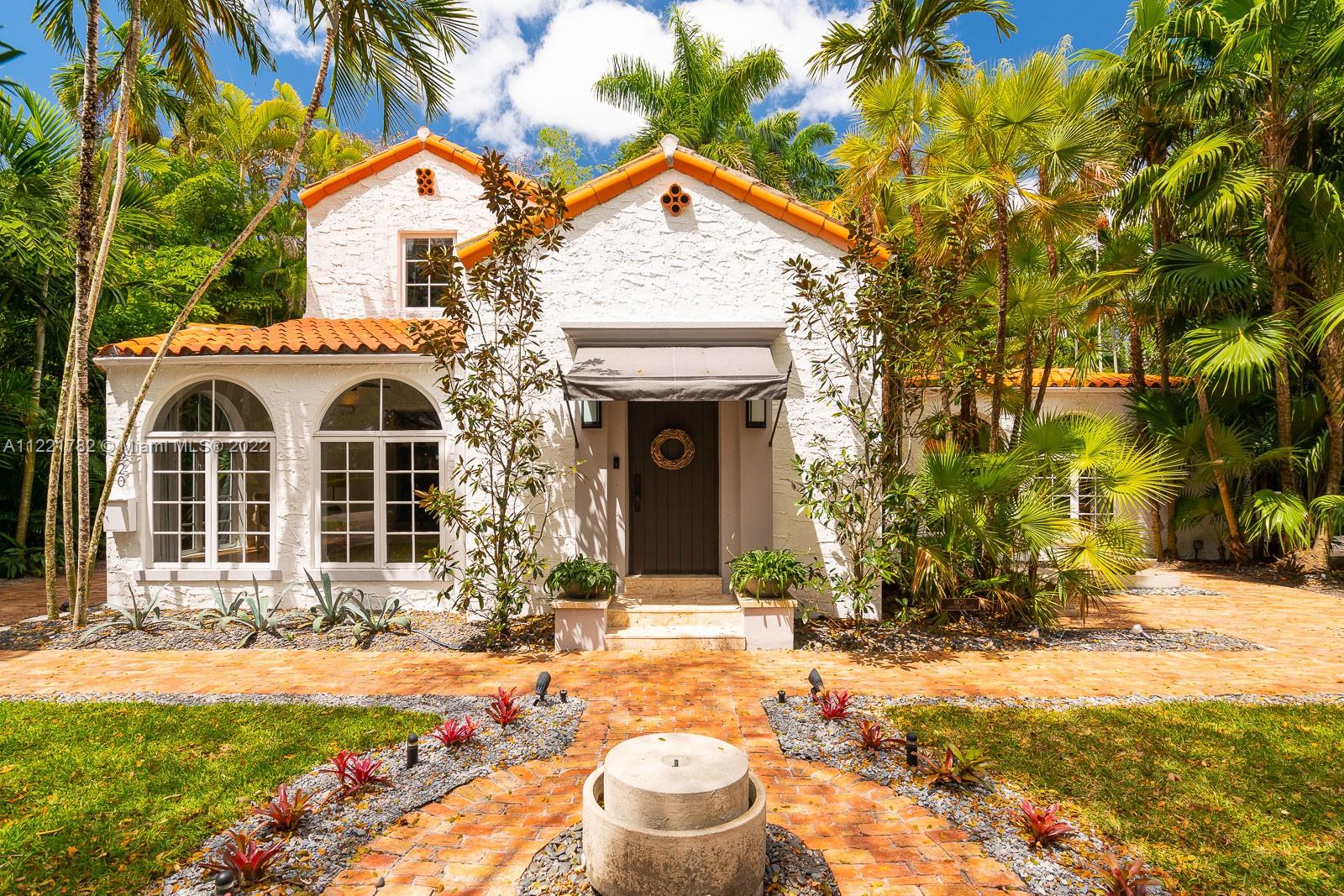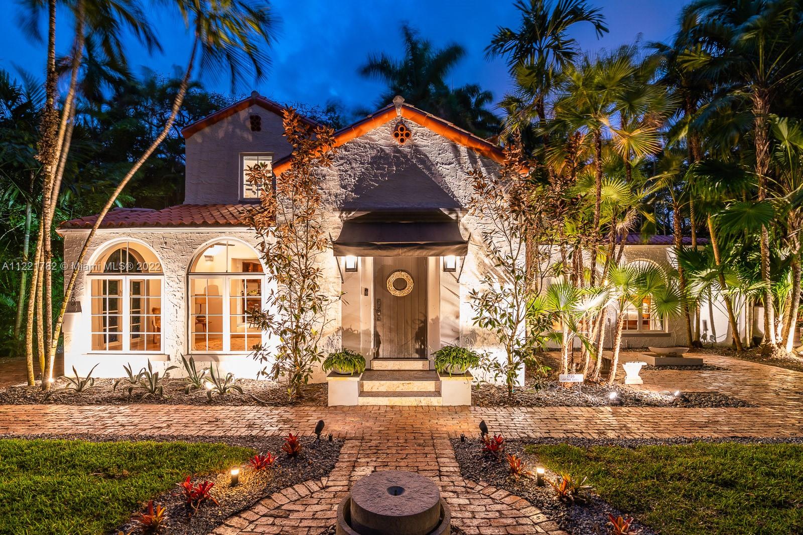 Vintage 1920's Old Spanish style villa in the Sunset Elem. School District. Main house is 3/3 + separate 1/1 guest house. 20'X30' pool, covered patio. Prized South Gables location next door to Coconut Grove, close to Matheson Hammock, Fairchild Gardens, South Miami restaurants, Whole Foods, shopping & more. Listed in the Coral Gables Register of Historic Places. The vintage charm of this home is intact and is now enhanced with chic youthful, Modernist updating. Main living room has oak floors & a fireplace. Eat-in kitchen with walnut cabinets. Primary bedroom suite on 1st floor. 2 /1 upstairs. 1/1 in guest house. Impact glass. Garage. Approx. 3000 sq'. Lot is 97'X120' (11,640 sq'). This is a turn-key, historic home in a top Coral Gables neighborhood with Sunset Elem. as its home school!