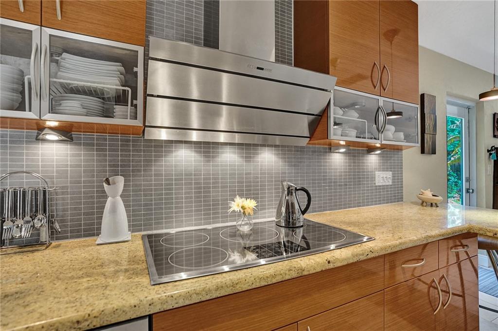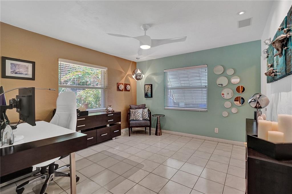 Beautiful & tastefully updated home located in hot Poinsettia Heights neighborhood! Wonderful open floor plan w/ spacious living room, cool vaulted beam ceilings & romantic wood burning fireplace. Amazing chefs kitchen with sleek modern Italian style cabinets, granite counters with breakfast bar & high-end stainless appliances. Generous size bedrooms both with en-suite bathrooms updated to the highest standards w/ floor-to ceiling tile, glass enclosed shower & ultra modern fixtures. Amazing rear garden totally fenced & private surrounded by lush tropical landscaping w/ ample space to design your own pool. Other notable features include; clay barrel tile roof 3 years old still under warranty, brand new A/C, Impact glass windows & doors in addition to accordion shutters for full protection.