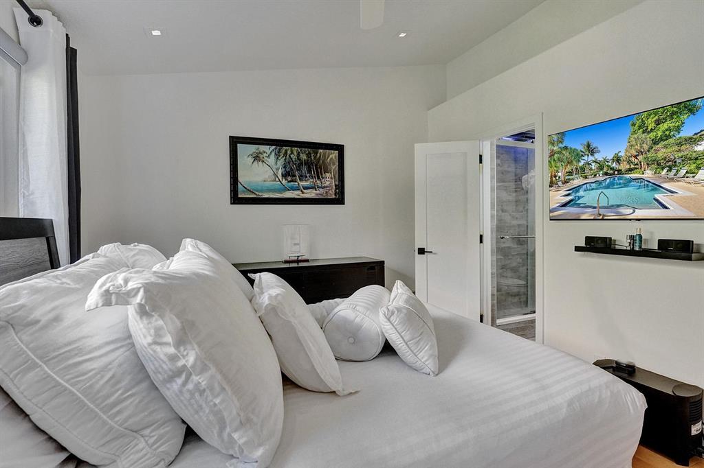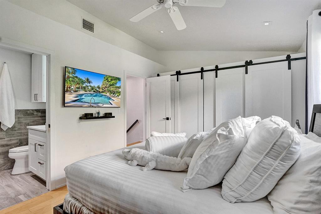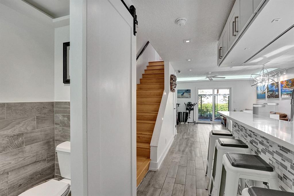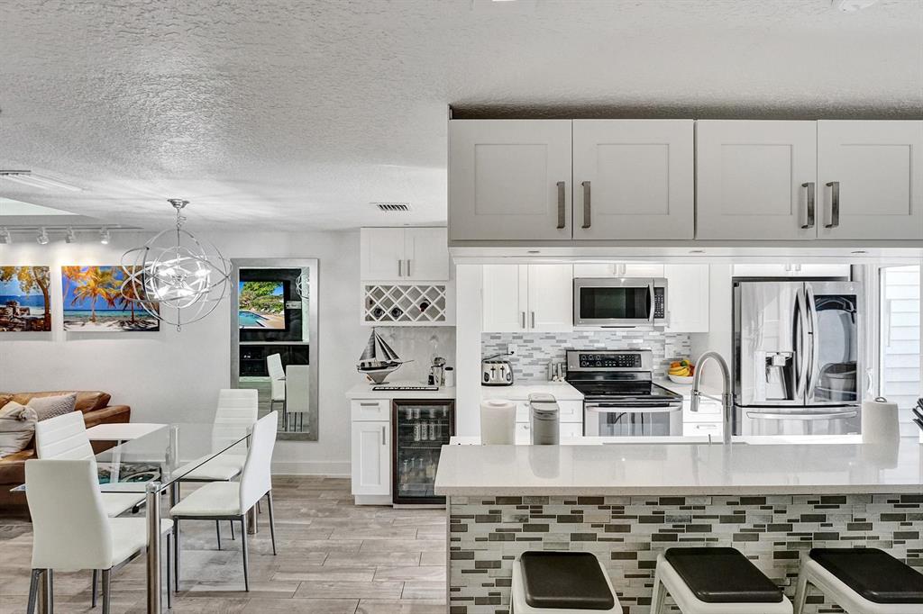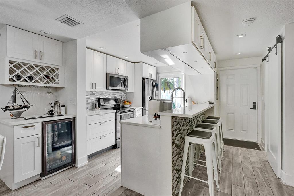 Welcome to one of Pompano Beaches FINEST townhomes. Located in the waterfront community of Sun Harbor, this garden view unit has undergone a HIGH END renovation where NO details were overlooked. EVERYTHING is done here so bring your clothes and toothbrush. LG appliances with oversized refrigerator in kitchen including washer/dryer upstairs. Updated electrical panel with generator input and easy transfer switch. LED recessed lighting through-out, IMPACT Windows and Sliding doors, white QUARTZ counter tops with custom white shaker cabinets. This unit has tons of additional cabinet and pantry storage as well as a TANKLESS water heater. Up the stairs you will find 2 main bedrooms with vaulted ceilings and En-suite baths. Bathroom features include double RAIN SHOWER heads, custom lighting and