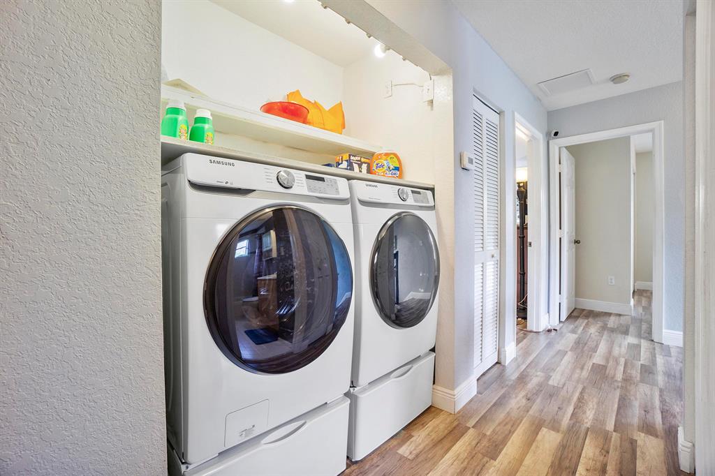 Behold the best beautiful home money can buy in this market that has it all! Alas a 4 bedroom plus den/ 2 and a half bathroom home with 2 floors, air conditioned/ insulated two car tiled garage, pool and spa on the lake within a manned gated low HOA (only $140a month) neighborhood that's close to everything! Plenty of airy space throughout, shining with tons of natural light from all the windows! The den is on the first floor with elegant french doors and two large windows, perfect for a bedroom convert, guest room, reading room or hobby room. The air conditioned / insulated tiled garage makes for another whole living space with a ceiling fan, built in professional salon chair & shampoo workstation plus 3 mirrored closets, cabinets and shelving. Home has a complete water filtration system.