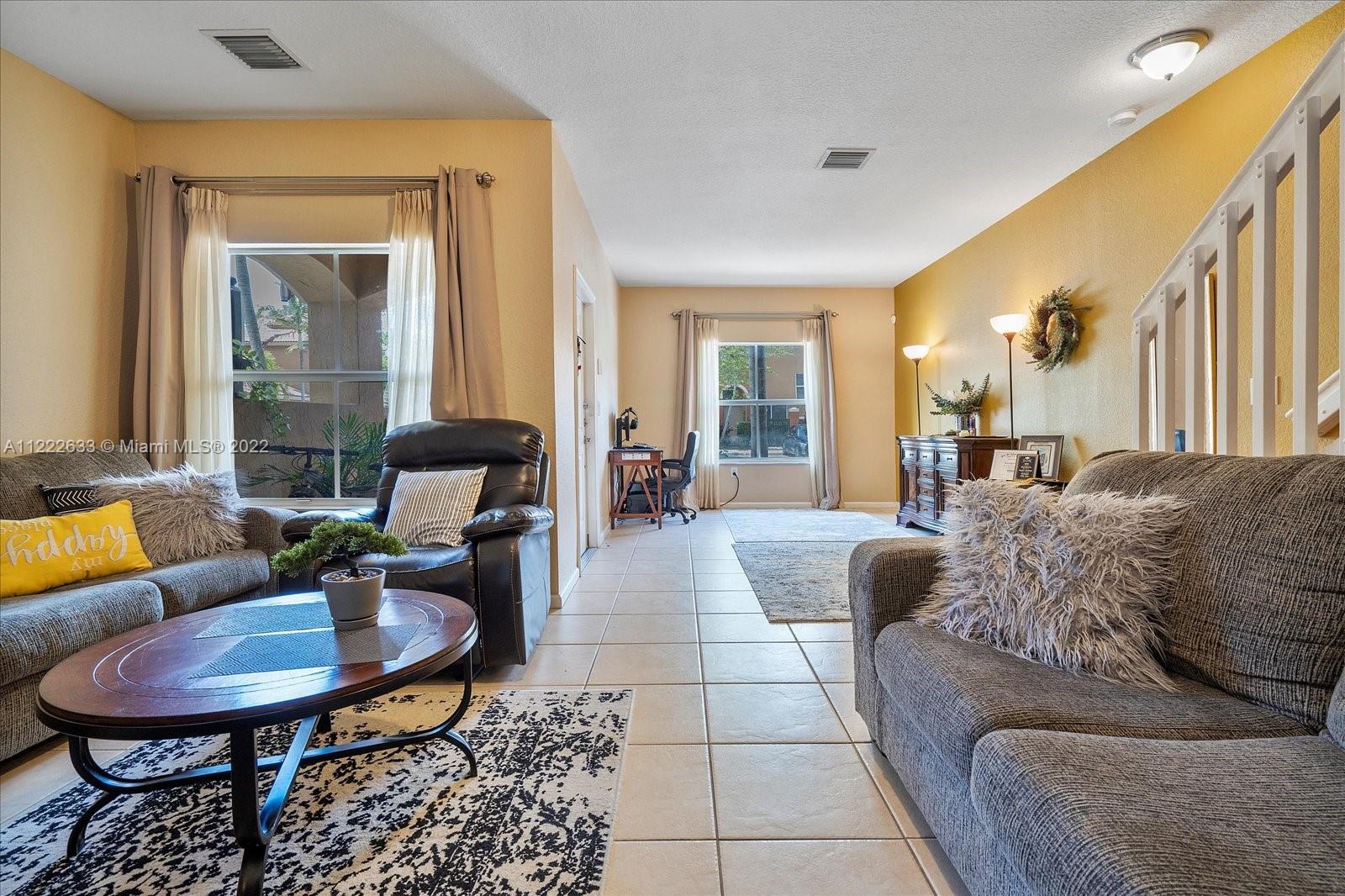 Great opportunity for investors; great tenants in place. Spacious corner unit *** 3 bedroom / 2.5 bath *** Located in a gated community with a pool and playground. This property features tile floor downstairs and laminate floor upstairs (replaced in 2019), master bedroom with walk-in closet, separate laundry room with full size W/D replaced in 2020, impact windows, private open air patio, 2 assigned parking spaces + guest parking. Excellent location, A+ school, walking distance to Publix, Planet Fitness etc. Shopping, entertainment, dining, and state park are only a few minutes away. Location offers easy access to all major roadways, easy access to Florida Turnpike and I-75.