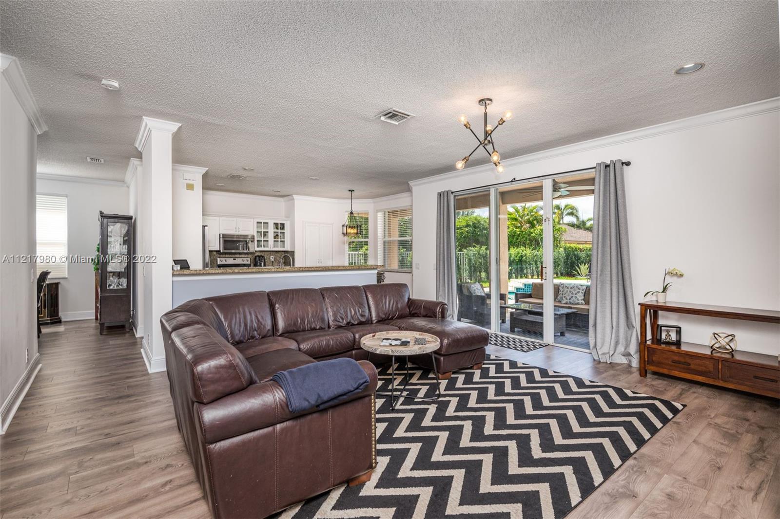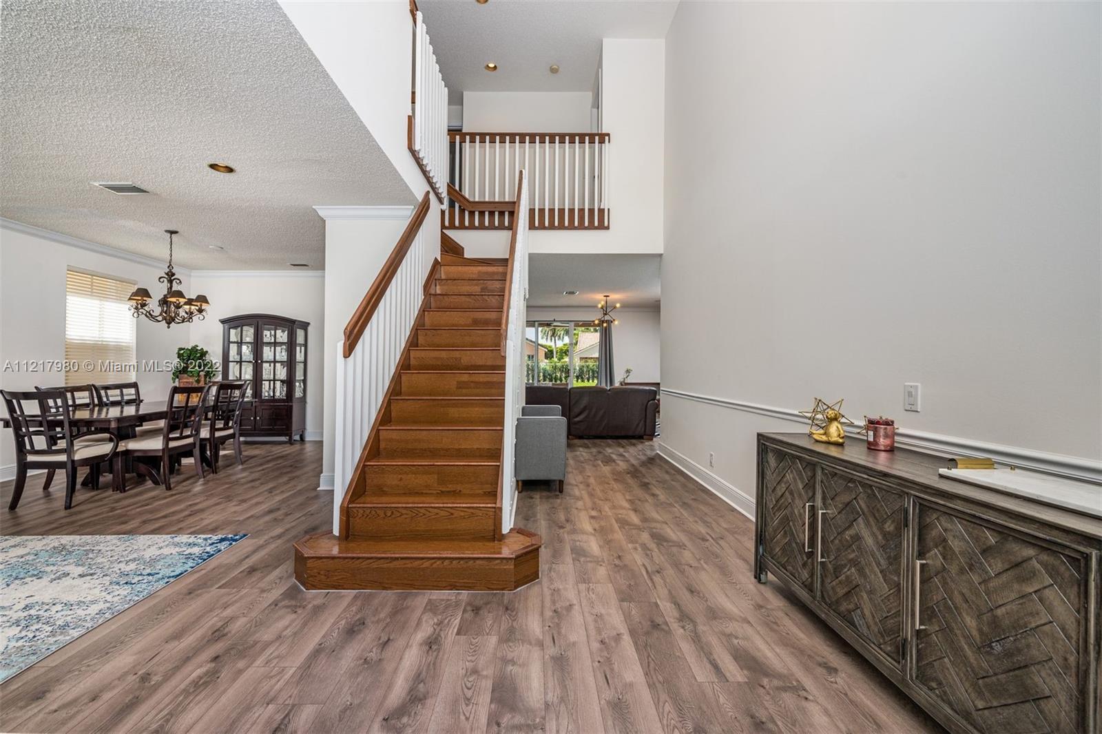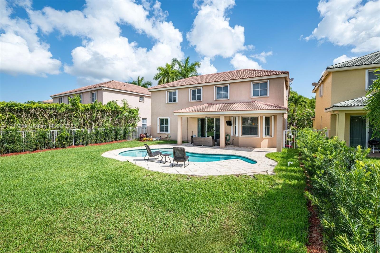 Magnificent 5 bedroom 4 bath home in the highly coveted Savanna Grove II neighborhood of Weston. Breathtaking foyer with 2-story ceilings and a grand staircase leading to the 2nd floor. Newly installed flooring throughout the 1st floor, with a clean, modern design. Freshly painted in cool grey tones to appeal to all tastes. Eat-in kitchen with white cabinetry and glass accent doors, granite counters and stainless steel appliances. Kitchen opens to the family room. The perfect setting to entertain or enjoy time together with the family. Separate living and dining area. Sliding doors lead to the outside patio and pool situated on a spacious backyard. Gated community with a fabulous clubhouse, pool and waterslides. A+ schools. Enjoy the South Florida lifestyle!!