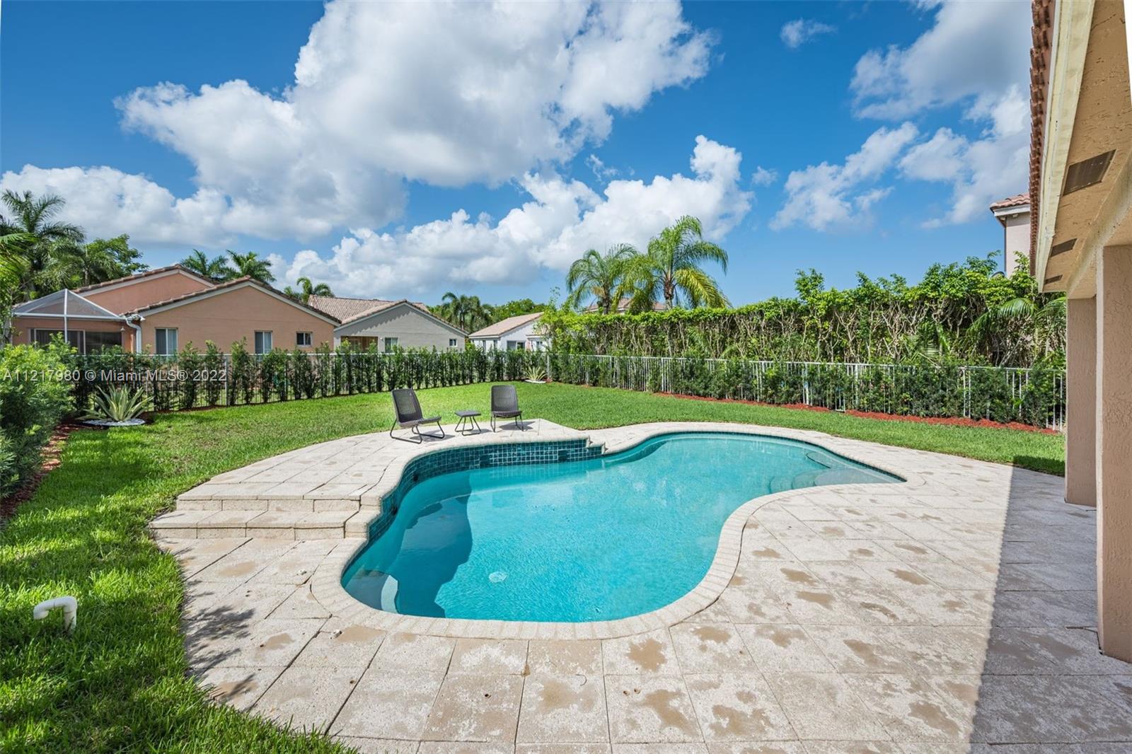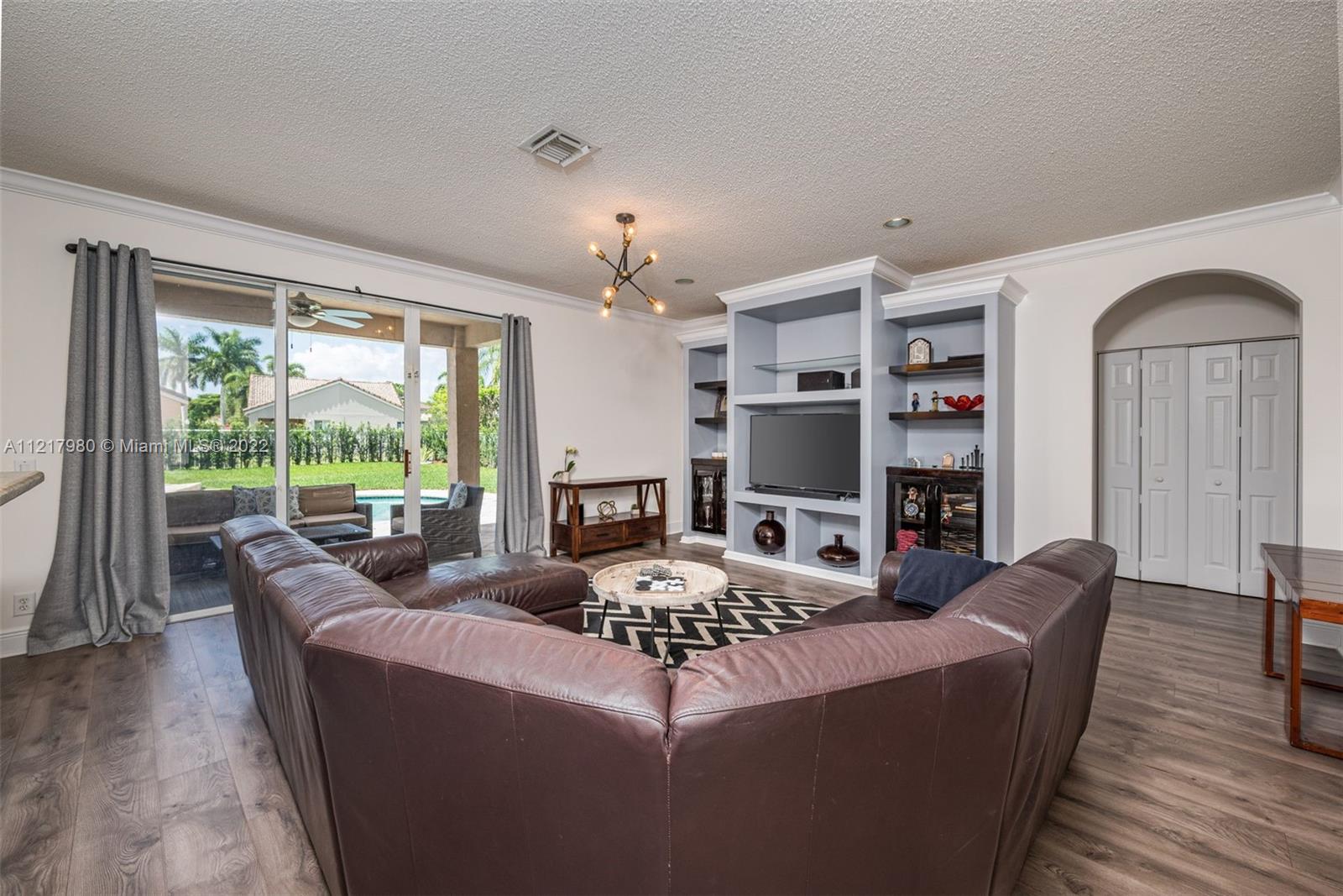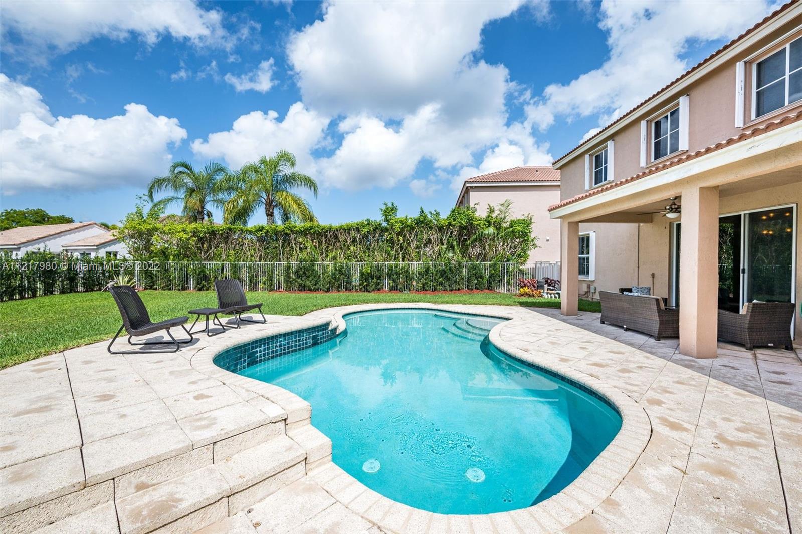 Magnificent 5 bedroom 4 bath home in the highly coveted Savanna Grove II neighborhood of Weston. Breathtaking foyer with 2-story ceilings and a grand staircase leading to the 2nd floor. Newly installed flooring throughout the 1st floor, with a clean, modern design. Freshly painted in cool grey tones to appeal to all tastes. Eat-in kitchen with white cabinetry and glass accent doors, granite counters and stainless steel appliances. Kitchen opens to the family room. The perfect setting to entertain or enjoy time together with the family. Separate living and dining area. Sliding doors lead to the outside patio and pool situated on a spacious backyard. Gated community with a fabulous clubhouse, pool and waterslides. A+ schools. Enjoy the South Florida lifestyle!!