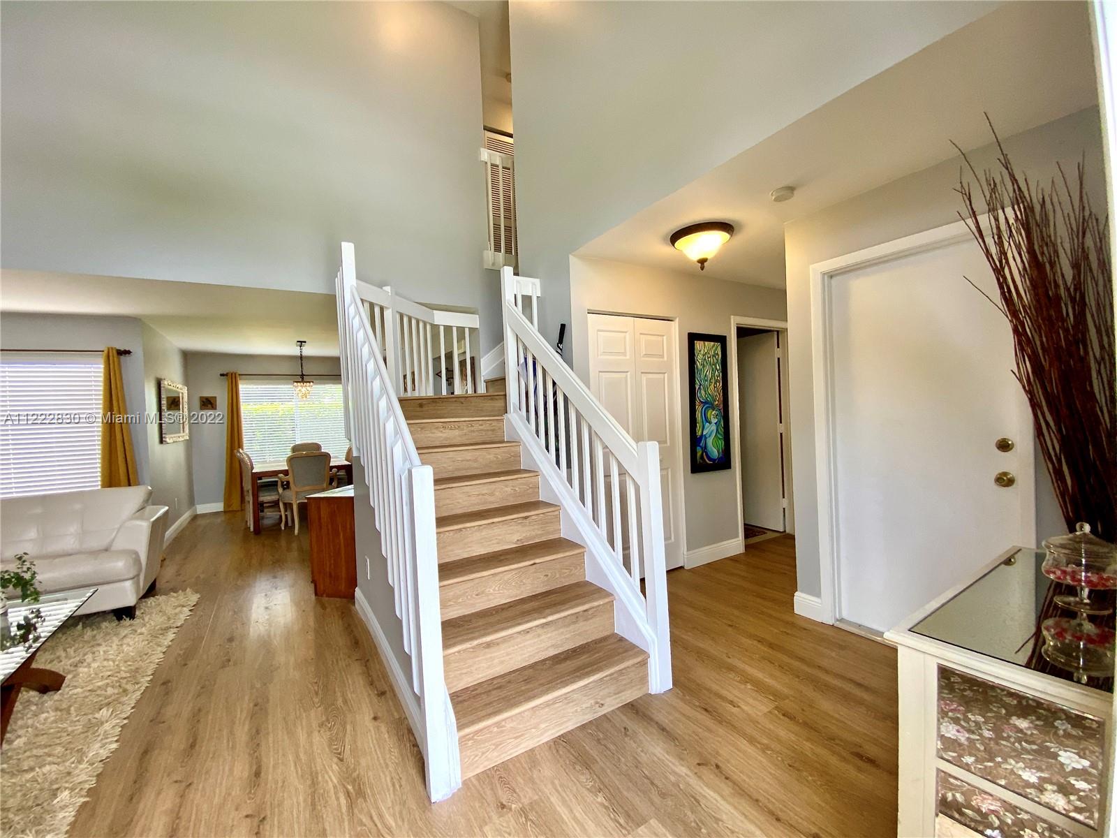 Enjoy a tranquil view of the sunset on your backyard overlooking the lake with these 4 bedrooms 2 1/2 bathrooms home. Newer roof November 2919, A/C 2020, new laminated wood floors throughout, brand new wood kitchen cabinets, quartz countertop with coordinating backsplash, island with drawers and decorative panels, deep sink. Recently remodeled two bathrooms, fenced backyard, impact garage door and much more, low HOA fees, Community with Pool, Tennis Courts, 24 hr. security and camaras in both entrances, great location close to Pembroke Lakes Mall, Shops at Pembroke Gardens, CB Smith Park, Memorial Hospitals, International cuisine Restaurants and Shops, Elementary and Middle School Charters. Ready for Quick closing!!!