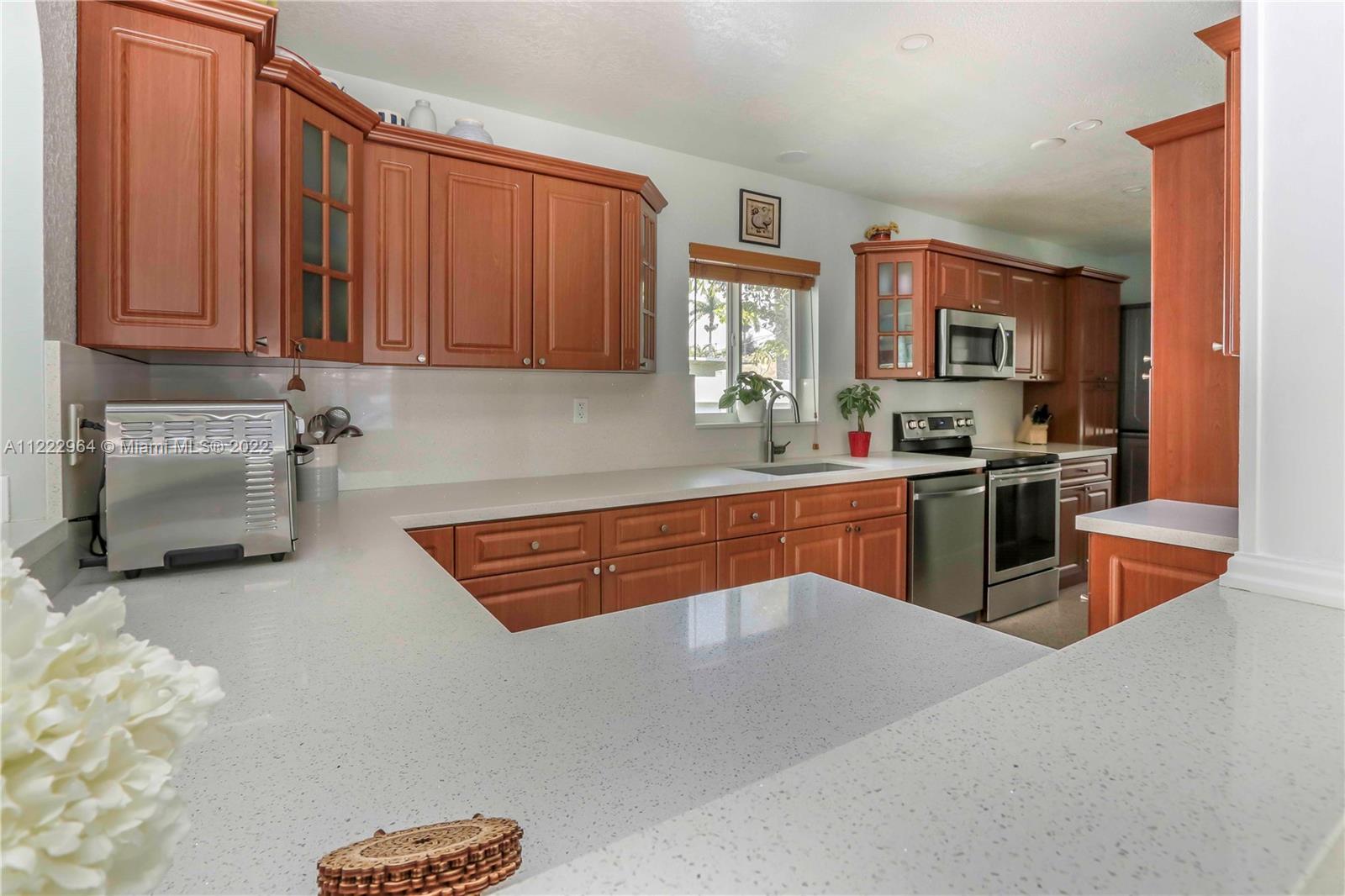 Impeccable Home in Hollywood Lakes situated on an oversized corner lot! Beautifully updated with 3 bedrooms/2 baths plus Florida room! Natural lighting comes through the beautiful windows~Many updates including kitchen w/ quartz countertops, ss appliances, cabinets, plenty of storage space~Restored Terrazzo flooring throughout, PGT impact windows, impact front & rear doors, freshly painted inside & out, shaker style solid wood interior doors~Updated baths w/ porcelain tile, Koehler sink, tub, fixtures, & newer lighting~Living Room w/ Original Plaster Crown Molding, new baseboards, window moldings & sills throughout~Dimensional Shingles Roof 2015 and Flat Roof 2017, Florida Pine, New Samsung SS washer/dryer, Custom built tool shed~Minutes from the famous Hollywood Broadwalk, so much more!