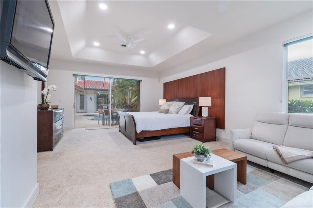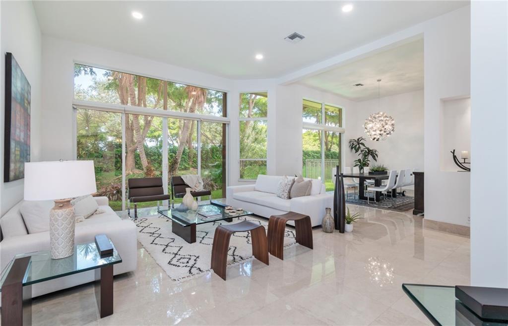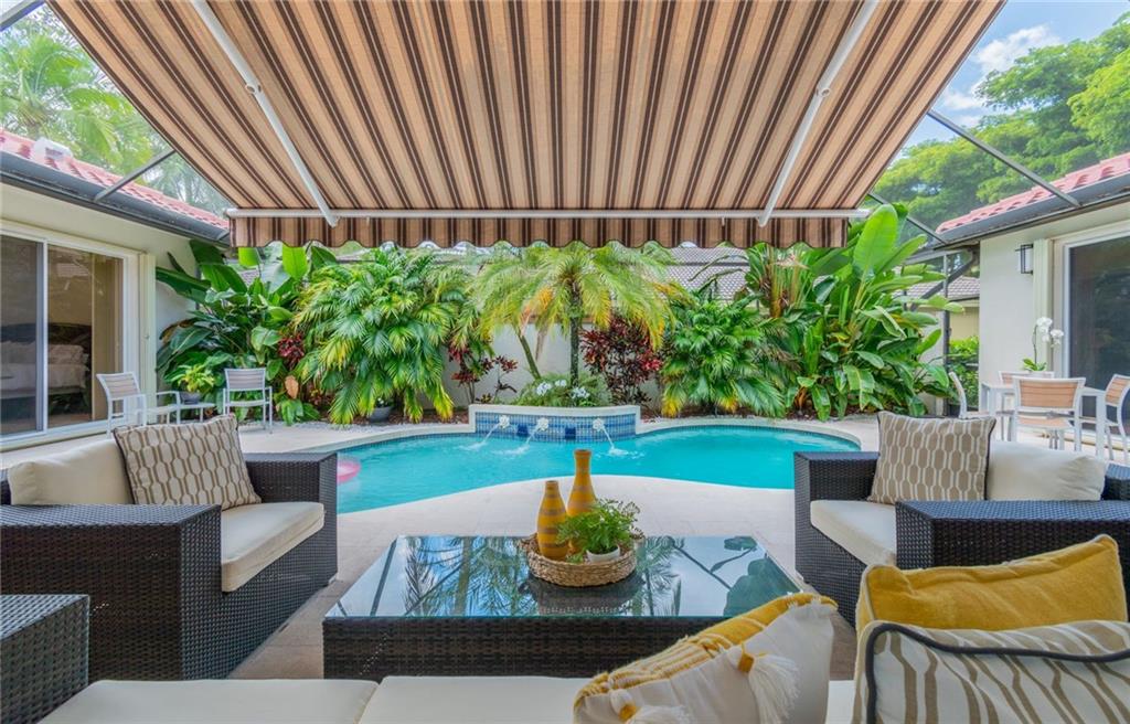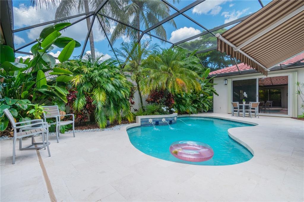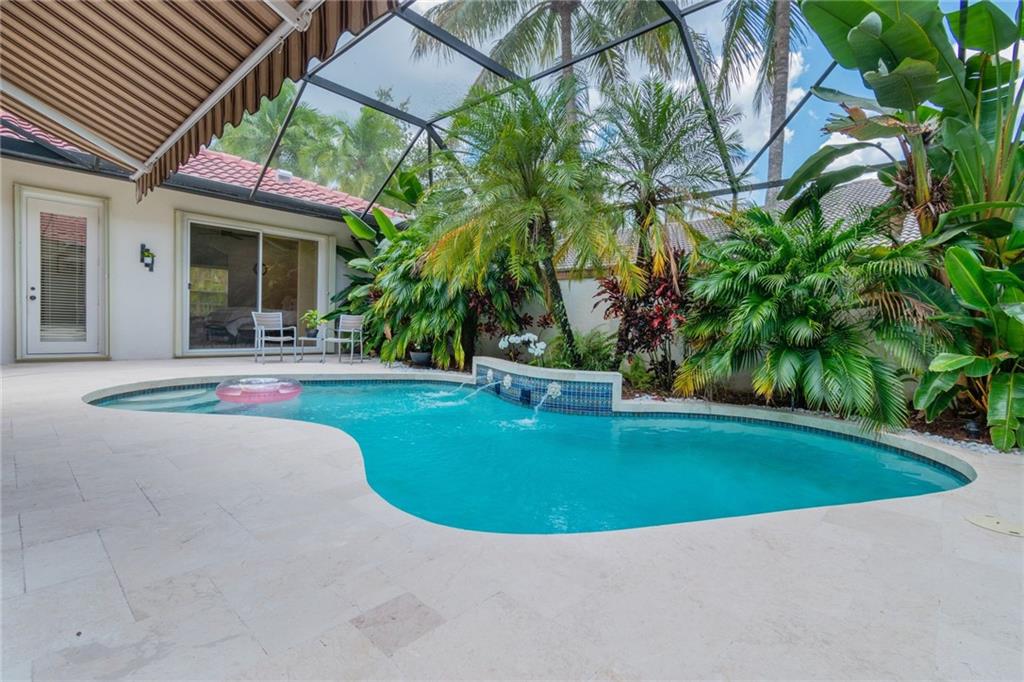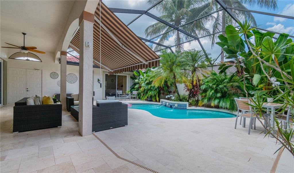 BACK ON THE MARKET! Stunning COURTYARD MODEL with free form pool, extensive tropical landscape, travertine pavers in patio and unlimited upgrades. NEW ROOF 2021. Main House offers 5 bedrooms & 3 full baths. Guest house w/one bedroom & full bath. Oversized master w/sitting area, large custom built walk-in closet & spa-like bathroom. The renovations are chic & sophisticated, all interior doors/frames/baseboards have been replaced, 42” textured kitchen cabinets, quartz countertops & island, SS appliances. Marble floors in Living areas & carpet in the bedrooms. Modern wood staircase. Renovated bathrooms in a transitional modern décor. The home is sun kissed with natural light from oversized windows. Laundry room. Private lot, 3 car garage + circular driveway & accordion shutters