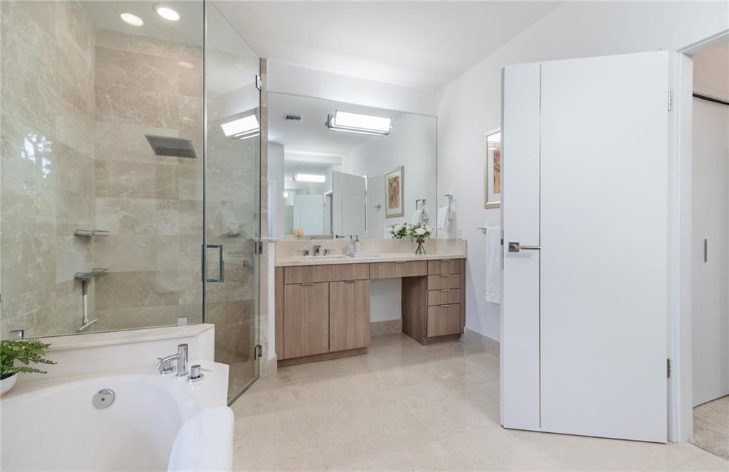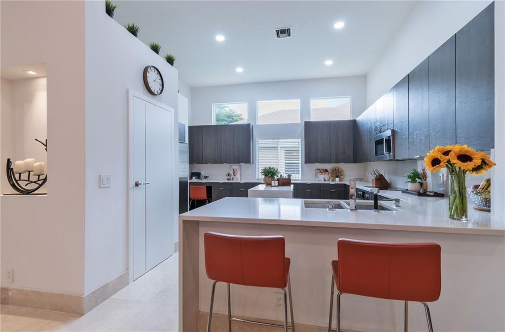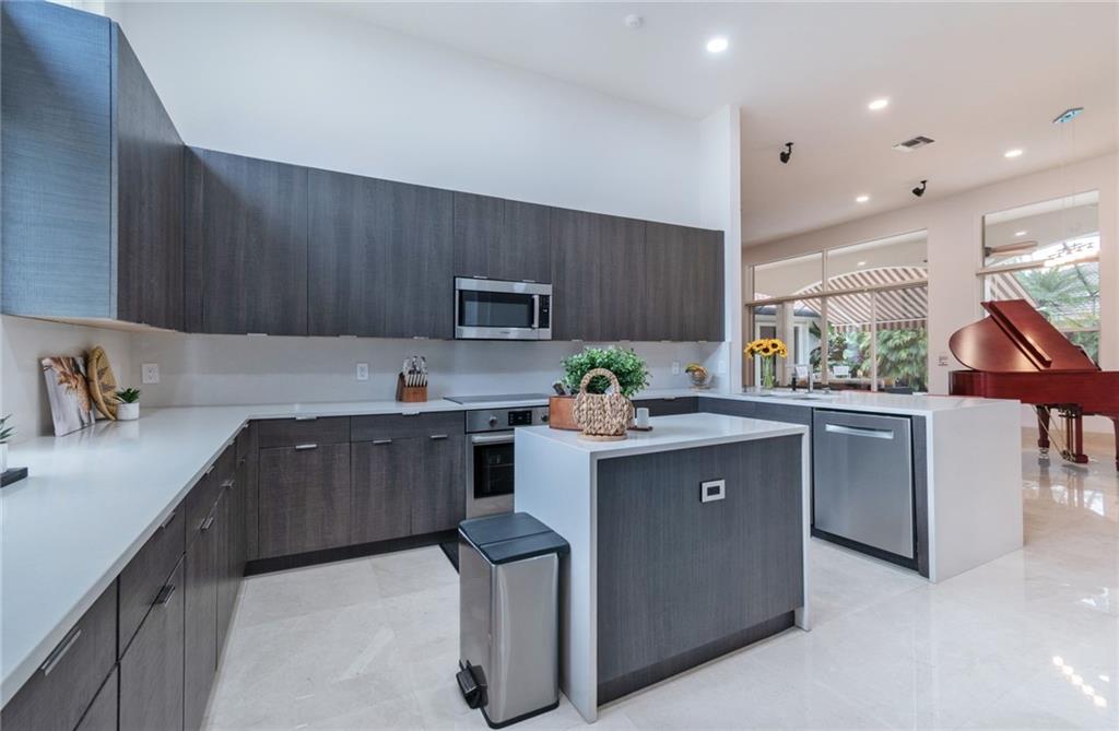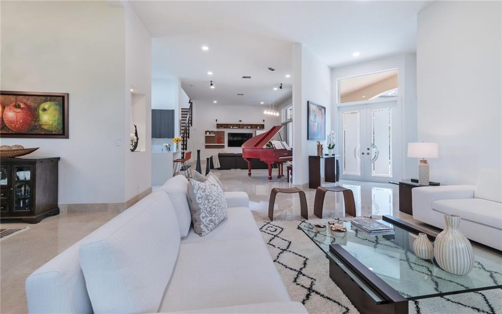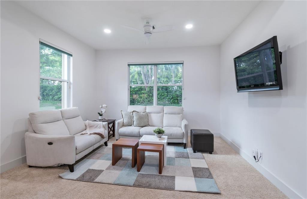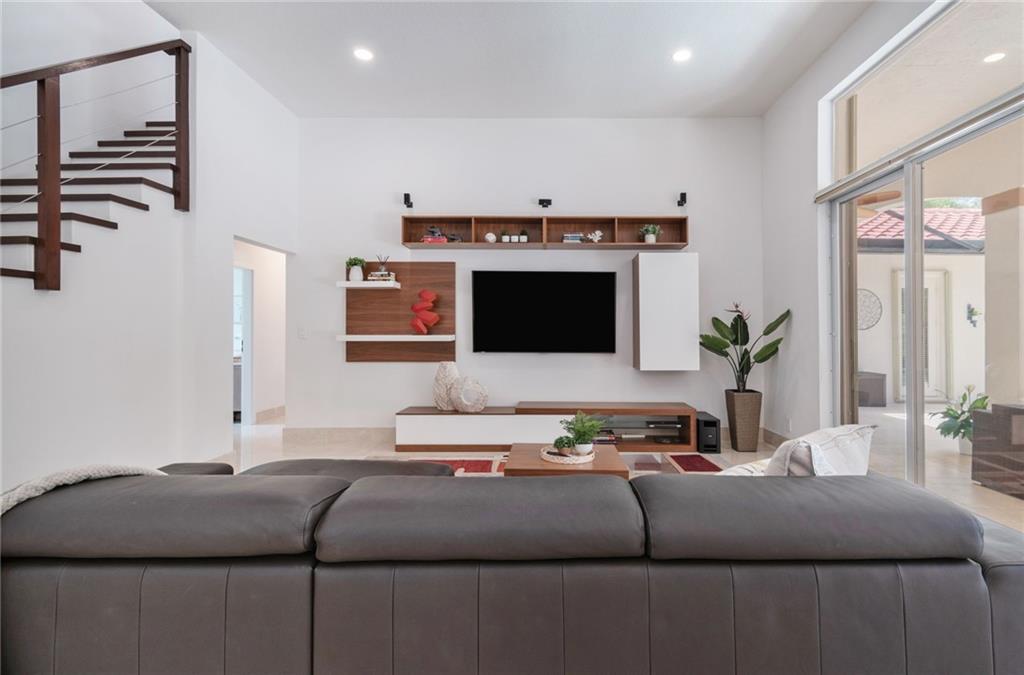 BACK ON THE MARKET! Stunning COURTYARD MODEL with free form pool, extensive tropical landscape, travertine pavers in patio and unlimited upgrades. NEW ROOF 2021. Main House offers 5 bedrooms & 3 full baths. Guest house w/one bedroom & full bath. Oversized master w/sitting area, large custom built walk-in closet & spa-like bathroom. The renovations are chic & sophisticated, all interior doors/frames/baseboards have been replaced, 42” textured kitchen cabinets, quartz countertops & island, SS appliances. Marble floors in Living areas & carpet in the bedrooms. Modern wood staircase. Renovated bathrooms in a transitional modern décor. The home is sun kissed with natural light from oversized windows. Laundry room. Private lot, 3 car garage + circular driveway & accordion shutters