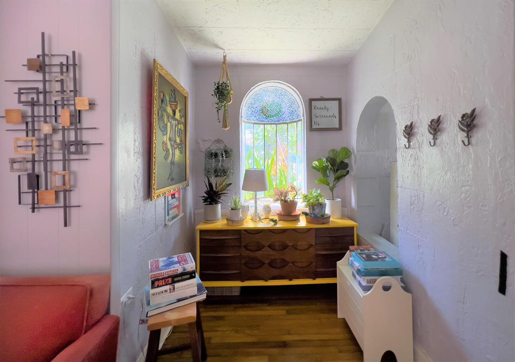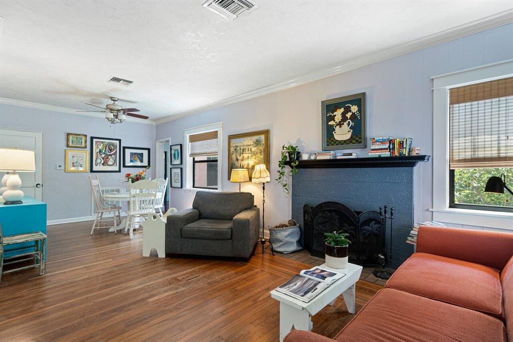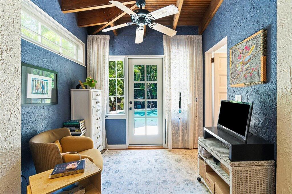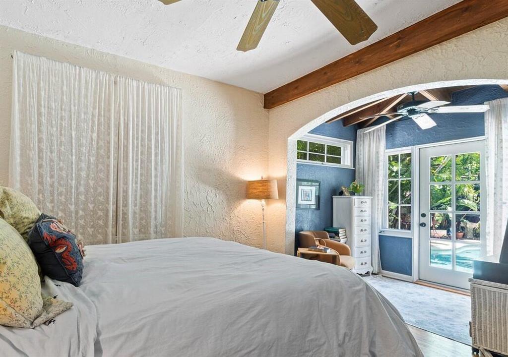 Classic Hansell Hall 20's architecture and construction is apparent in this Mission-style Spanish home in Historic Flamingo Park. This is only of only a few Hansell Hall one-story three bedroom/two bath homes. The master bedroom has a sitting room that looks out to the pool and one of the other bedrooms provides pool views. Both bathrooms have been stylishly remodeled. Of course there are the quintessential Hansell Hall features: plaster walls and ceilings scored to look like stone, border pattern in the living room floor, hollow tile walls, and prominent fireplace. This version has a floor plan combining the living and dining areas into one beautiful open space. Topping this classic construction is an interior that showcases art beautifully and has a very beach house feel throughout.