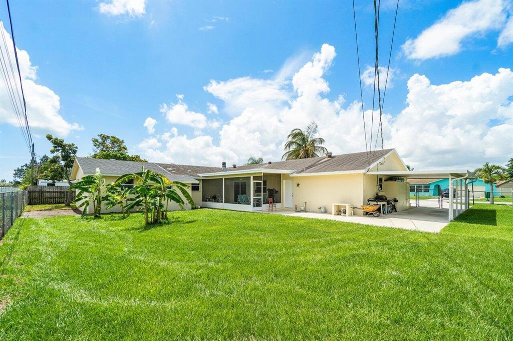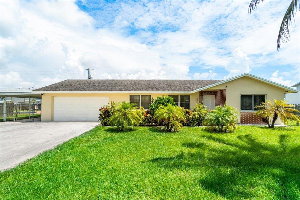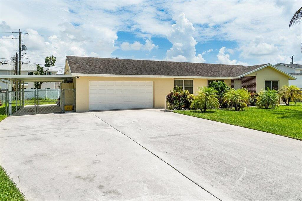 NO HOA so you can rent out right away! Don't miss this centrally located move-in ready 5 bedroom/ 3 bathroom CBS house. There is a huge 2 car garage ( 620 sq ft ) perfect for cars, storage and more AND a gated carport. The kitchen has been beautifully updated with granite and stainless appliances and the large yard is fenced in. The front walkway is ADA compliant. You're approx 15 min to the PB International Airport and close to I-95, Whole Foods, Palm Beach Outlets, Singer Island and Blue Heron Bridge for diving and paddle boarding. This house is unique as you have a private owners wing separate from 2 bedrooms which would be perfect if you're hosting guests, for a house-manager or for in-laws. The possibilities are endless! Easy to show - schedule online.
