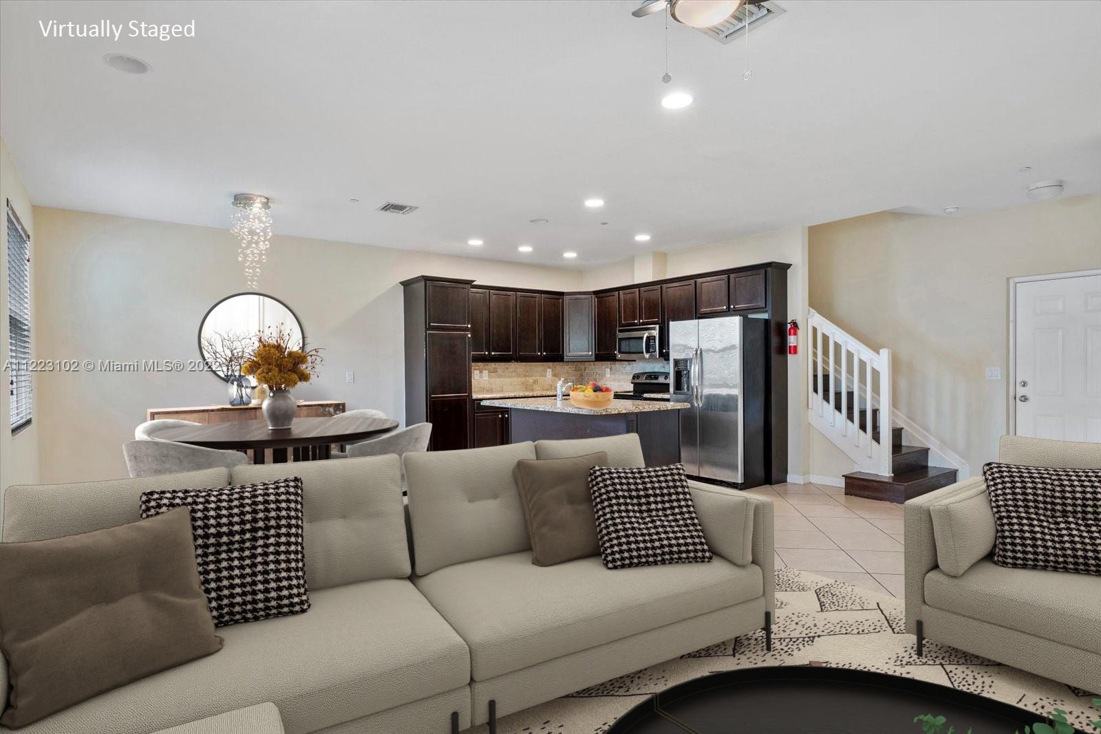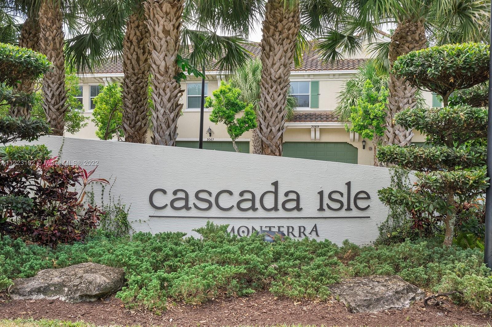 Fabulous 3 bedrooms and 3 bathrooms townhouse located in the highly desired gated community of Cascada Isle at Monterra. This Barcelona model features one bedroom and a full bathroom located on the ground floor. In the kitchen wood cabinets, granite countertop, and SS appliances. Tile flooring throughout, and carpet in the bedrooms. Master bedroom with 2 walk-in closet. Vaulted ceilings. High-impact windows, and doors. Laundry Room conveniently located on the 2nd floor with full-size washer and dryer. 2 Car Garage. Resort-style amenities include Clubhouse with a party room, Pool, Fitness Center, Billiard Table, Tennis and Basketball Courts, Playground, Bike Jog, Walk Paths, and dog parks. Conveniently located close To NSU, Airports, i-595, shopping, and restaurants. A+ School District.