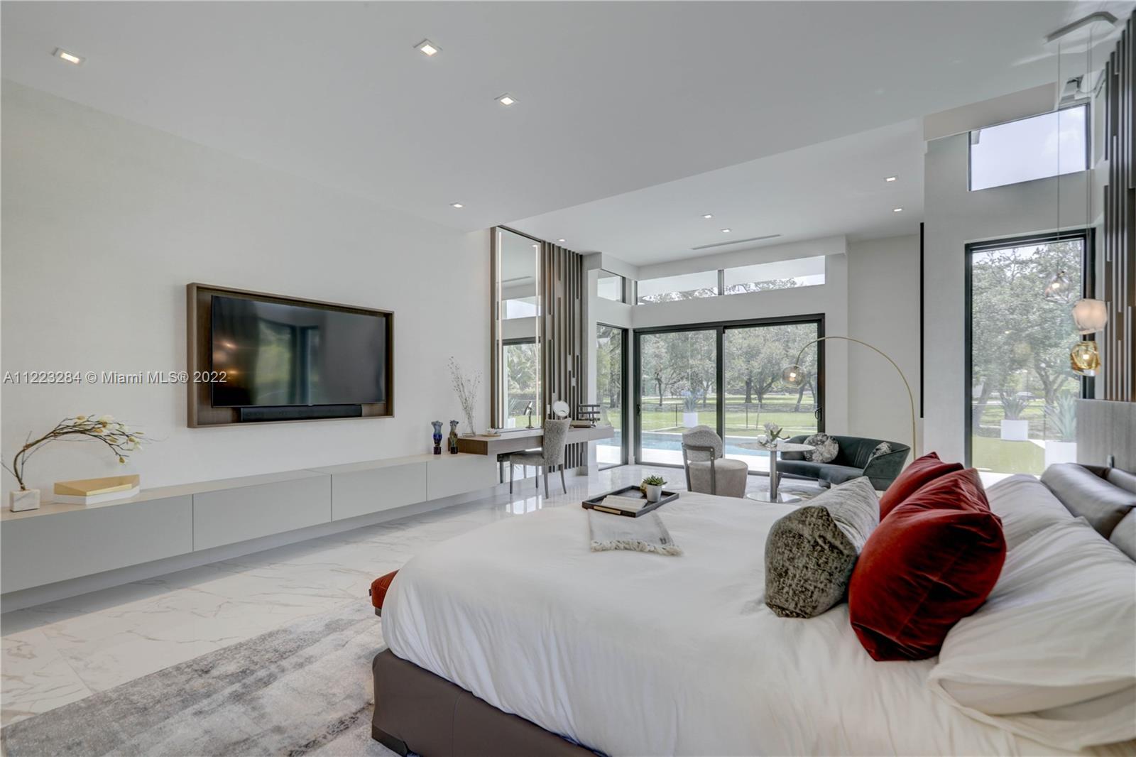 Elegance & luxury abound in this 5 bedroom, 5 bathroom home including 2 half baths, & media room with sound system in fabulous Oak Park. Exquisite Italian porcelain tile in all main living areas & bedrooms. Open floor plan with volume ceilings featuring custom millwork throughout the home. Expansive Chef’s kitchen including white quartzite counters, custom high end cabinetry, Wolf appliances, & Subzero refrigerator & 200 bottle wine cooler that overlooks the family room which is perfect for those who like to entertain. Large master suite w/sitting area, dual walk-in closets, & grand master bath w/Zen meditation garden. Big secondary bedrooms all with en-suites. Oversized patio w/built in summer kitchen, cooling deck around the salt water pool, outdoor turf/putting green, & camera system.