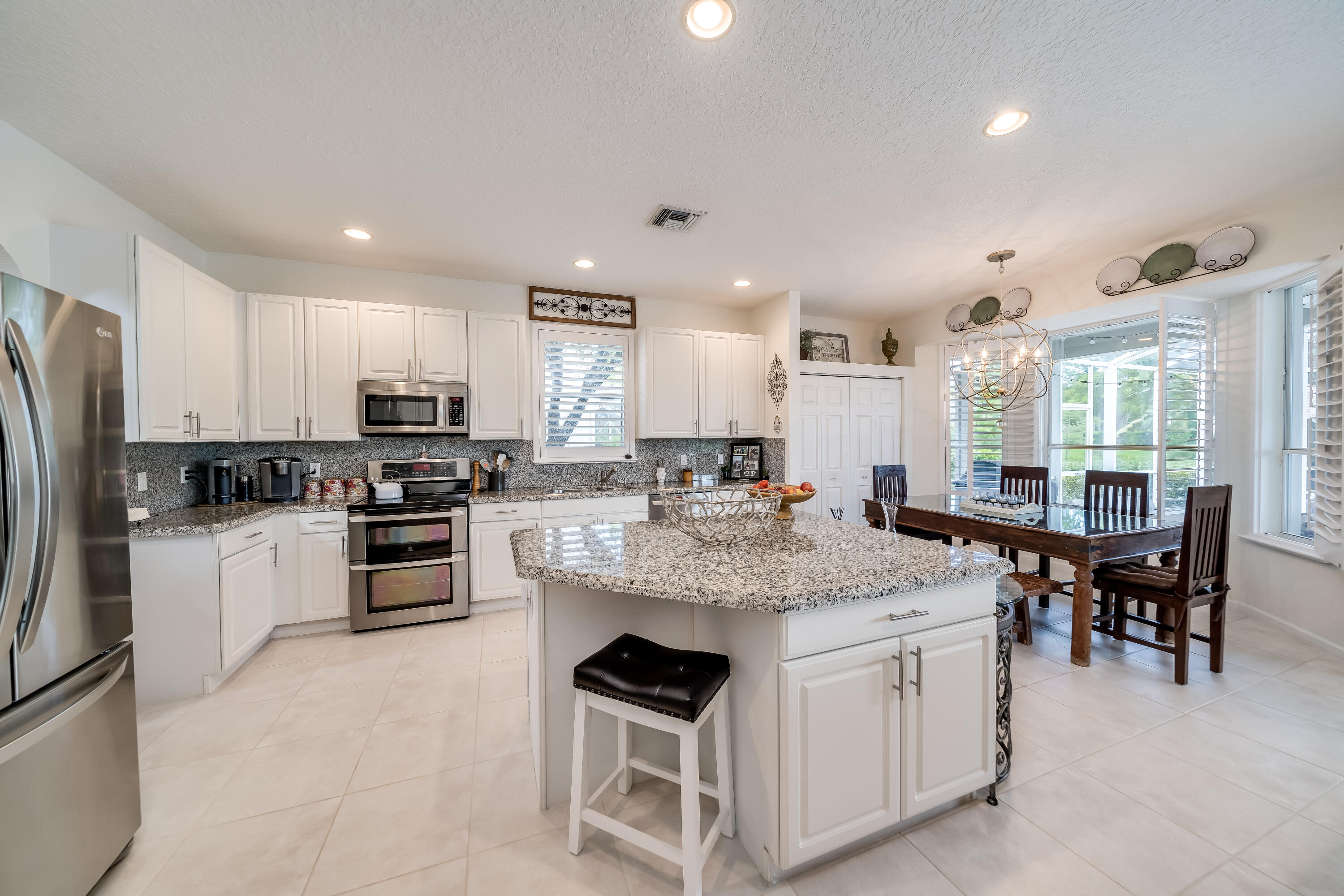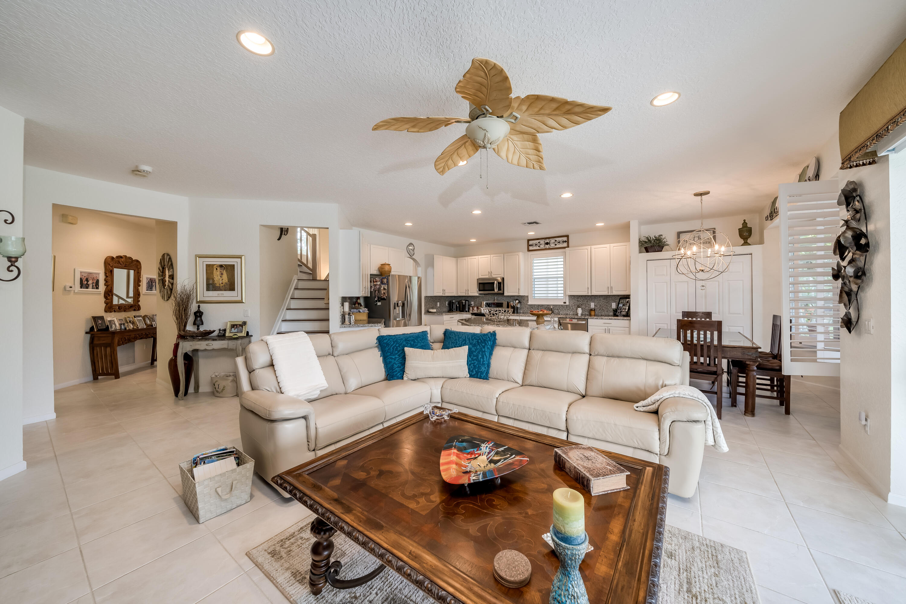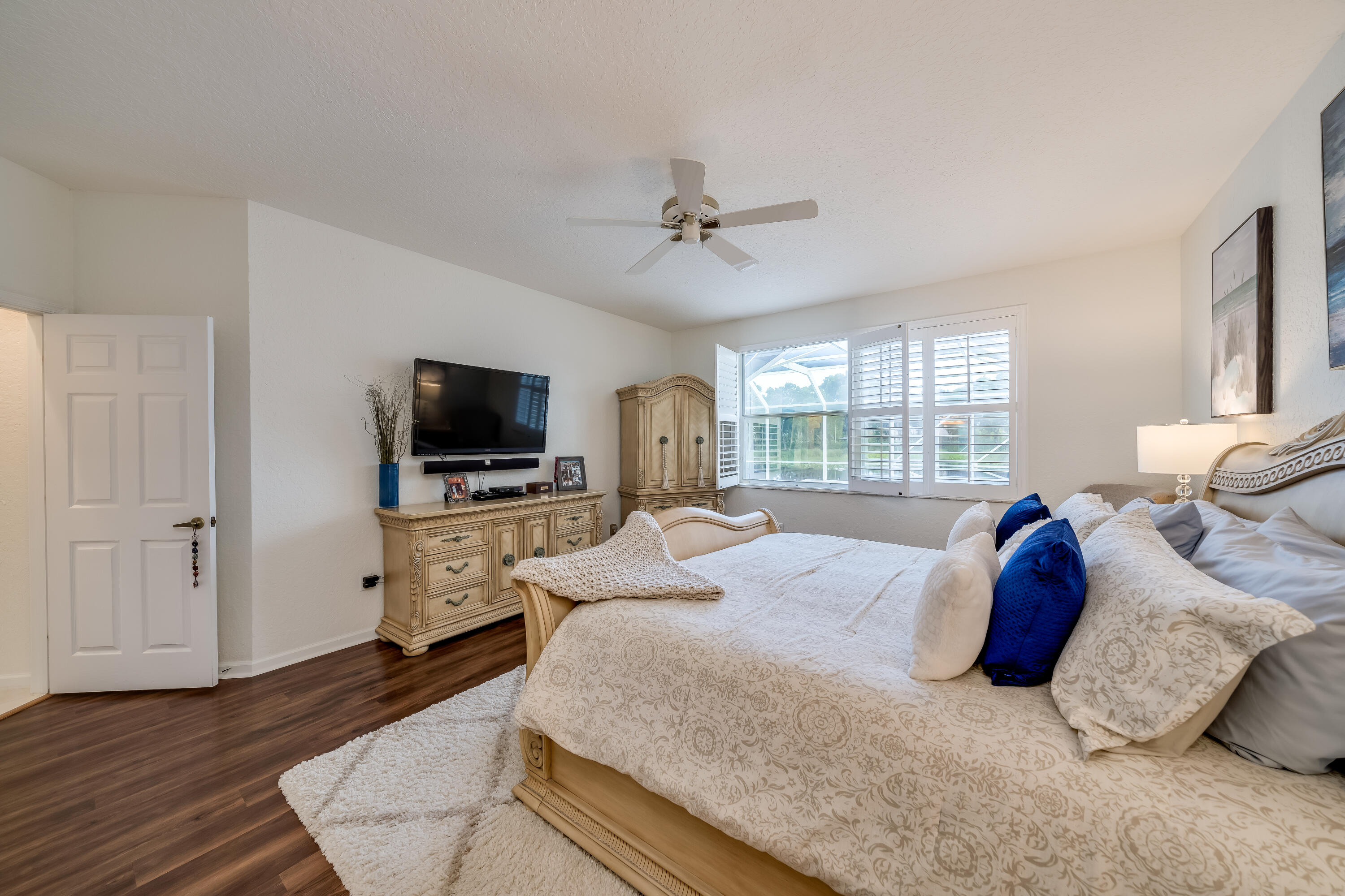 Highly sought after Kingston model with large master on the first floor. This home has a beautifully updated kitchen that opens up to the family room with spectacular lake views. The large loft area upstairs can be closed in to add an extra bedroom or office. Upstairs you will find 3 guest bedrooms with a full bath. Relax on the patio and enjoy the tranquil backyard with a very private tree-lined lake view with no rear neighbors. Hurricane shutters for added safety complete this home with accordian shutters on top level including a Sub panel for generator hook up. Community offers luxury amenities for all ages, including fitness center, basketball, pickle ball, tennis courts, heated pool, and so much more. Seller is offering to buy down interest rate, ask for details.