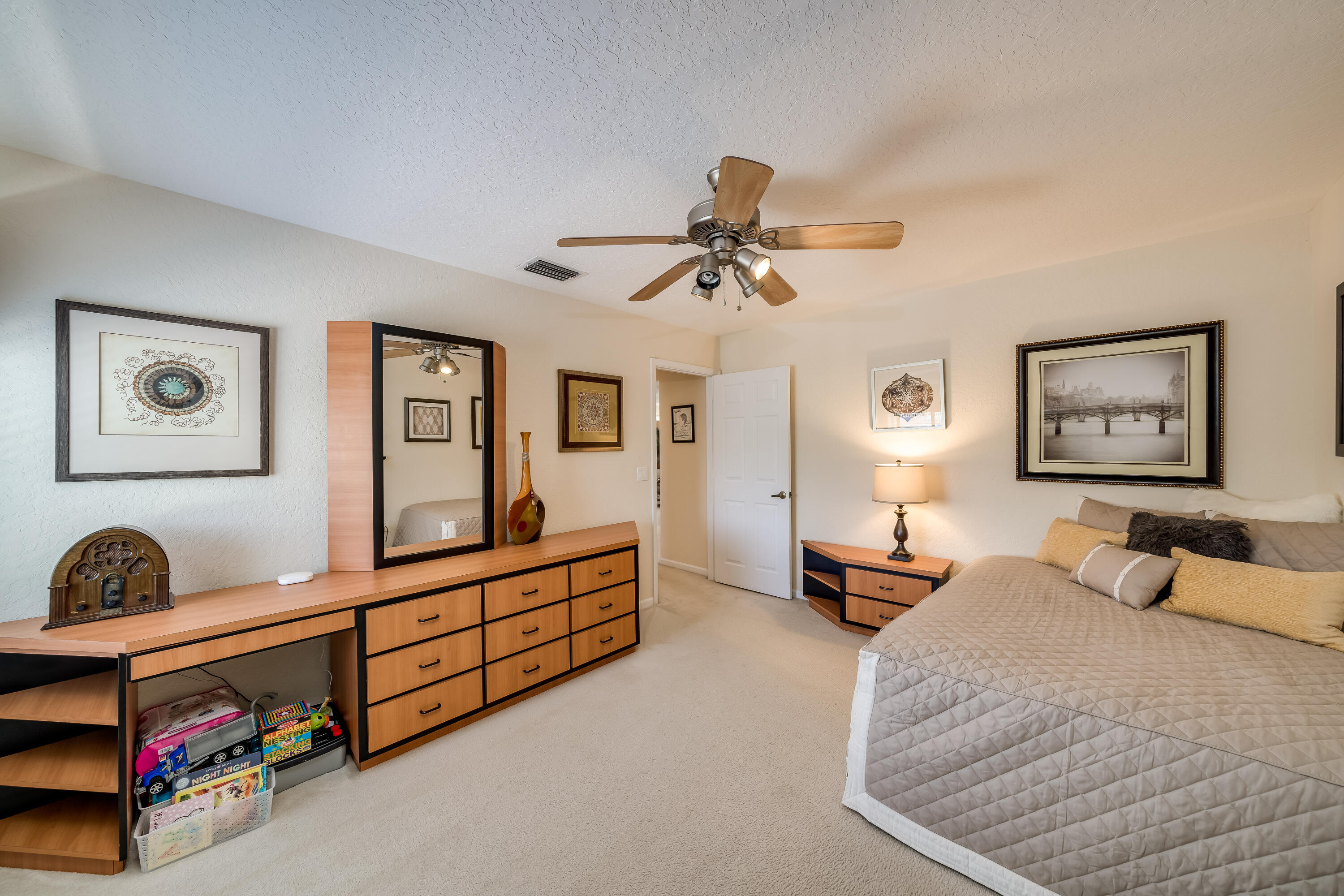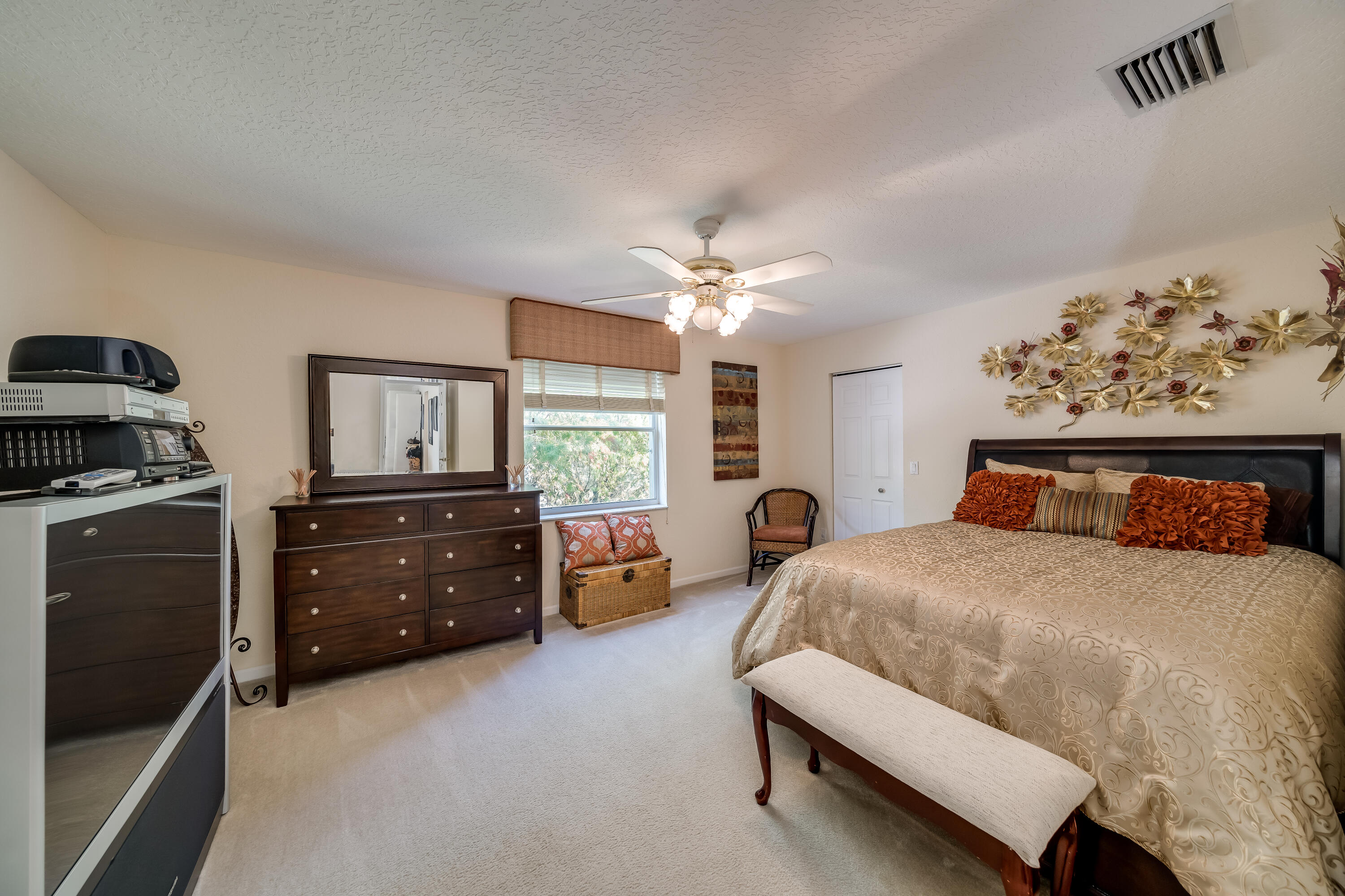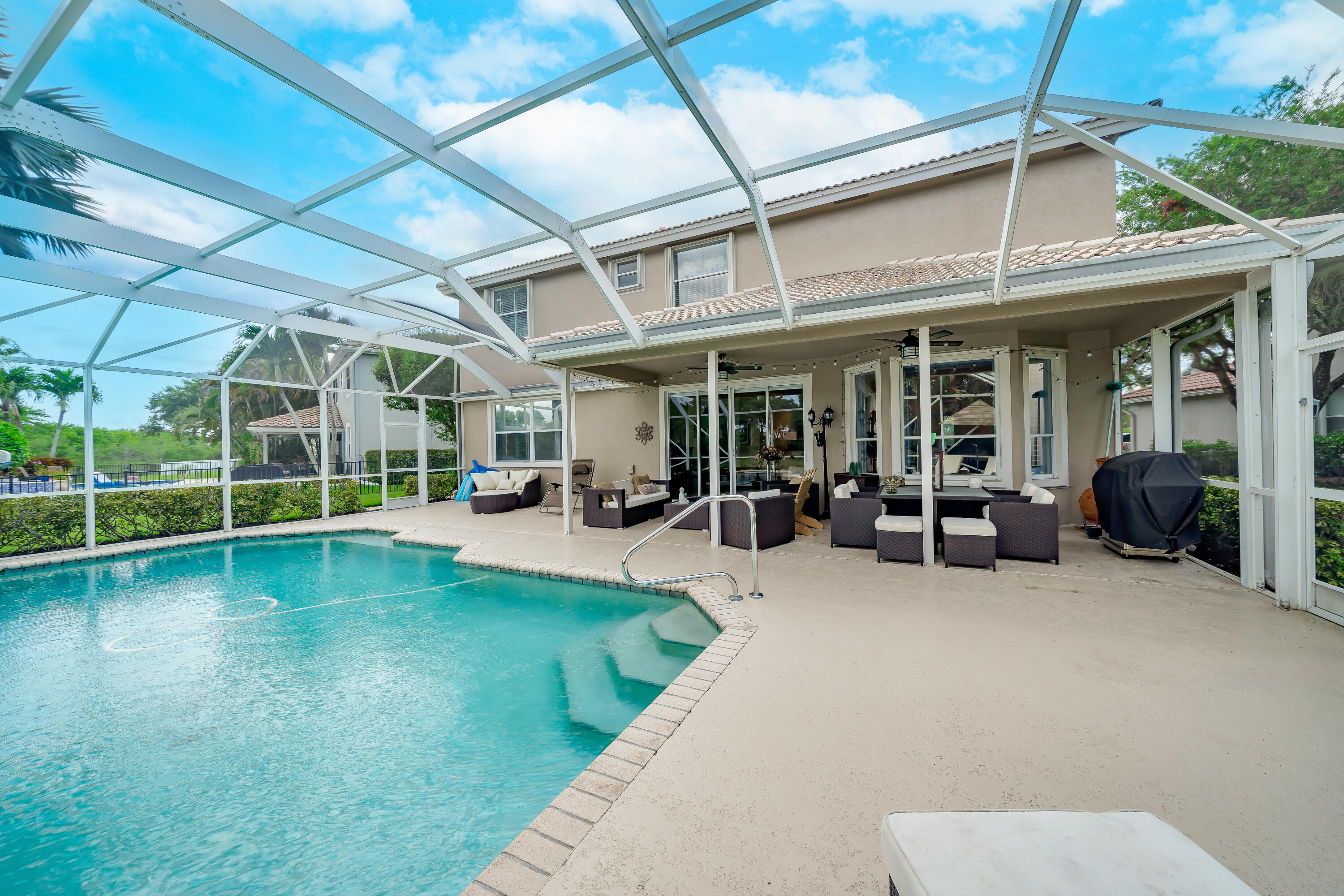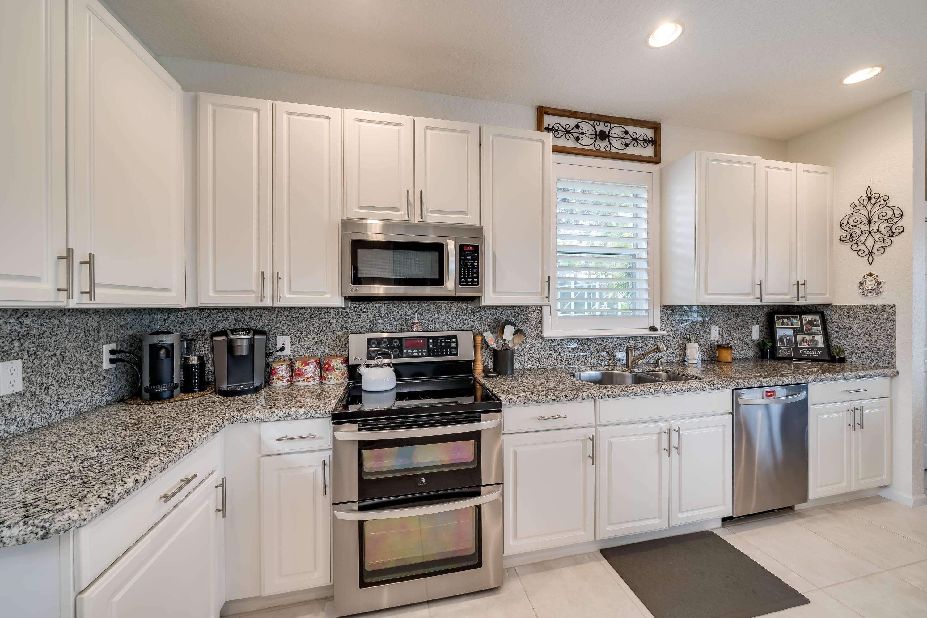 Highly sought after Kingston model with large master on the first floor. This home has a beautifully updated kitchen that opens up to the family room with spectacular lake views. The large loft area upstairs can be closed in to add an extra bedroom or office. Upstairs you will find 3 guest bedrooms with a full bath. Relax on the patio and enjoy the tranquil backyard with a very private tree-lined lake view with no rear neighbors. Hurricane shutters for added safety complete this home with accordian shutters on top level including a Sub panel for generator hook up. Community offers luxury amenities for all ages, including fitness center, basketball, pickle ball, tennis courts, heated pool, and so much more. Seller is offering to buy down interest rate, ask for details.
