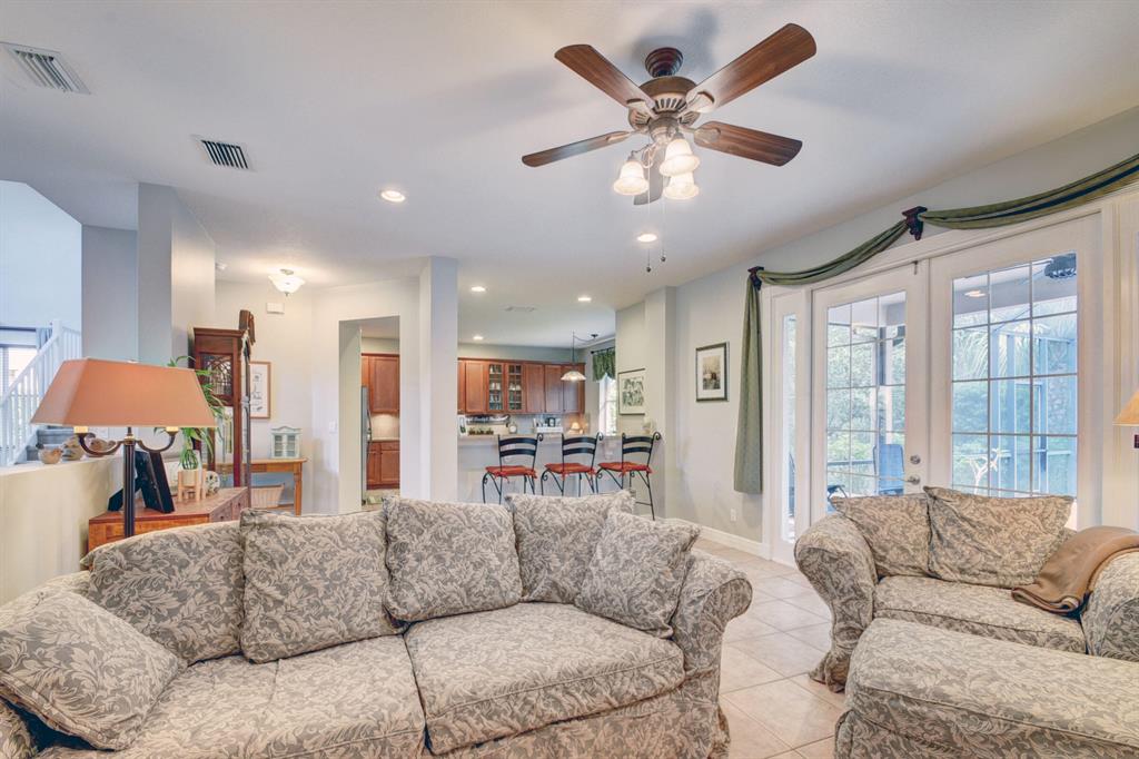This Stonehaven home has been maintained in excellent condition. The large kitchen with center island includes updated stainless steel appliances. The roof is brand new. In addition to the four bedrooms, a full sitting room off of the master can easily be converted into a fifth full bedroom. Downstairs there is a bedroom and full bathroom in the back of the house with a cabana door creating an ideal in-law suite. The rear French doors and the cabana door lead to the covered Lanai, open to the completely screened in pool area. The preserve behind the home provides a tranquil setting and privacy. Dual location 3 car garage and accordion hurricane shutters make this home safe and convenient. Recently painted inside and out and located on a corner lot, lush landscaping encircles the home.