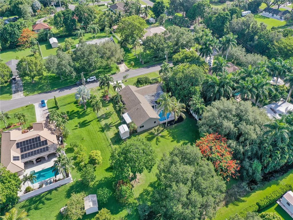 Custom SW Ranches home on large builder's acre Cul du Sac street. Well maintained by original owners, this updated 1 story estate features an attached in-law/guest house w living room, kitchen, laundry, Master Suite and full bath. Spacious living areas in main house w vaulted ceilings, formal living & dining, large granite & wood kitchen, family room overlooks pool area & huge covered/screened patio. Master Suite w walk-in closet, generous ensuite bath w jetted tub & shower. Secondary bedrooms and adjacent cabana bath are all good sized. Enclosed 2 car garage converted into bedroom suite w full bath, closets being used as office. Tiled in the main living areas, laminate wood floors in some bedrooms. Lots of attention to detail here. 2 sheds, room to add on, park your RV and boat.