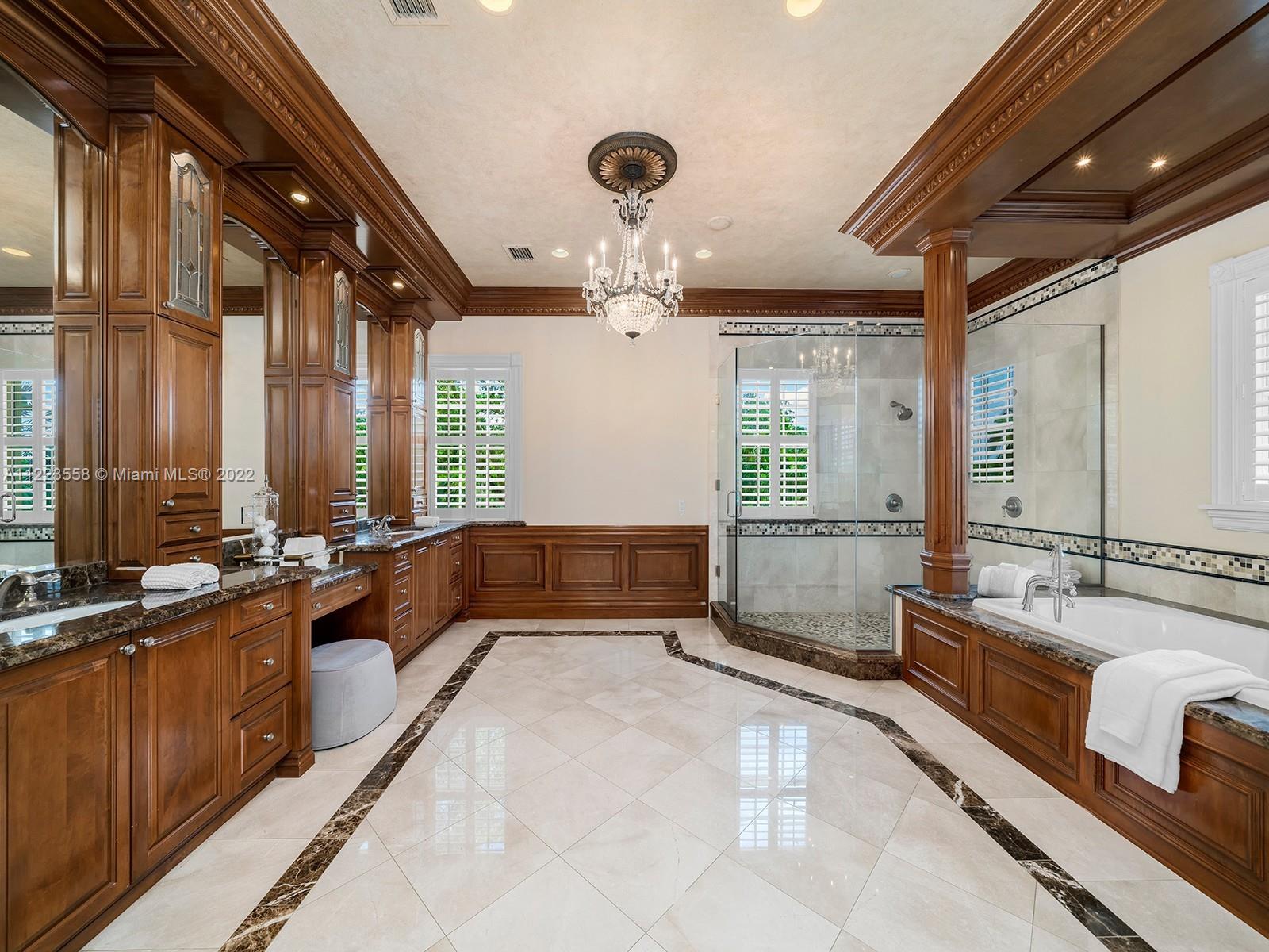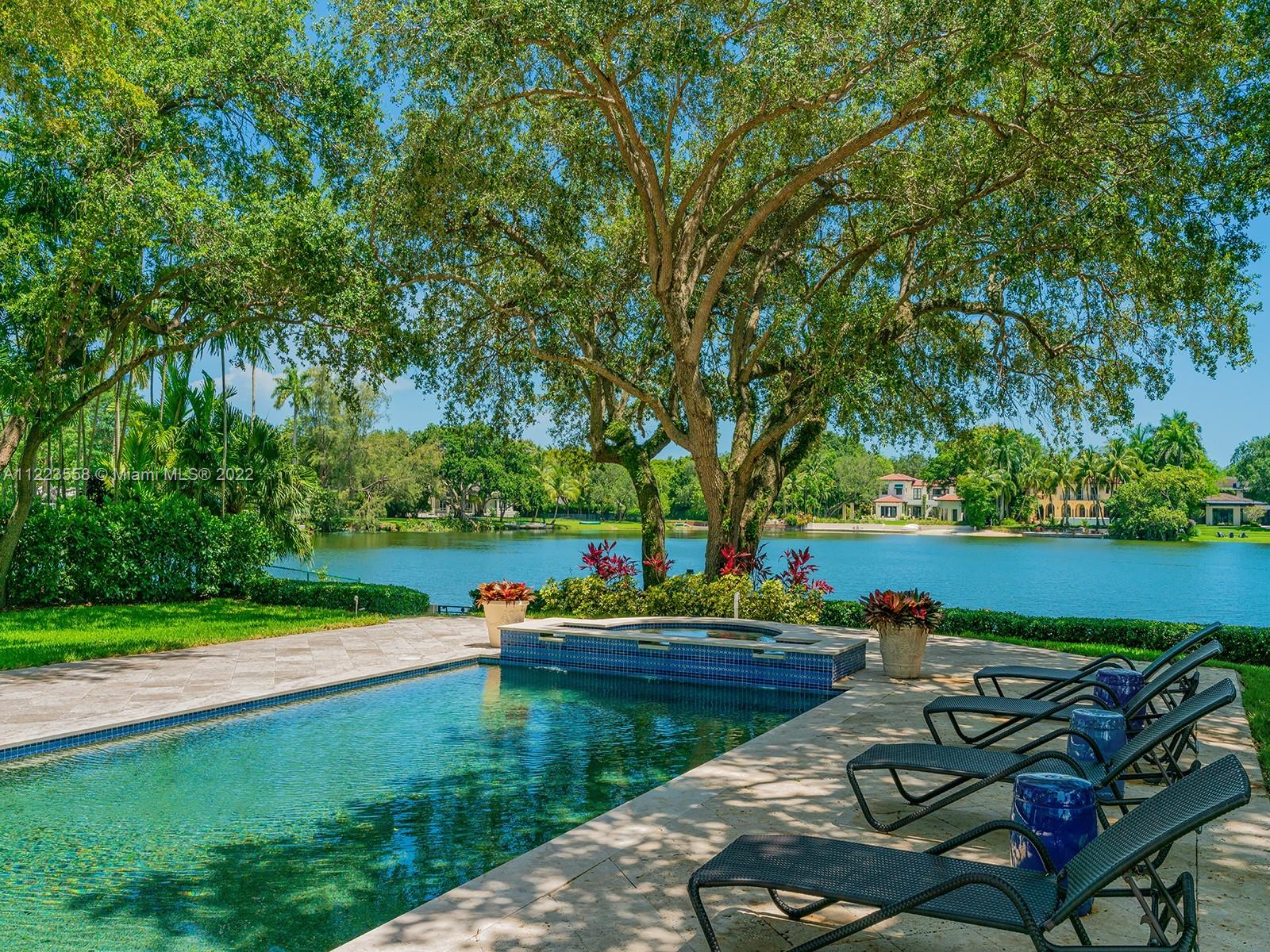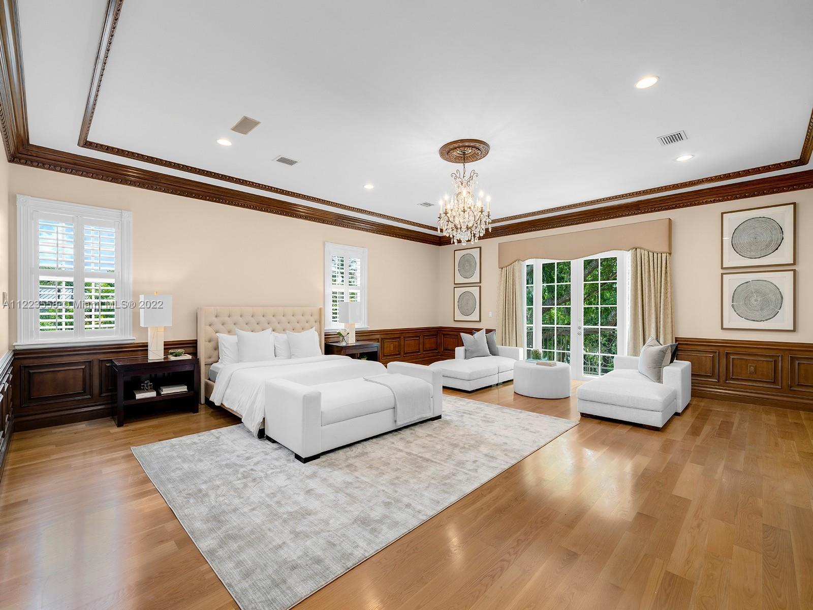 Enchanting lakefront Mansion located in sought after Hammock Lakes, surrounded by over an acre of pristine & manicured landscaping while enjoying breathtaking waterfront views. Welcomed by an awe-inspiring foyer, soaring ceilings, & elegant formal living rm. This impressive estate features a spectacular entertainment floorplan w/ ground floor offering a spacious family rm, wet bar, gourmet kitchen, butlers pantry, media rm, and 2 en-suite bedrooms. Lavish Master suite located upstairs w/study, huge walk-in closet & resort-style bath w/ whirlpool spa & balcony. Find 3 add’l en-suite bedrooms & private library overlooking mature oaks. Escape into a magical tropical oasis featuring covered terraces, summer kitchen pool/spa, & picturesque pathway leading to concrete dock & private sandy beach.