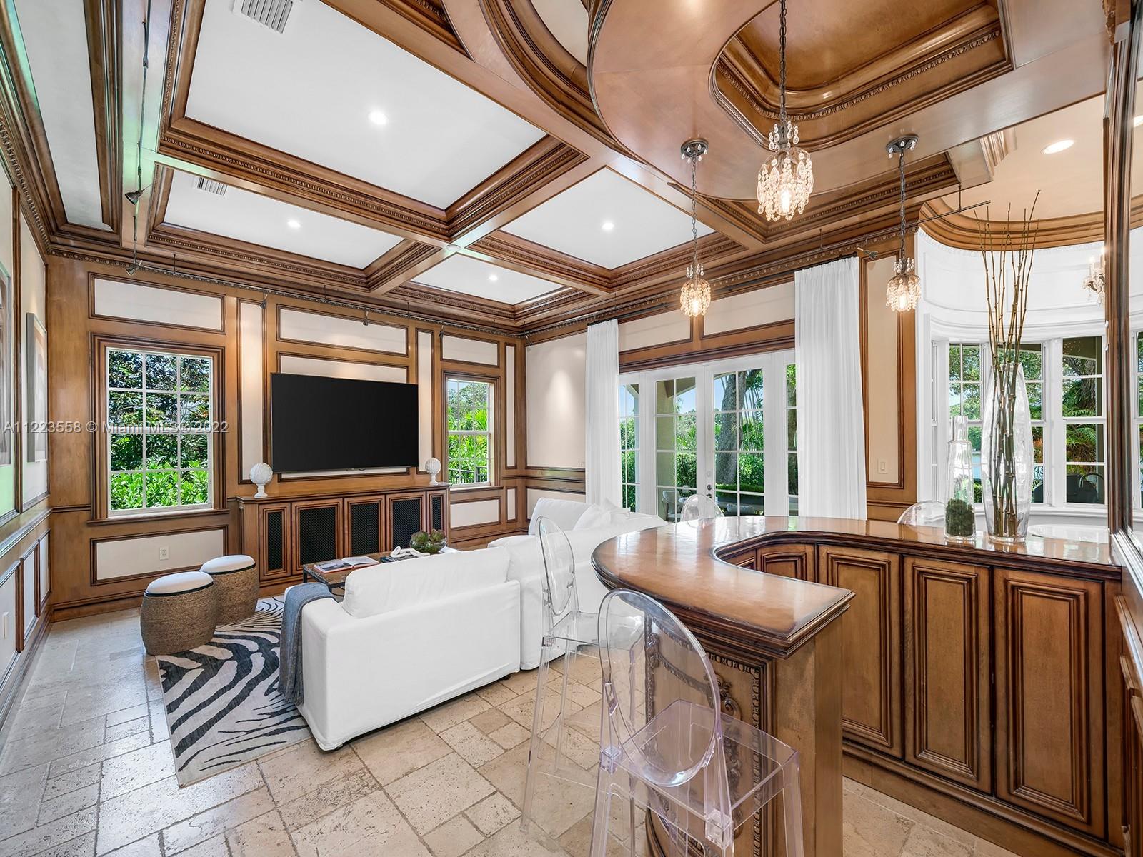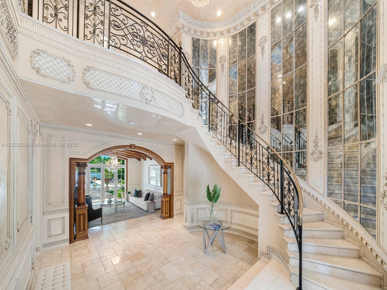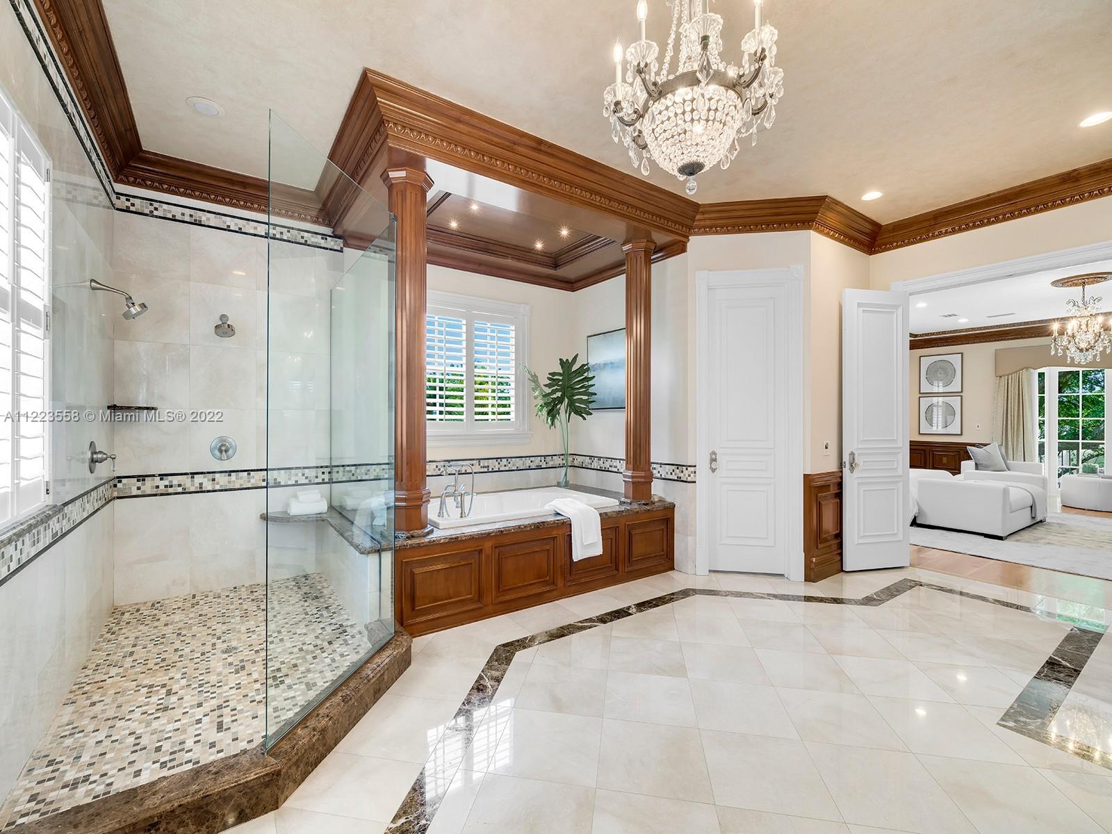 Enchanting lakefront Mansion located in sought after Hammock Lakes, surrounded by over an acre of pristine & manicured landscaping while enjoying breathtaking waterfront views. Welcomed by an awe-inspiring foyer, soaring ceilings, & elegant formal living rm. This impressive estate features a spectacular entertainment floorplan w/ ground floor offering a spacious family rm, wet bar, gourmet kitchen, butlers pantry, media rm, and 2 en-suite bedrooms. Lavish Master suite located upstairs w/study, huge walk-in closet & resort-style bath w/ whirlpool spa & balcony. Find 3 add’l en-suite bedrooms & private library overlooking mature oaks. Escape into a magical tropical oasis featuring covered terraces, summer kitchen pool/spa, & picturesque pathway leading to concrete dock & private sandy beach.