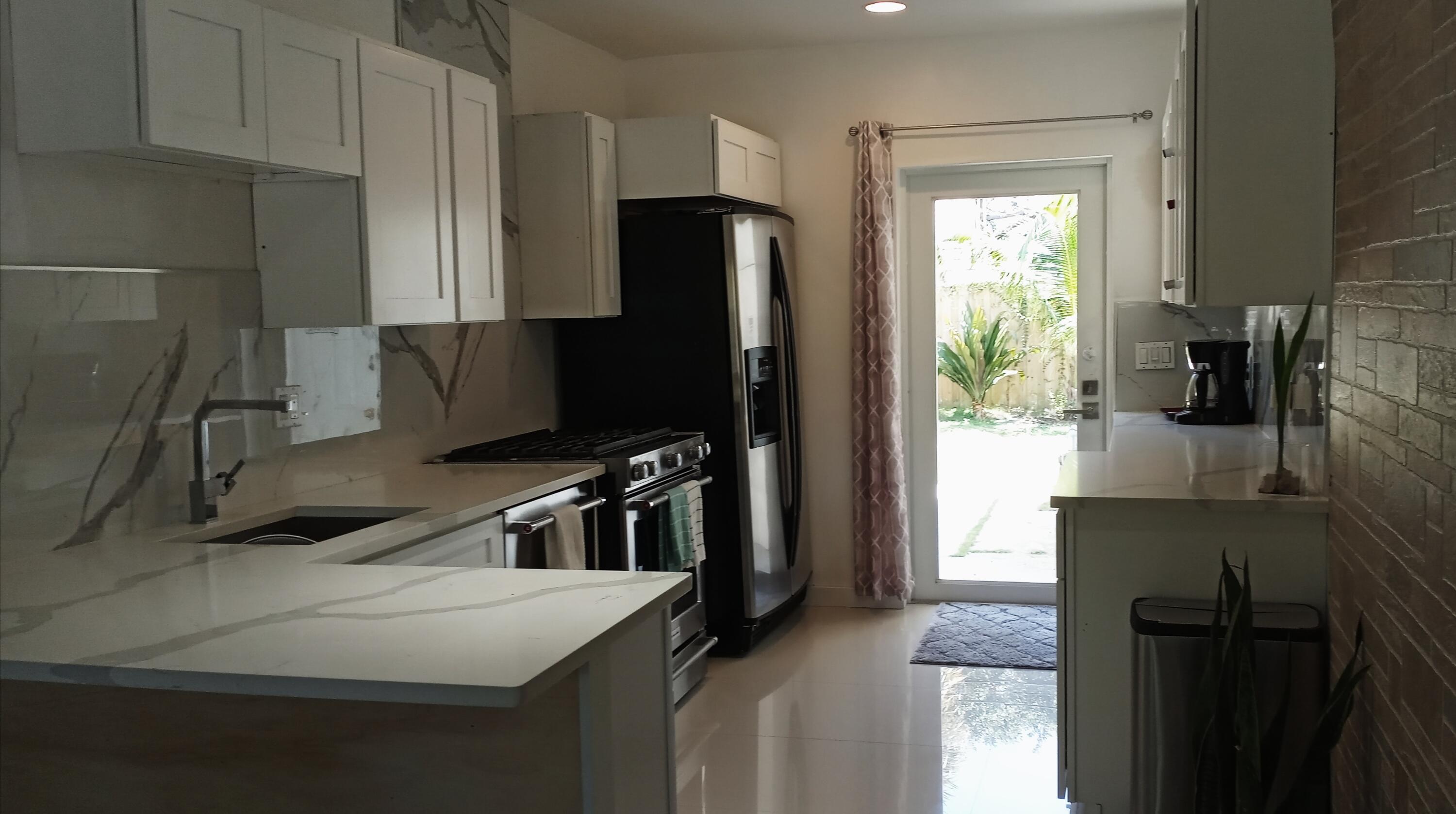 Location, Location. Intracoastal waterviews from driveway and the street. Contemporary remodeled mid-century Single family home located one block and a half from the intracoastal and park. Carport can easily be converted to guest apartment or 2 additional bedrooms. Solid CBS construction. Open floor plan. Fenced in yard with room for a pool. Perfect opportunity. This property is located only minutes from Cityplace, Palm Beach. Being sold as is, where is, all appliances convey buy not guaranteed.