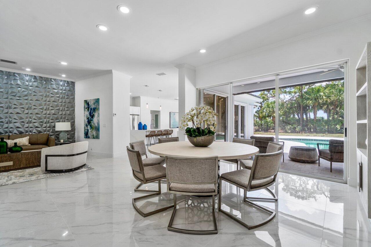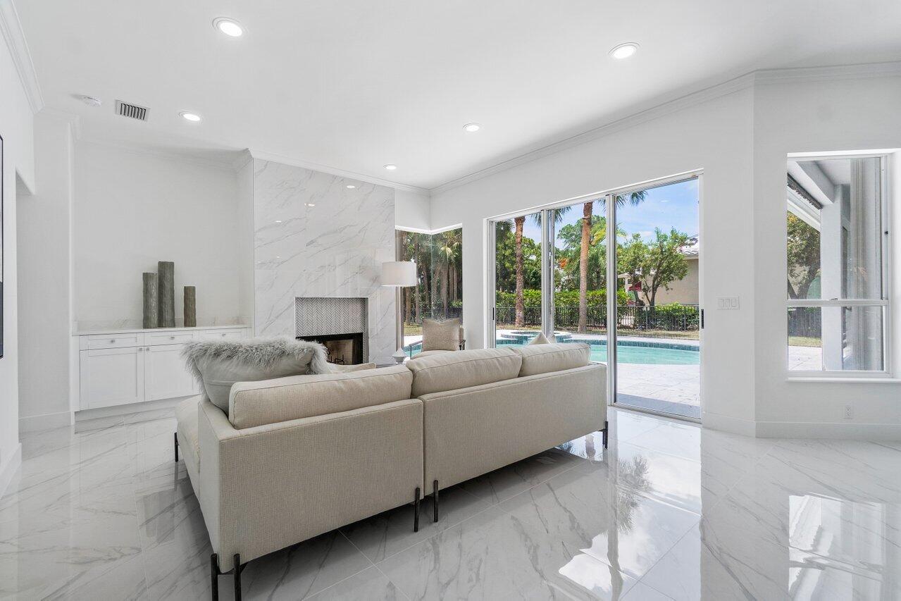 Newly renovated golf course home! This stunning 4 bedroom, 3 bathroom light & bright open floor plan just came off a brand new renovation and boasts beautiful porcelain tile floors throughout the main living areas; laminate wood floors in the bedrooms; fully renovated bathrooms; kitchen is open to the family room with white cabinetry, quartz counter tops, tiled backsplash and new appliances; the gorgeous master suite features a spacious walk-in closet complete with built ins and luxurious bathroom with soaker tub and large walk-in shower w/ body sprays, and built ins. The tropical backyard with custom pool & spa is the perfect place to relax and unwind and offers views of the golf course hole #8, complete with summer kitchen and built in BBQ. This stunning home won't last long!