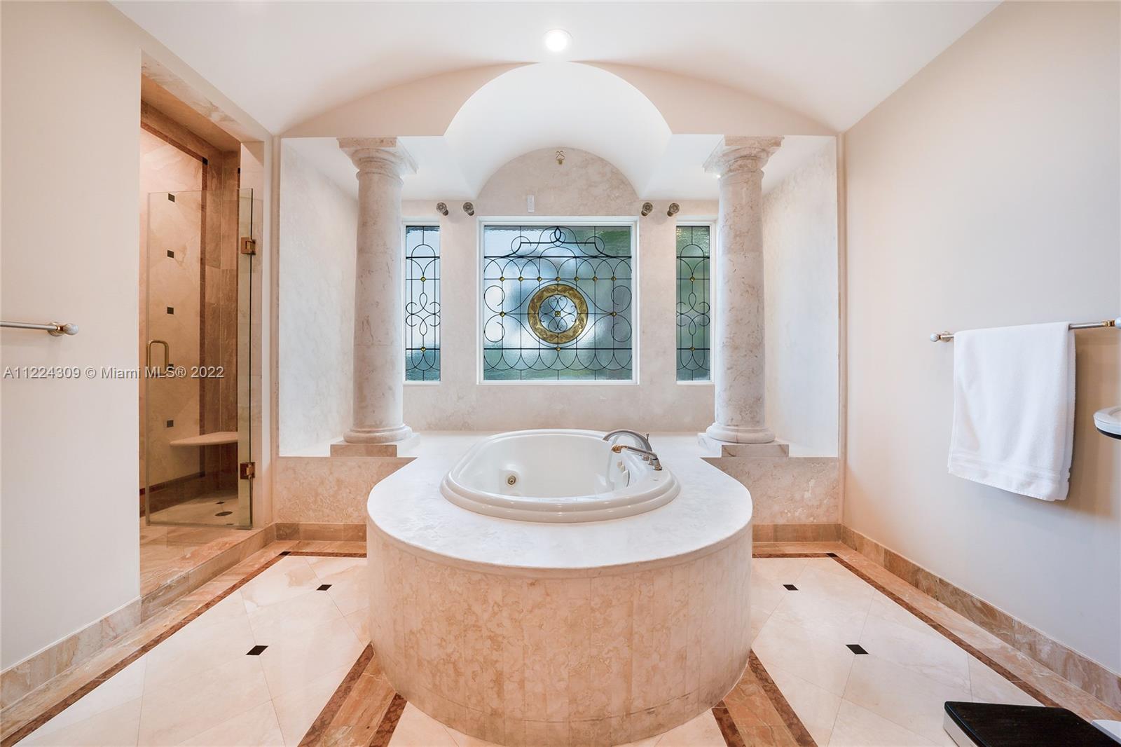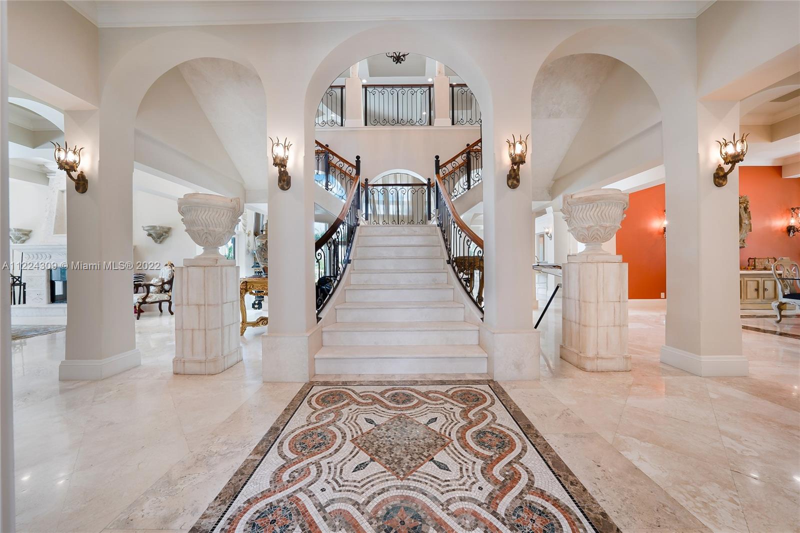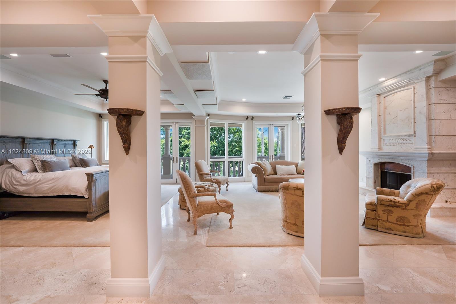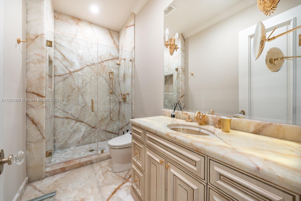 Gorgeous Italian Inspired Estate is now available for you! Hidden away on 1.7 acres and bordered by water on all sides. Marble and granite that are of a sturdy construction and can be found all around the home. The vast grand room has a glass wall that extends from the floor to the ceiling two stories high, guests will have a wonderful look at the waterfall pool that leads down to the extended lake vista. New Gourmet Kitchen equipped with top of the line appliances. A cutting edge Theater, Speakeasy Bar and Art Gallery! The estate also features two Fireplaces, Billiard Room; a Courtyard Entrance with a Koi Pond and Fountain; Putting Greens; Tennis Court; and Outdoor Kitchen. Hurricane impact and an automatic generator are also included. Truly one of a kind property you don't want to miss!