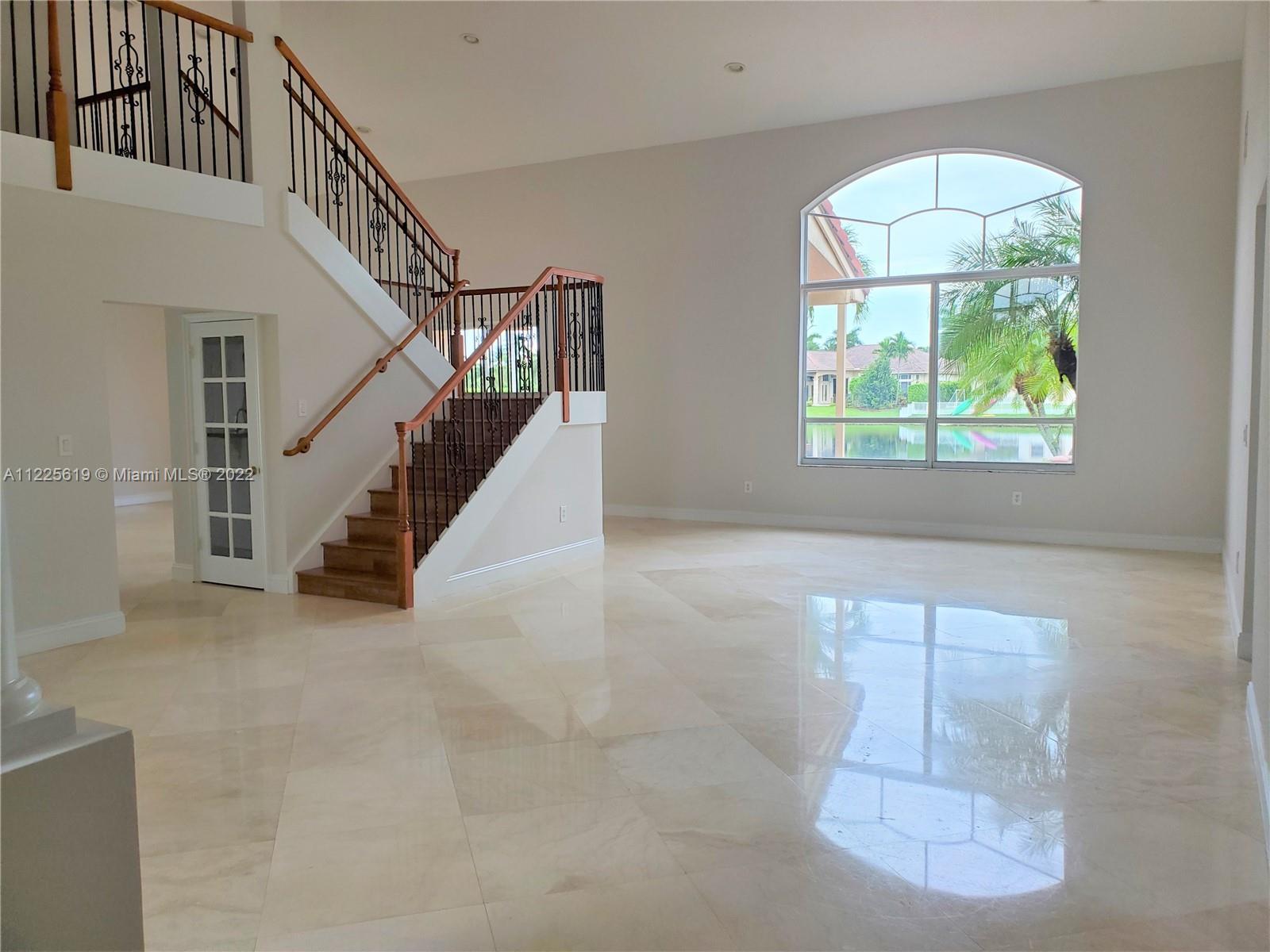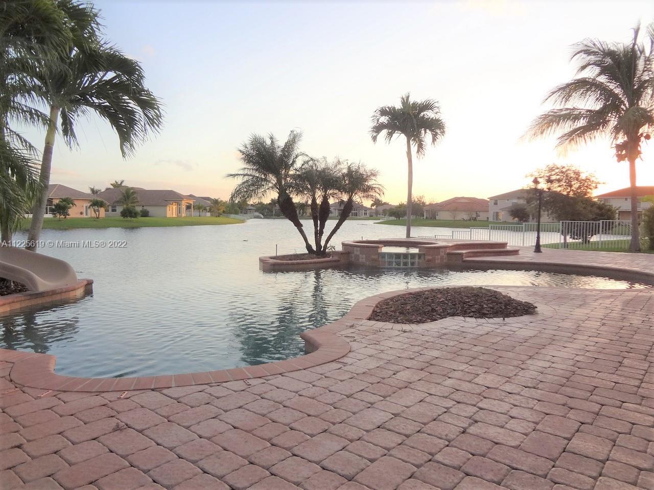 4BED+DEN/3.5BATH; MASTER & DEN DOWNSTAIRS, 3 BED & LOFT UPSTAIRS; WATERFRONT WITH INCREDIBLE VIEW OF WIDE LAKE, INFINITI EDGE POOL W/RAISED JACUZZI; 24X24 TRAVERTINO NAVONA MARBLE IN ALL LIVING AREAS; WOOD & LAMINATE IN STAIRS, BEDROOMS & DEN; LARGE 2-STORY FAMILY; CATHEDRAL CEILINGS IN LIVING & DINING; WOOD KITCHEN CABINETS W/GRANITE TOPS, STAINLESS STEEL APPLIANCES; GATED COMMUNITY W/RESORT STYLE CLUBHOUSE W/8500 SQFT HEATED POOL, TENNIS & BASKETBALL COURTSS, GYM, 24HR SECURITY. HOA FEE INCLUDES CABLE, INTERNET & ALARM.