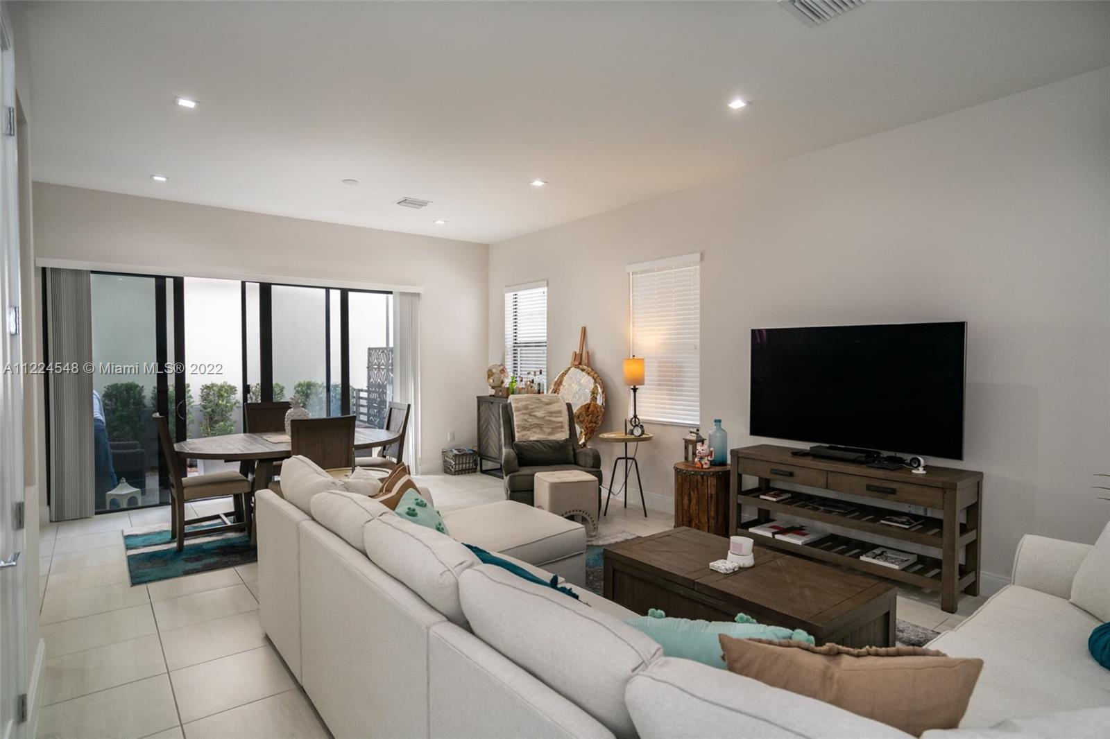 Come and see the Beautiful Canarias, Ibiza Model C located in Downtown Doral. This corner lot home has the Primary Suite with Spa Designed Bath, and 2 Additional Bedrooms with Ensuite Bathroom located on the 2nd floor. All Bathrooms are outfitted with Kohler Fixtures, and Frameless Shower Enclosures. Laundry Room comes with Washer & Dryer, and full set of cabinets. Downstairs is the Great Room with Ceramic Tile Floors, Volume Ceilings, lots of Natural Light. The kitchen has European Style Cabinets, Quartz Counters, Gas Range, and Built in Ovens and Refrigerator (all Jenn-Air). Located within a short walking distance to the New Clubhouse that has a state of the art Gym, resort style Pool. Close to shopping, dining, and entertainment. Excellent Schools. Some Furniture For Sale.