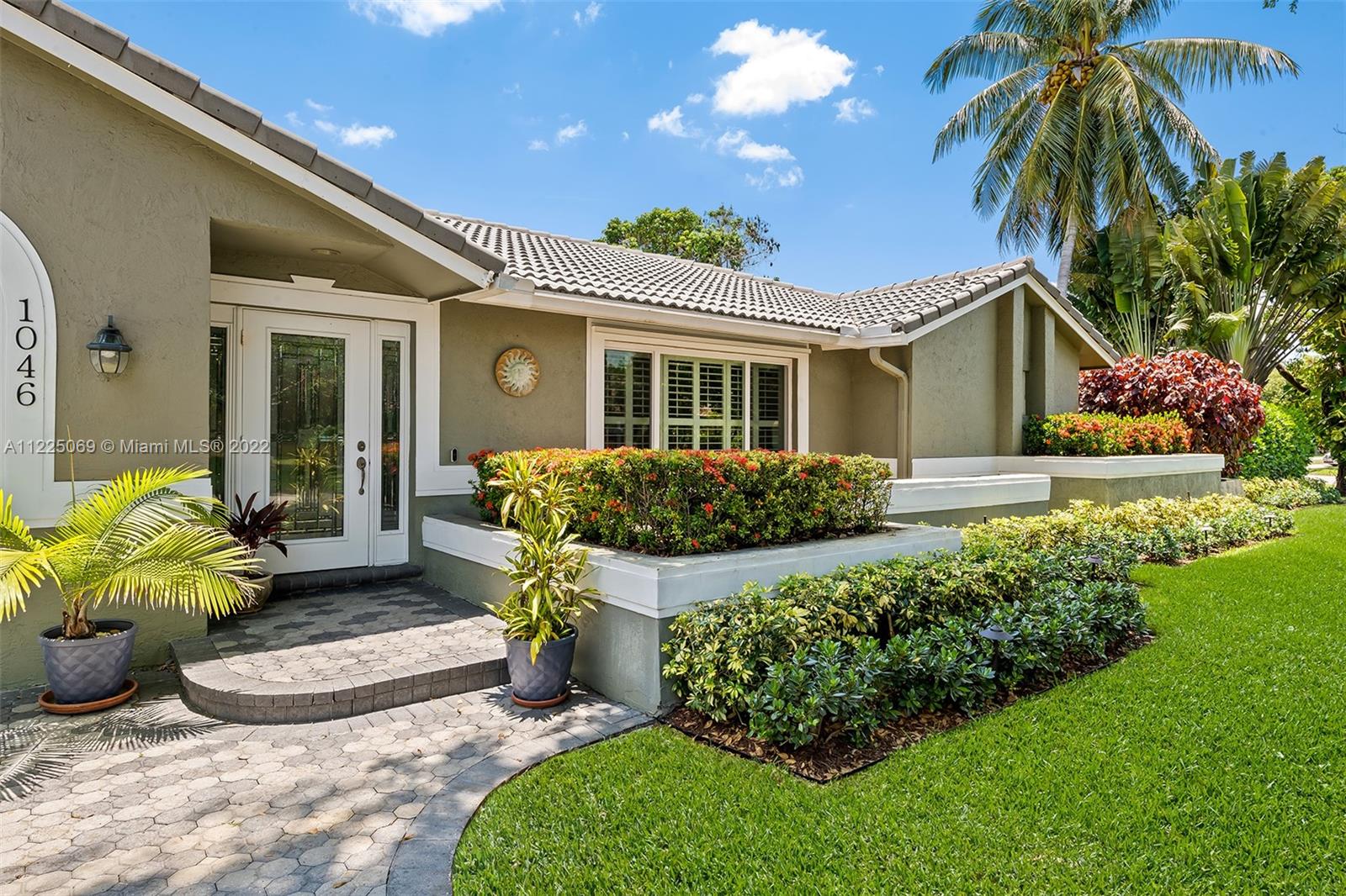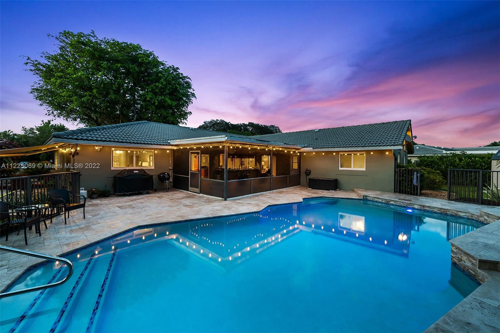 Welcome to 1046 NW 82nd Terrace in the desirable Ramblewood community. This beautifully maintained 5-bedroom, 2-bath, triple-split plan pool home sits on an oversized corner cul-de-sac lot. The manicured oasis features a private, fenced back yard, heated salt water pool, travertine pavers, a large screened lanai, and excellent landscape lighting. The sellers spared no expense on updating this home, from Kitchen Aid appliances to wood floors in living areas, recently redone baths (2018/2020), newer A/C (2018) and water heater (2016). Hurricane impact windows throughout except for patio sliders. Move-in condition with no HOA! Don’t miss the opportunity to call this one HOME!