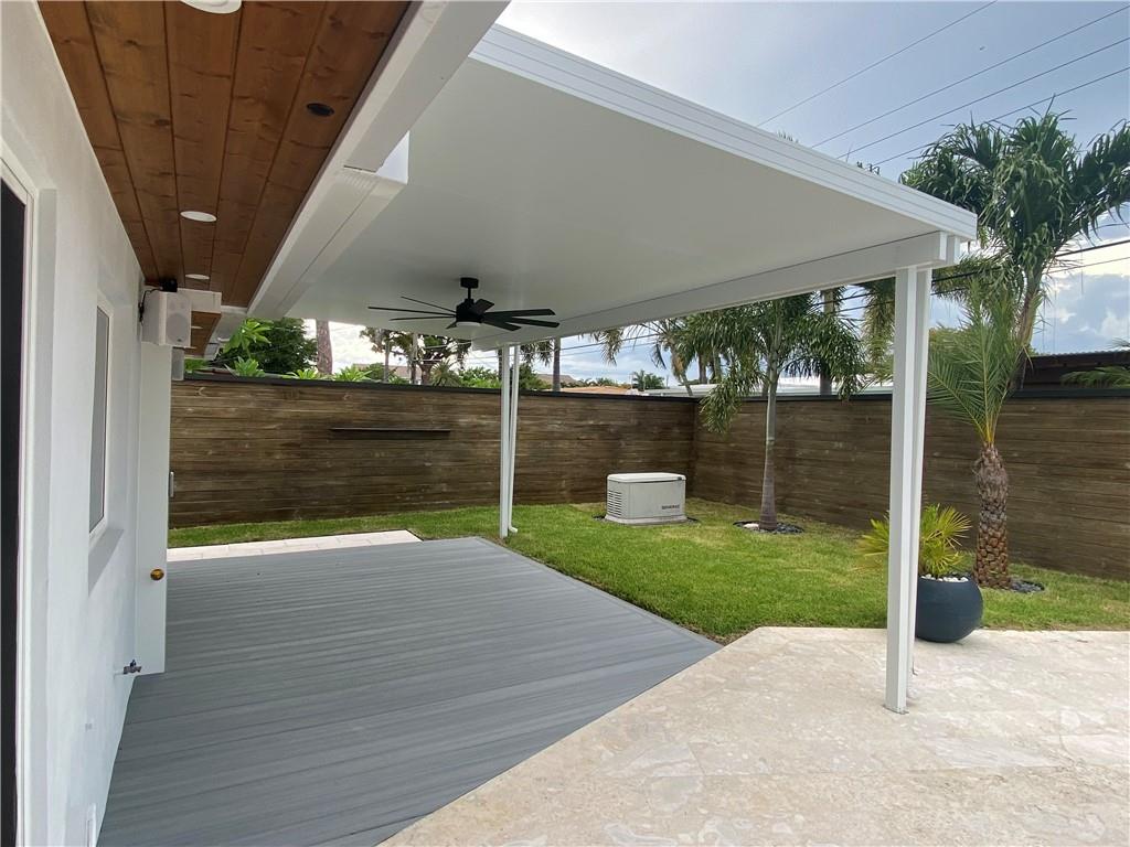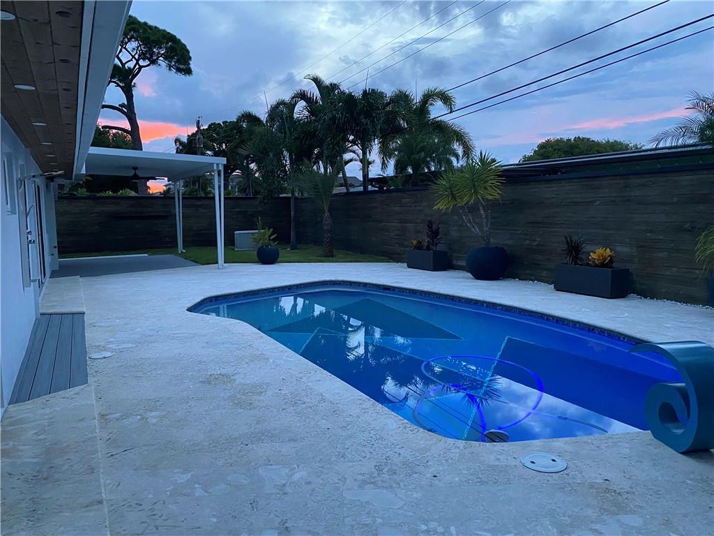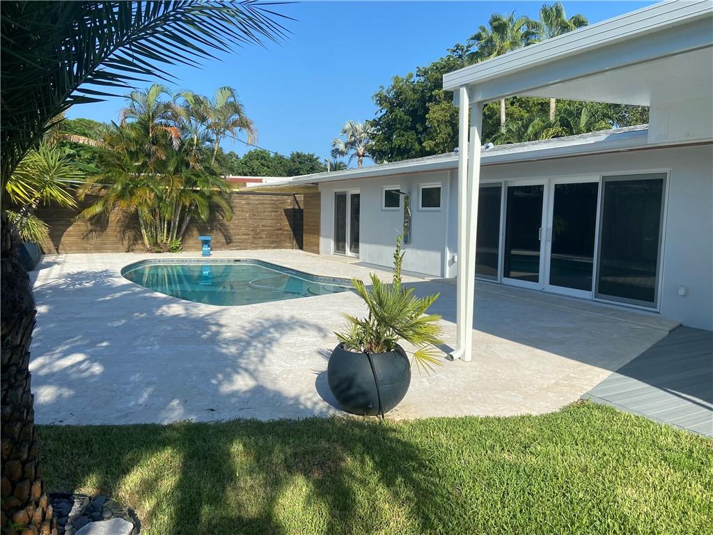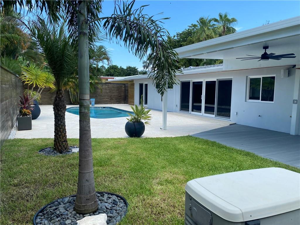 Completely remodeled (2022) 3 bedroom, 2 and half bathroom single family house in Pompano Beach. Auto GENERAC 20KW natural gas GENERATOR, new kitchen with SS KitchenAid appliances, BRAND NEW A/C (2022), NEW aluminium ROOF (2022), freshly painted, new driveway pavers, new landscaping, Samsung washer & dryer in large laundry room, salt heated pool, natural Caribbean coral pool deck (cold even during summer days), outside shower, night lights, vinyl IMPACT WINDOWS and doors, showers/bathtub with jets. SMART HOME (pool, NEST, smoke detector, cameras with motion detection and night vision, sprinkler system and more), brand new electronic blinds, TV wall with fireplace (75" LCD TV included), ready for outside kitchen (water, drain, electricity and gas prepared), TV antena, wine cooler.