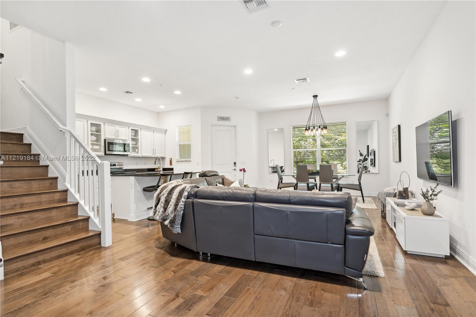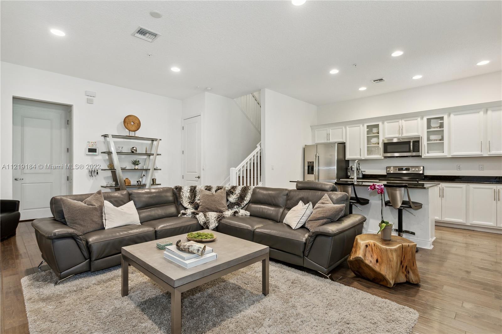 A MUST SEE!!. Gorgeous 3/2.5 Townhome in the beautiful boutique Community of CENTRAL FALLS of Pembroke Pines built in 2018. This Townhome offers Harwood flooring and 10ft-high ceilings throughout the house, 2 car garage(2 parking space in the drive way). Has an Open concept style, beautiful kitchen with stainless steel appliances & granite counter top, a large granite island and walk-in pantry. Laundry room on 2nd floor. Master bedroom offers a private balcony and large walk-in closet. HOA includes exterior maintenance & pest control, landscaping, roof, paint. The Community has pool and GYM. Excellent location near public & private schools, shopping, hospital and easy access to major highways. Some furniture for sale . Mirror in half bath & in 2nd Bath upstairs not included in the sale .