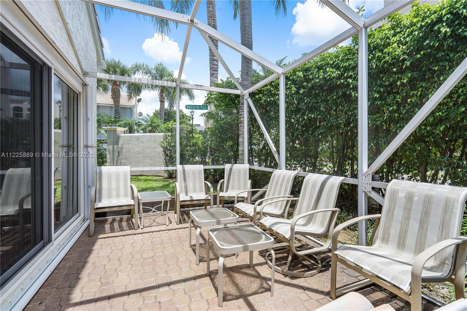 Fabulous 3 bedroom, 2 ½ bath one car garage Free Standing home located in Panache of Boca Pointe Country Club. Spacious renovated living/dining room, kitchen/breakfast room & laundry. Upgrades are new designer tile floors/ baseboards, modern fans, crown molding, custom mirrors, window treatments,LED lighting installed in main areas, accordian shutters, freshly painted. Kitchen w/new white cabinets, quartz counters, designer backsplash, stainless sink & appliances. Three Large walk in closets, screened lanai, new epoxy garage floor, custom canopy/front door/side window. Gorgeous new master bathroom & custom cabinets, tile, bathtub & shower, new hot water heater. The Clubhouse & Fitness Center. Social & Golf Membership Optional/24 hr guard gated Boca Pointe CC.AS IS and Priced to Sell!