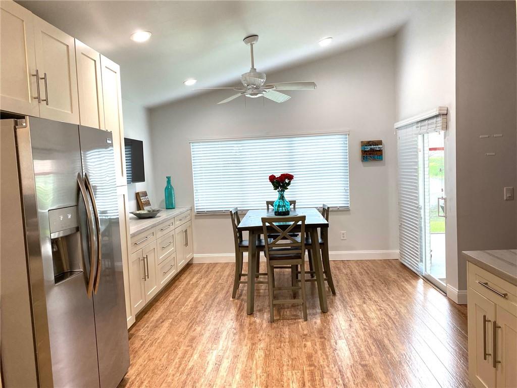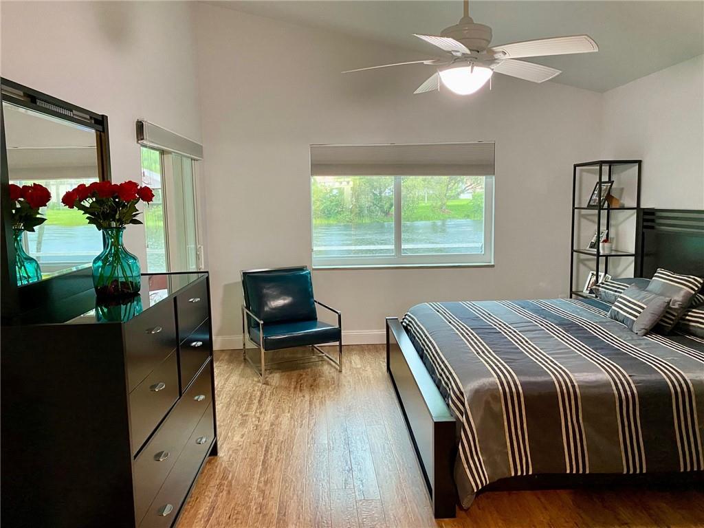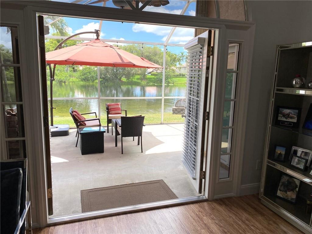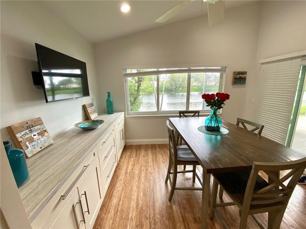 Beautiful lakefront home with a gorgeous designer kitchen w/ off-white wood cabinets, Quartzite countertops & stainless-steel appliances. This home offers a split floor plan, wood laminate floors, vaulted ceilings, hurricane impact windows & garage door, accordion hurricane shutters at the patio door, Ring doorbell, laundry room w/ newer washer & dryer. New roof & water heater from 2012, new A/C in 2021, Spacious living room w/ glass doors that open to the screened patio w/ backyard for family entertainment, lake views and the most spectacular sunsets. The Master suite retreat boasts large window & glass doors to the patio w/view of the lake, spacious walk-in closet, 4th bedr is currently being used as a gym (no closet). Cable & internet included Silver Lakes, sub. "Las Brisas"