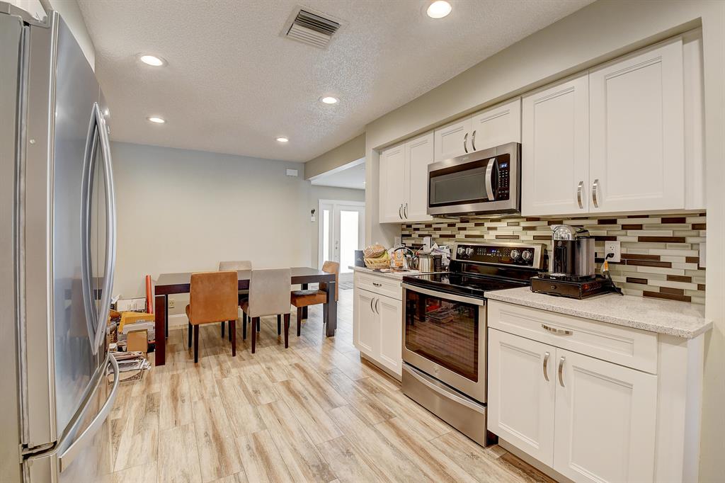 Amazing, super clean 3/2.5 plus den. Lakefront townhome in Boca Gardens. Largest model available in Boca Gardens at 2,268 sq ft. and one of the biggest townhomes in all of Boca. Totally remodeled. White shaker cabinets in kitchen with granite counters. Stainless Steel Whirlpool appliances, smart lighting and new gorgeous porcelain tile throughout the first floor. New LG Smart wifi washer/dryer on second floor. Downstairs bath totally remodeled with white cabinets and granite counters. Covered and screened lakefront patio as well as a large outdoor paver patio overlooking lake. New Impact windows and doors. HOA covers roof repair/maintenance,cable, common area maintenance, lawncare, outside building insurance, outside painting every 7 years.1 car garage and expanded paver driveway.