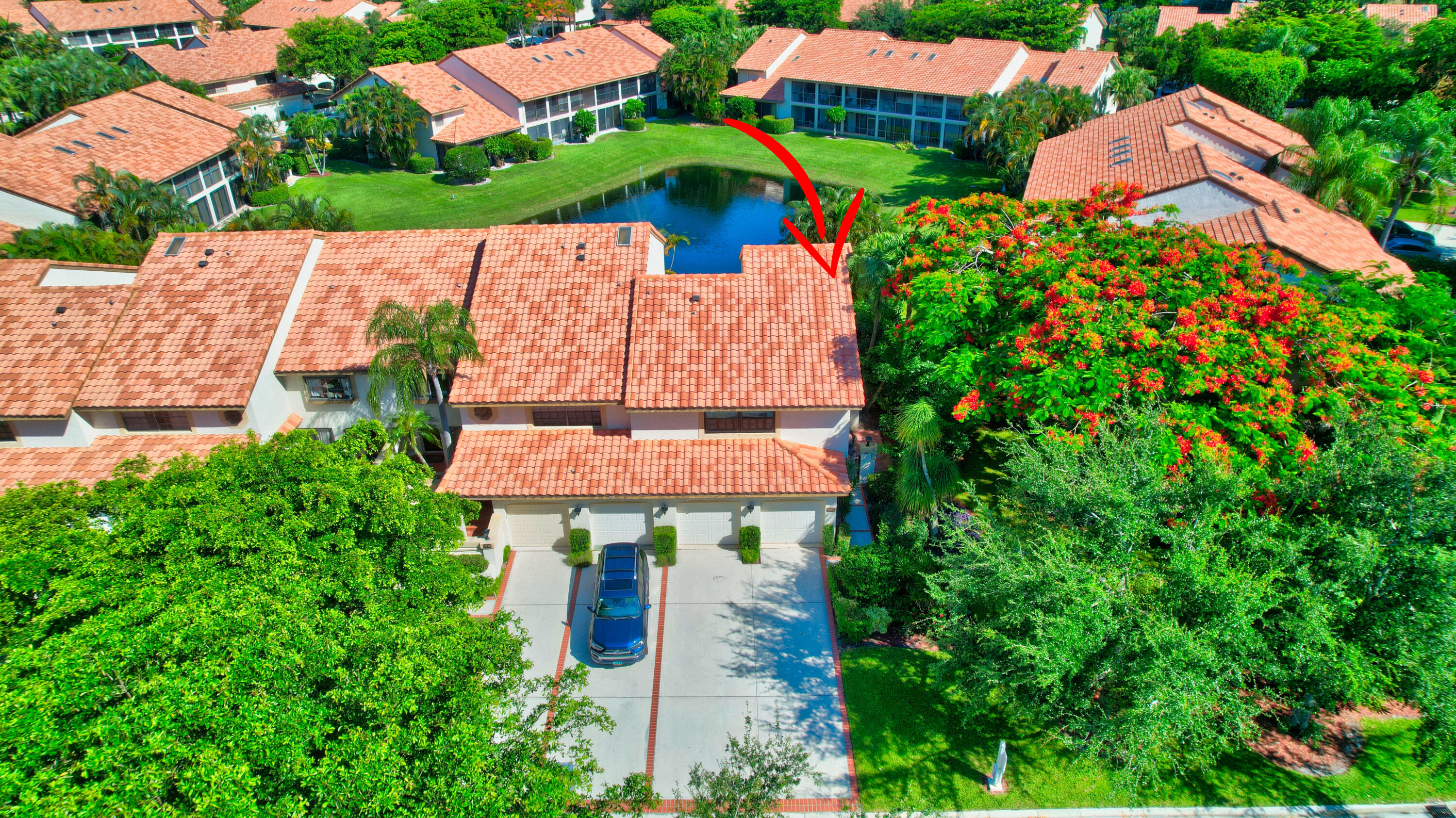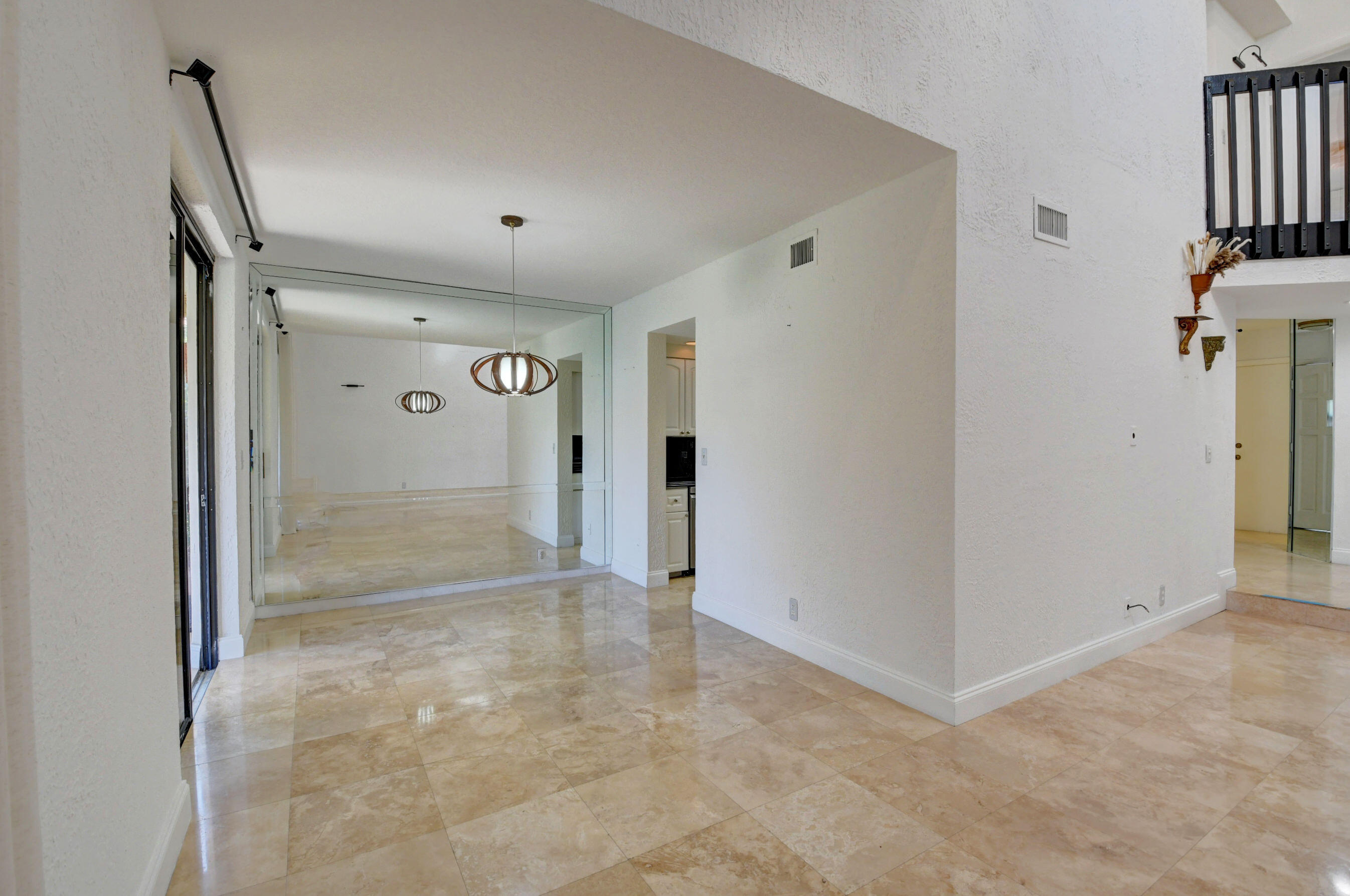 Highly motivated Seller. STUNNING!!! 3/2/1 Townhouse with a 2 car garage located in La Mirada a sub community of the prestigious Boca Pointe Country Club. Memberships are available but NOT mandatory. Enjoy lovely lake views from your enclosed patio. There is ample outdoor space to put a barbecue and the front private patio to sit and relax. This home has marble floors throughout. The eat in kitchen was updated with granite counter tops, refaced cabinets and stainless steel appliances. The refrigerator is only 6 months old and dishwasher and stove are just a couple of years old. Other upgrades are the hurricane windows with custom window treatments throughout. The home offers cathedral ceilings with lots of natural light.
