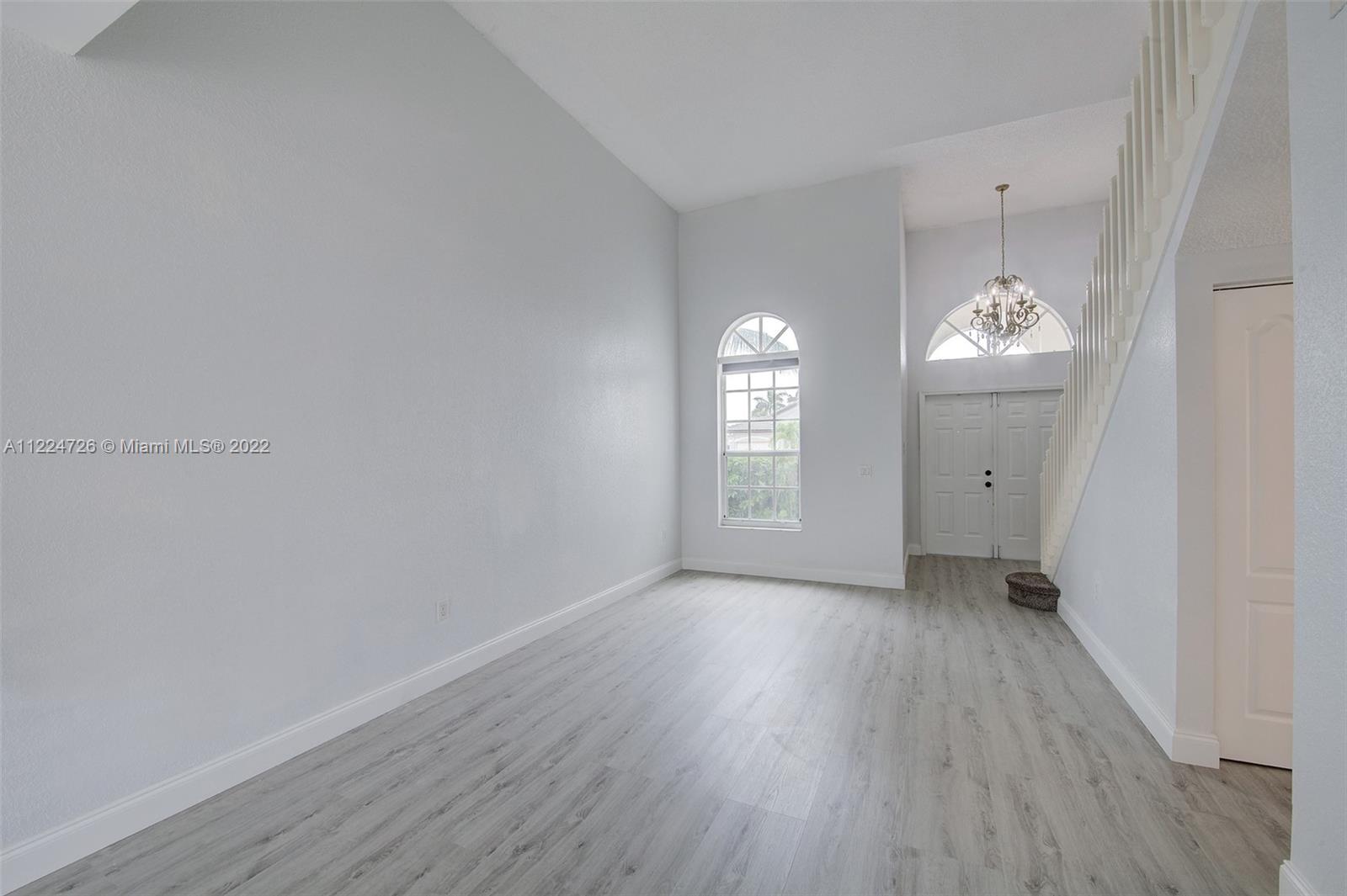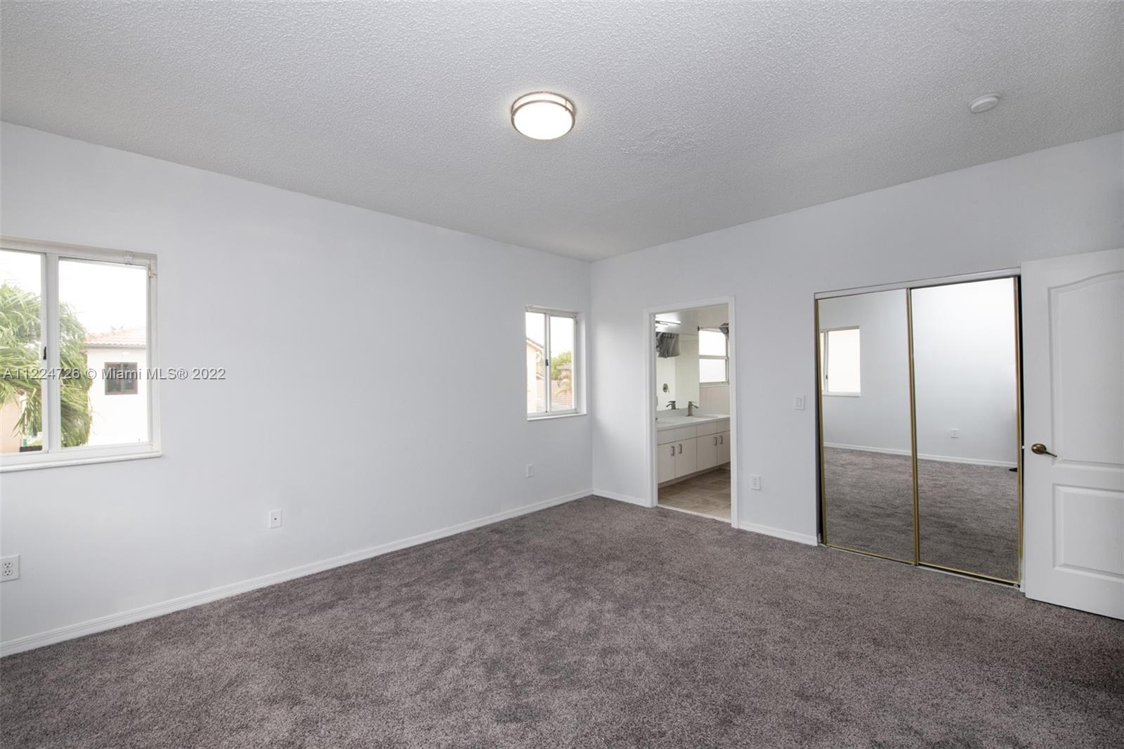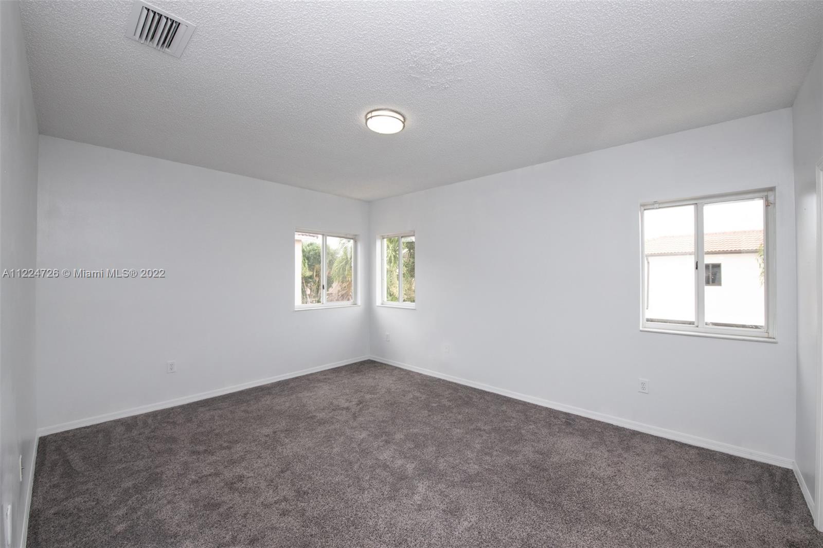 This easy-to-show, move-in-ready home feels like new! Perfectly located in the Spanish Lakes Community, near shopping centers, supermarkets, I-75, Turnpike, and Palmetto expressways. It features bright, spacious living, dining, a family room, 3 bedrooms, 2.5 bathrooms, and 1 car garage, which is converted into an extra room, in-law, guest room, or game room. Upstairs bedrooms have a shared bathroom, and the master bedroom has a walk-in closet and a large master bathroom with a shower tub combination, double sink, and bidet. NEW FLOORING, BRAND NEW ROOF (3/22), new interior and exterior paint jobs, and laundry room. The property also has a large backyard with a spacious back terrace Low HOA fees are $146 monthly, which include internet/cable front yard lawn maintenance, pool, and security
