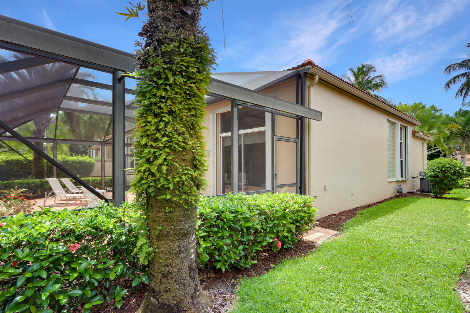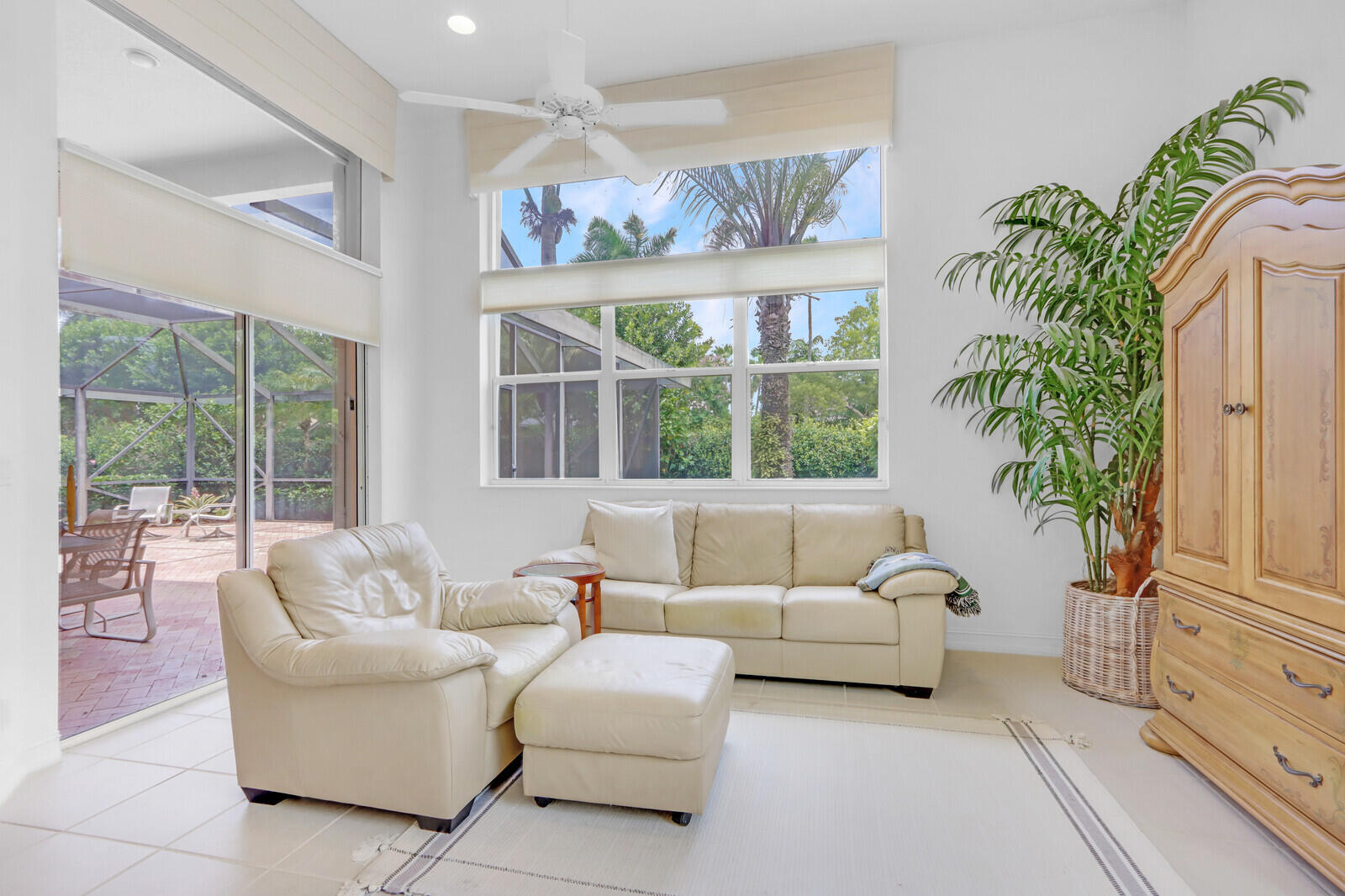 Move right into this elegant, neutral and bright 'Trevi' model offering wonderful upgrades, convenience and privacy! Double glass doors lead you to the spacious great room. Accented with designer window treatments, this home boasts high ceilings and an open, versatile floor plan. Enjoy the best of Florida living with the large fully screened lanai, which offers immense privacy, lush landscaping, and no pool! This one-owner home has been meticulously and lovingly maintained. The roof was replaced in August, 2017. NEW hot water heater (August, 2021), NEW interlocking-tile garage flooring (May, 2022), NEW washer and dryer (April, 2018), air conditioner replaced April 2018, stainless appliance package (July, 2017):Refrigerator, oven stovetop and microwave.