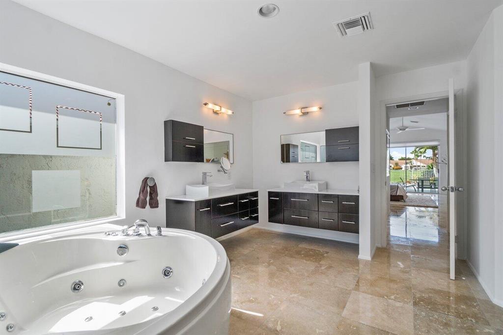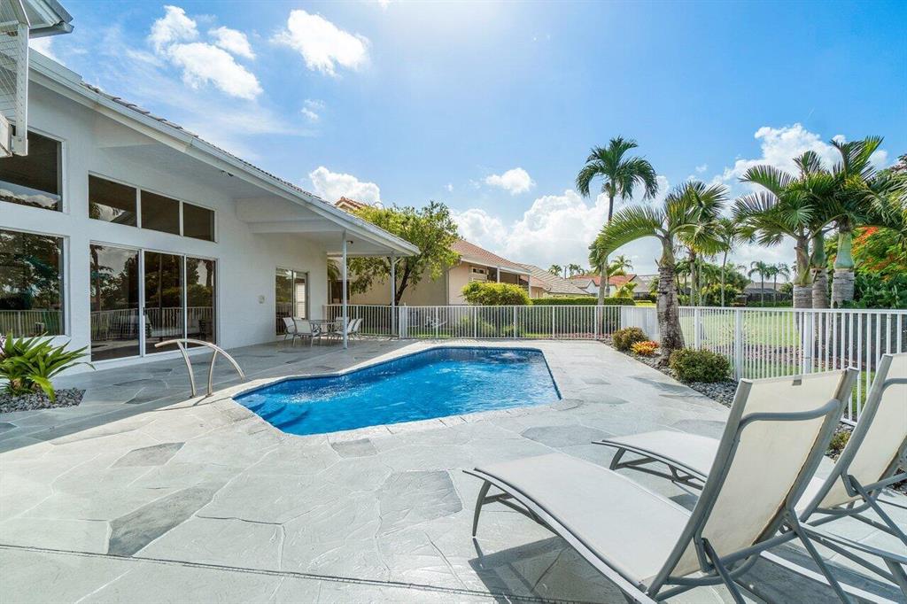Enjoy one of its kind model home in the lovely Boca woods community, where your second floor balcony overlooks Lakes 11 green. This home is a spacious 3679 sq ft under air (4524 sf total) with dramatic high ceilings, master bedroom with 2 walk-in closets plus 3 more bedrooms, 3 full baths, a powder room and a cabana bath. All bathrooms are strikingly done with contemporary Porcelanosa tile. This home has 2 HVAC units (main w/ air filtration unit) and 2 hot water heaters. All water pipes throughout the house were replaced. Azure blue pool has new diamond brite and a tranquil patio surrounding it. The landscaping was just beautifully refreshed with new custom lighting. Impact windows throughout and new front door are on order and will be fully paid prior to closing.