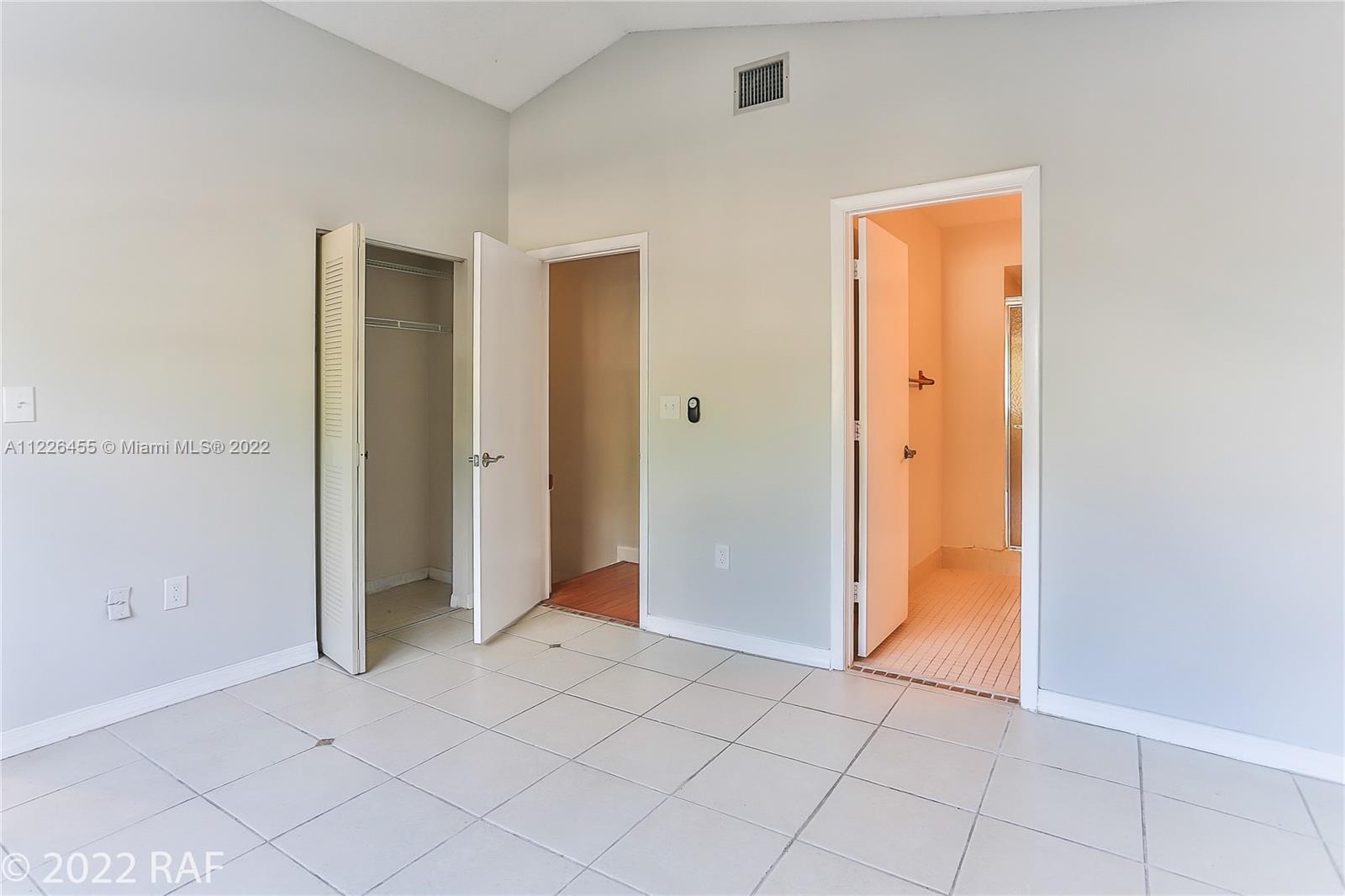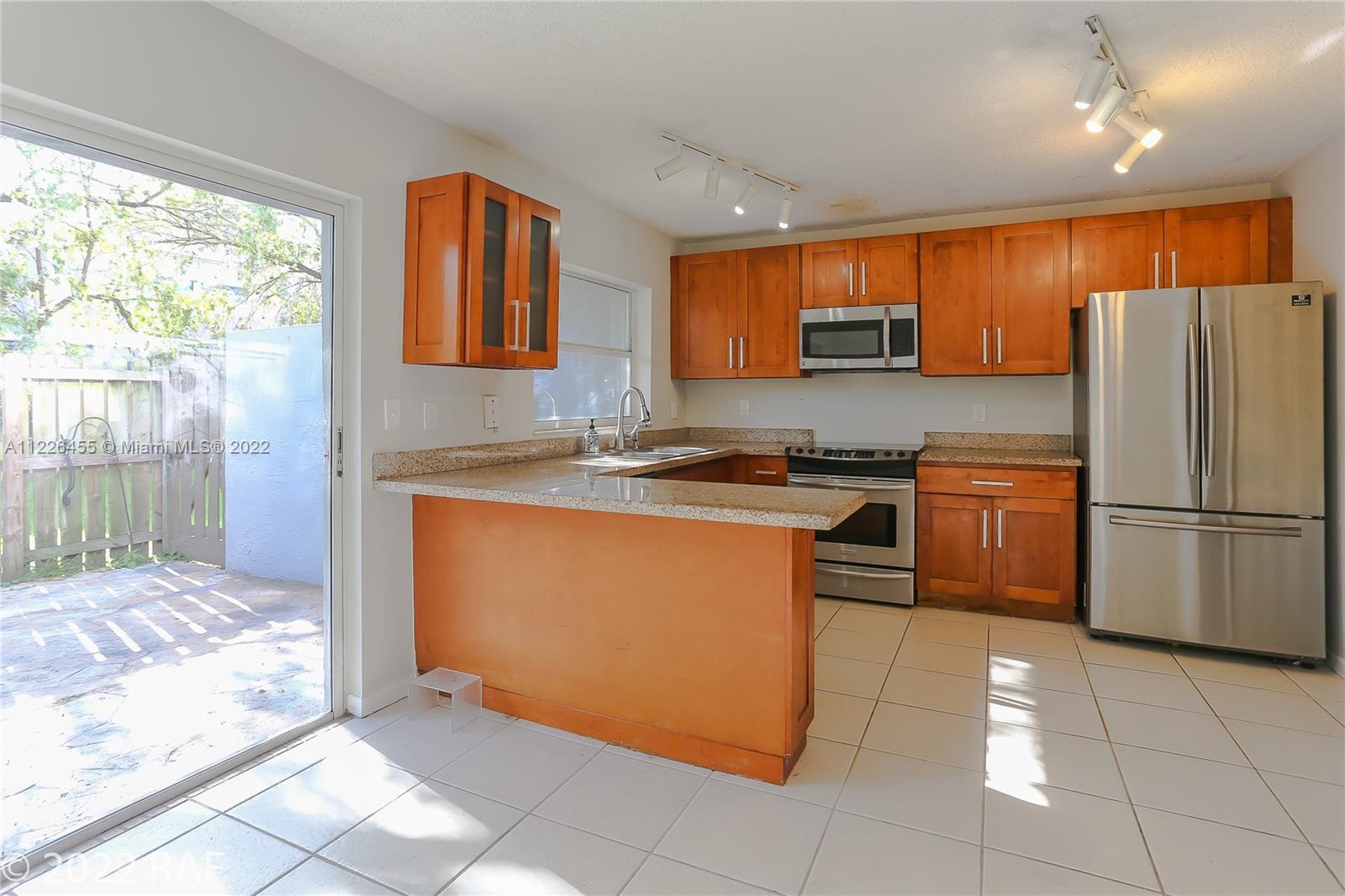 Spacious 3 bedroom, 2 1/2 bath town home with air conditioned / tiled single car garage. Kitchen has 16x16 tile floor, cherry, shaker style wood cabinets, stainless steel appliances and granite counter tops. Living area has vaulted ceilings and 16x16 tile floors - no carpet. Upstairs has cherry wood laminate flooring and tile. Private fenced patio. Bathrooms are original condition. Needs some TLC. No hurricane shutters. Garage plus 2 additional parking spaces plus guest spots. Terrific guard gated community with 2 community pools, clubhouse, fitness center, tennis courts, sauna and racquetball court. Walking distance to Memorial West Hospital; Pembroke Lakes Mall; and CB Smith Park.