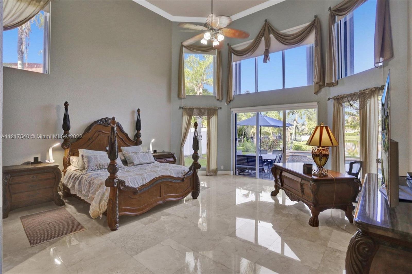 Stunning home with 5 bedrooms plus an office, 3 full bathrooms, 3 half bathrooms, pool & lake, in the guard gated section of Silver Lakes! This home features volume ceilings, marble and hardwood flooring throughout, and a beautiful wrought iron railing leading to the upper level. The upgraded gourmet kitchen is complete w/granite countertops, wood cabinetry & stainless steel appliances. Oversized master suite with sitting area, custom walk-in closets, and an upgraded master bathroom. The 5th bedroom is currently set up as a huge game room! Custom cabinetry in the laundry room and garage. Enjoy the fully fenced-in backyard with a large pool, covered sitting area, and grassy area, overlooking the peaceful lake.