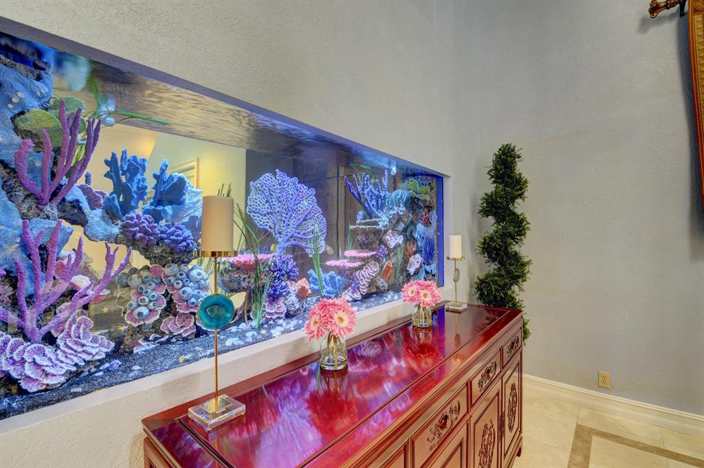 One of the largest custom courtyard estates in rarely available Mediterrania. This 5BR/4.5 bath house sits on one of the largest lots in the community allowing not only the courtyard tropical oasis feel, but a large backyard with a private deck, grass field and fruit trees. INTERIOR JUST FRESHLY PAINTED WHITE. 2 story kids wing with a 400 foot game room and an upstairs home theater room with 2 rows of seating and an Epson projector with 120 inch screen. A striking 500 gallon salt water tank with exotic fish and colorful coral. Large kitchen with island and rare Palomino granite counter tops from Brazil. Gas cooking with Thermador cooktop double ovens, and Viking refrigerator. Large master wing with private office, 2 built in walk in closets and zen rain shower with a high end jacuzzi tub.