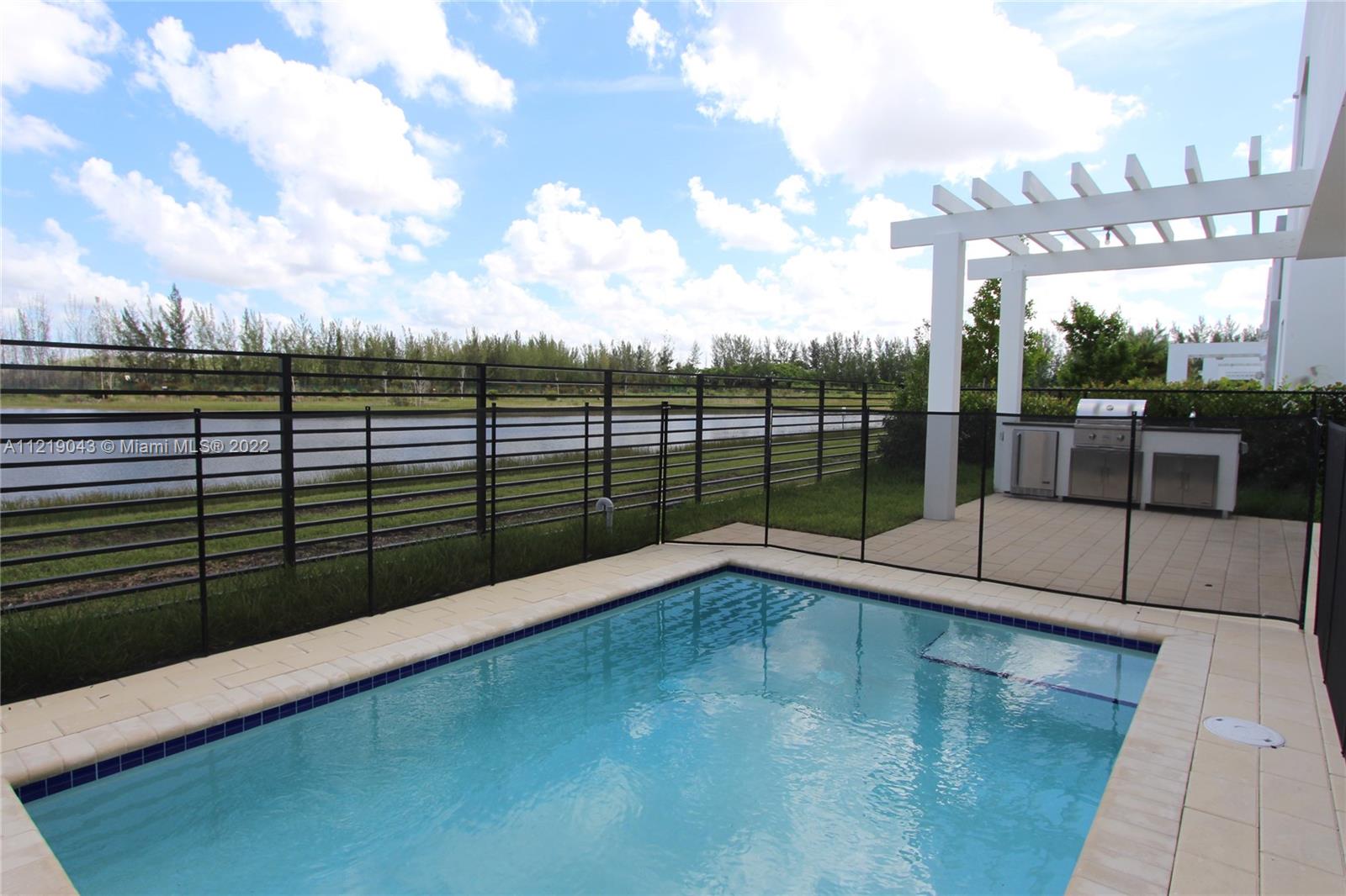 Gorgeous single home in Doral city. Nice lake and garden view, spacious, bright, porcelain floors, modern kitchen, nice patio, private pool, terrace and more. Gated community with 24/7 security. Central lake with fountains, luscious landscaping, bike trail, barbeque, fitness center, sauna, club house, children playroom and more. THE MOST BEAUTIFUL HOUSE IN MODERN 45 AT THE BEST PRICE