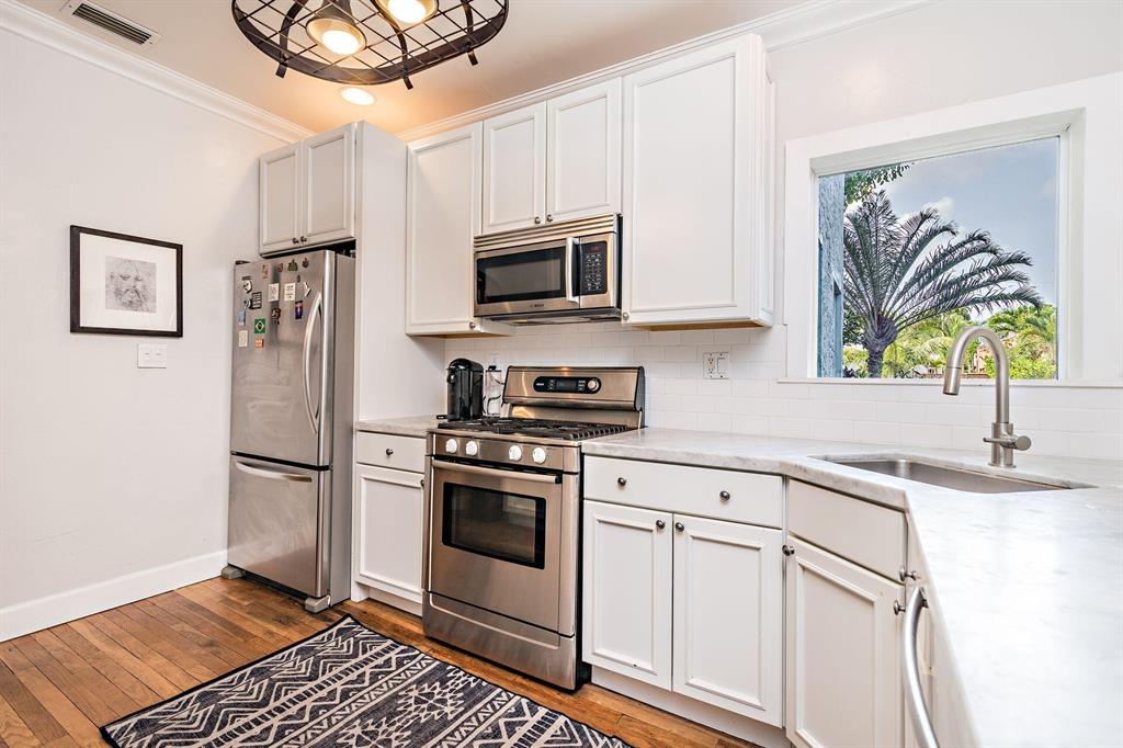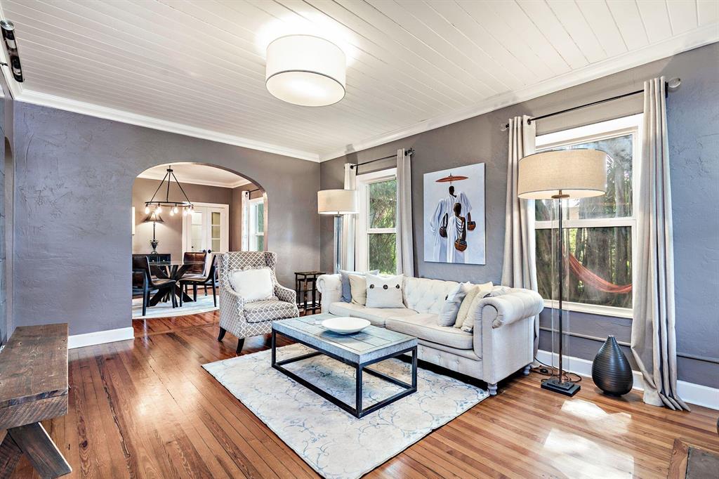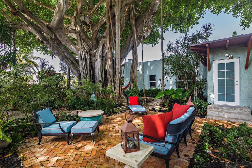 Charming Spanish style cottage in Historic Sunshine Park! This 3BR/2BTH home is canopied by a Banyan tree that shades the large double lot. Arches & stylish tiles great guests on the front porch. Beautiful interiors, large living room featuring a fireplace & hardwood floors throughout. Formal dining room, great kitchen, marble countertops, gas range & white shaker cabinets. Primary bedroom with gorgeous views & access to the garden. en-suite subway tile bath with marble top vanity. Front den can be additional bedroom. Renovated hall bath, third bedroom has access to deck & yard. All impact windows! The property also has a detached garage. Incredible yard with Chicago brick patios, walkways & lush landscaping. Close to PBIA, Palm Beach Island, The Square (CityPlace) & the Norton Museum.
