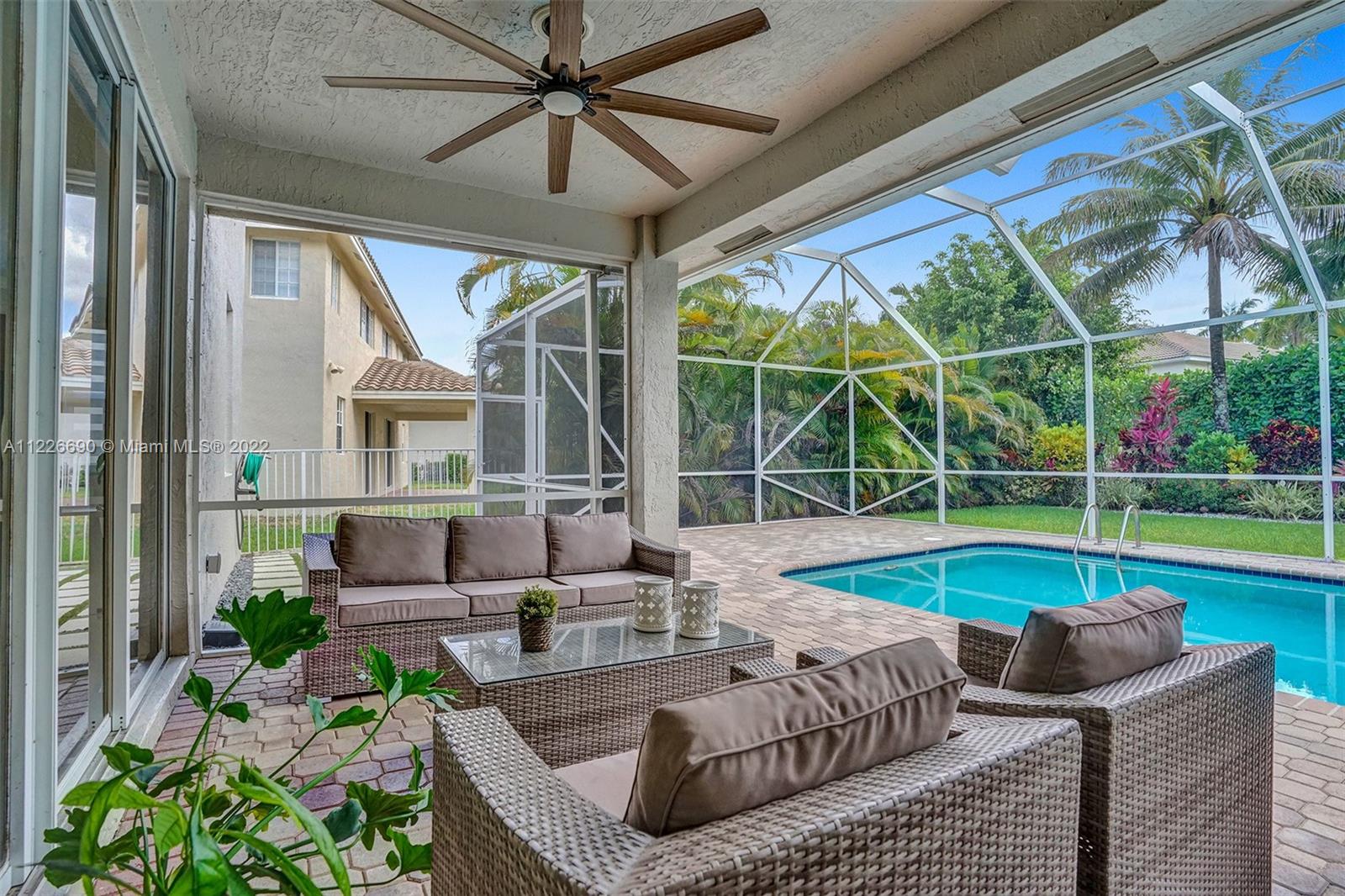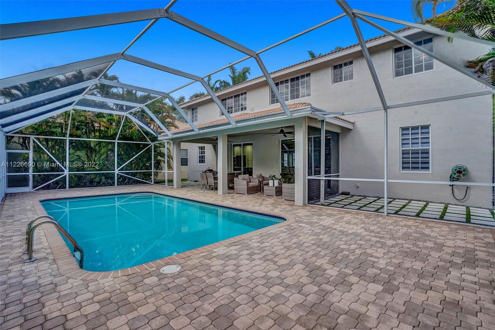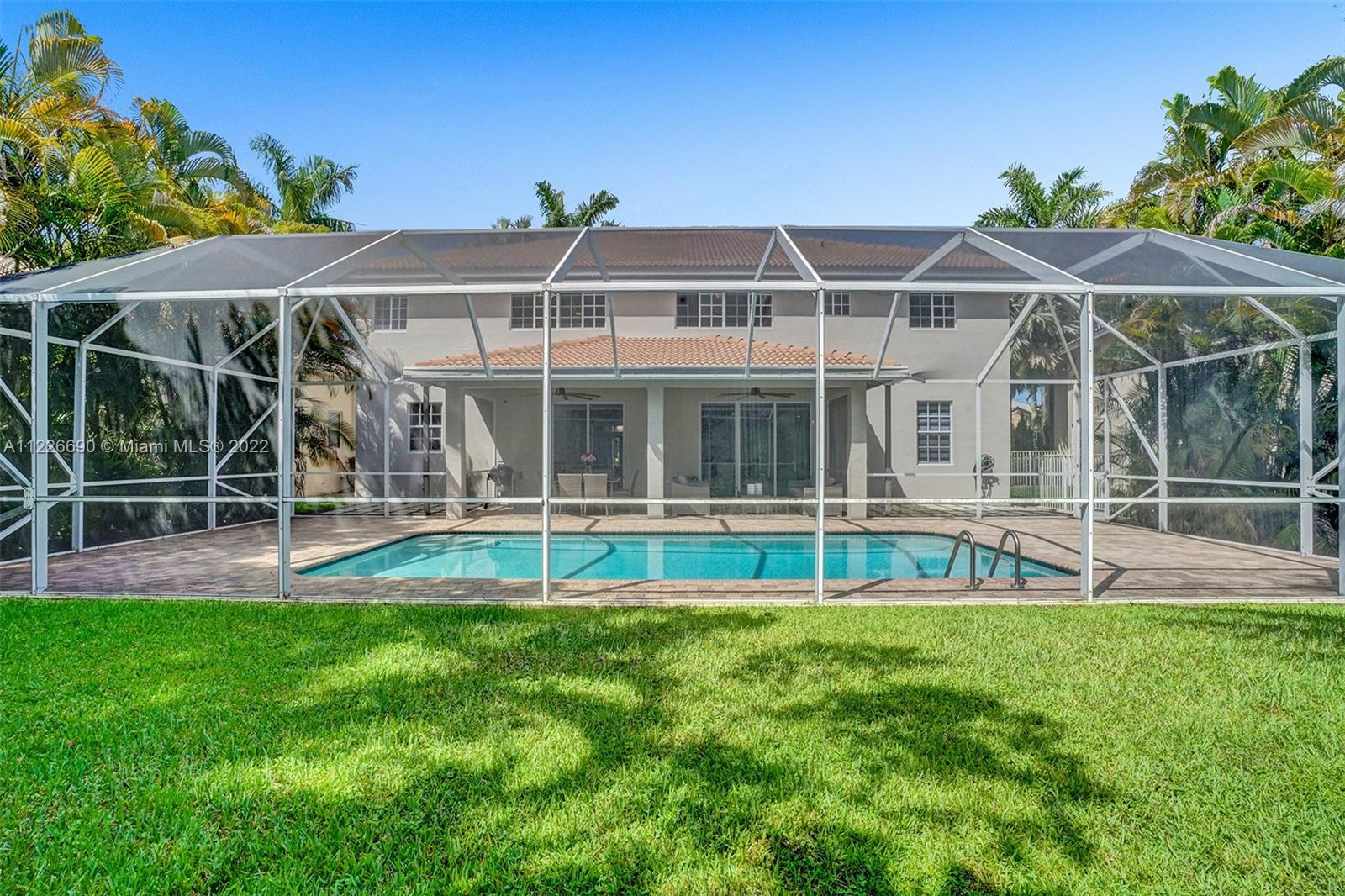 STUNNING MODERNIZED WESTON HILLS HOME. THIS HOME FEATURES 5 BED WITH OFFICE/DEN, 4 BATH, 3 CAR GARAGE AND HEATED POOL. ALL SPACIOUS BUILT-IN WALK IN CLOSETS. BRAND NEW MODERN KITCHEN WITH WALL OVEN, CENTER ISLAND, QUARTZ COUNTERTOPS AND WALLS. PORCELAIN FLOORING DOWNSTAIRS AND WATERPROOF WOOD FLOORING UPSTAIRS, NEW BATHROOMS, LED LIGHTING, GLASS STAIRCASE. FRESHLY PAINTED EXTERIOR. FULL PANEL PROTECTION, HIGH IMPACT FRONT DOOR, SCREENED POOL W/ SPACIOUS PAVER PATIO AND OVERHANG, PRIVACY HEDGED. SILHOUETTE WINDOW TREATMENTS, BUILT-IN TV UNIT IN FAMILY ROOM. NOTHING TO DO BUT MOVE IN.