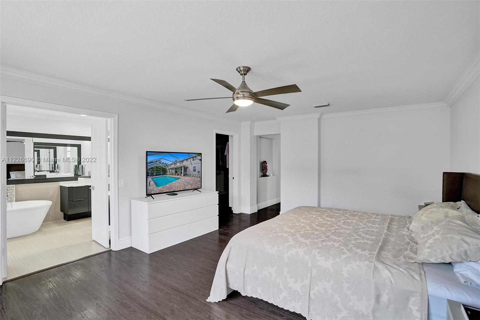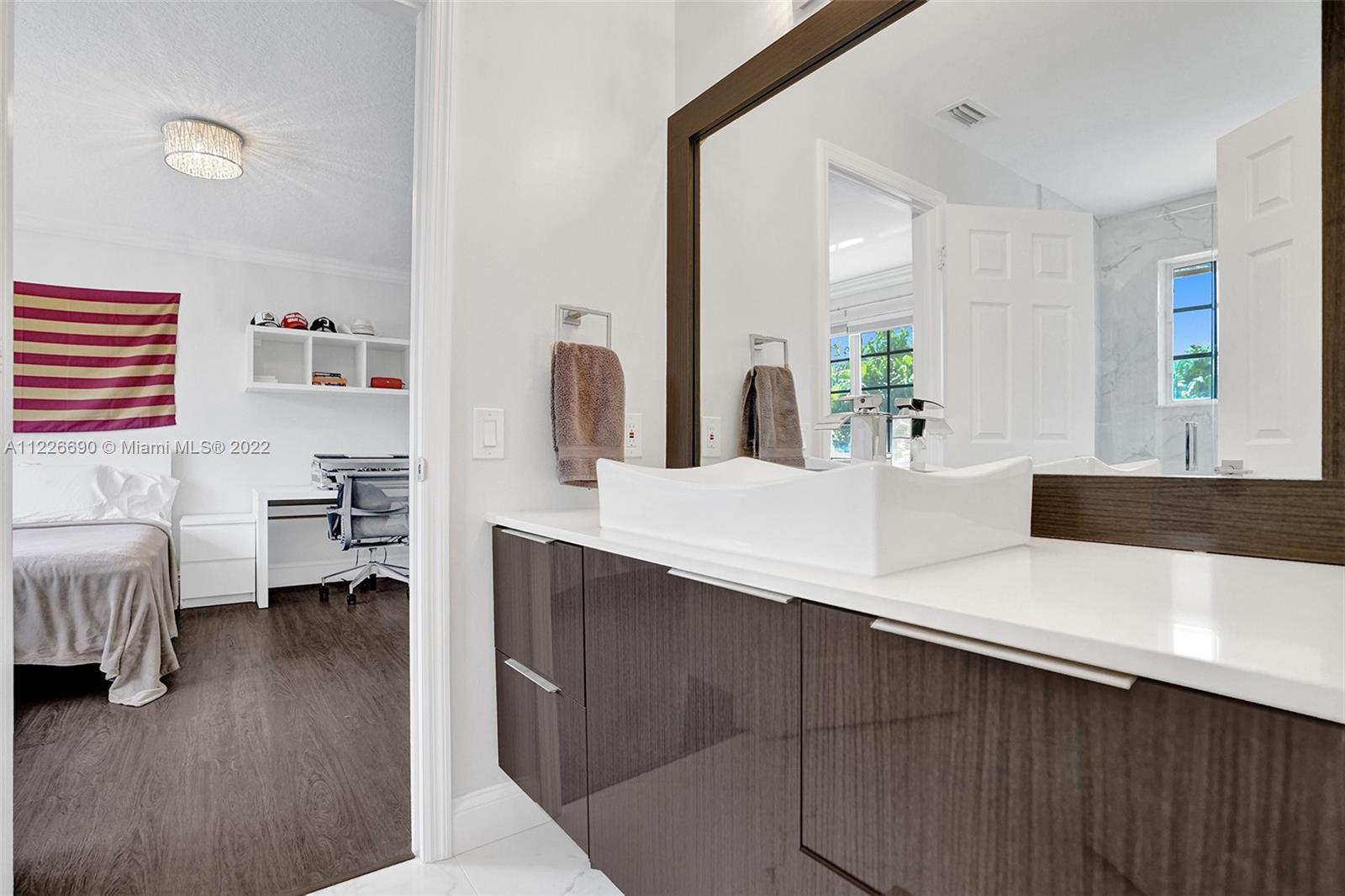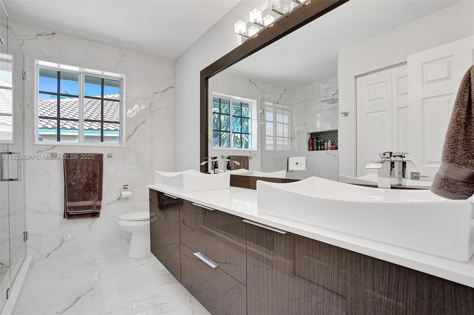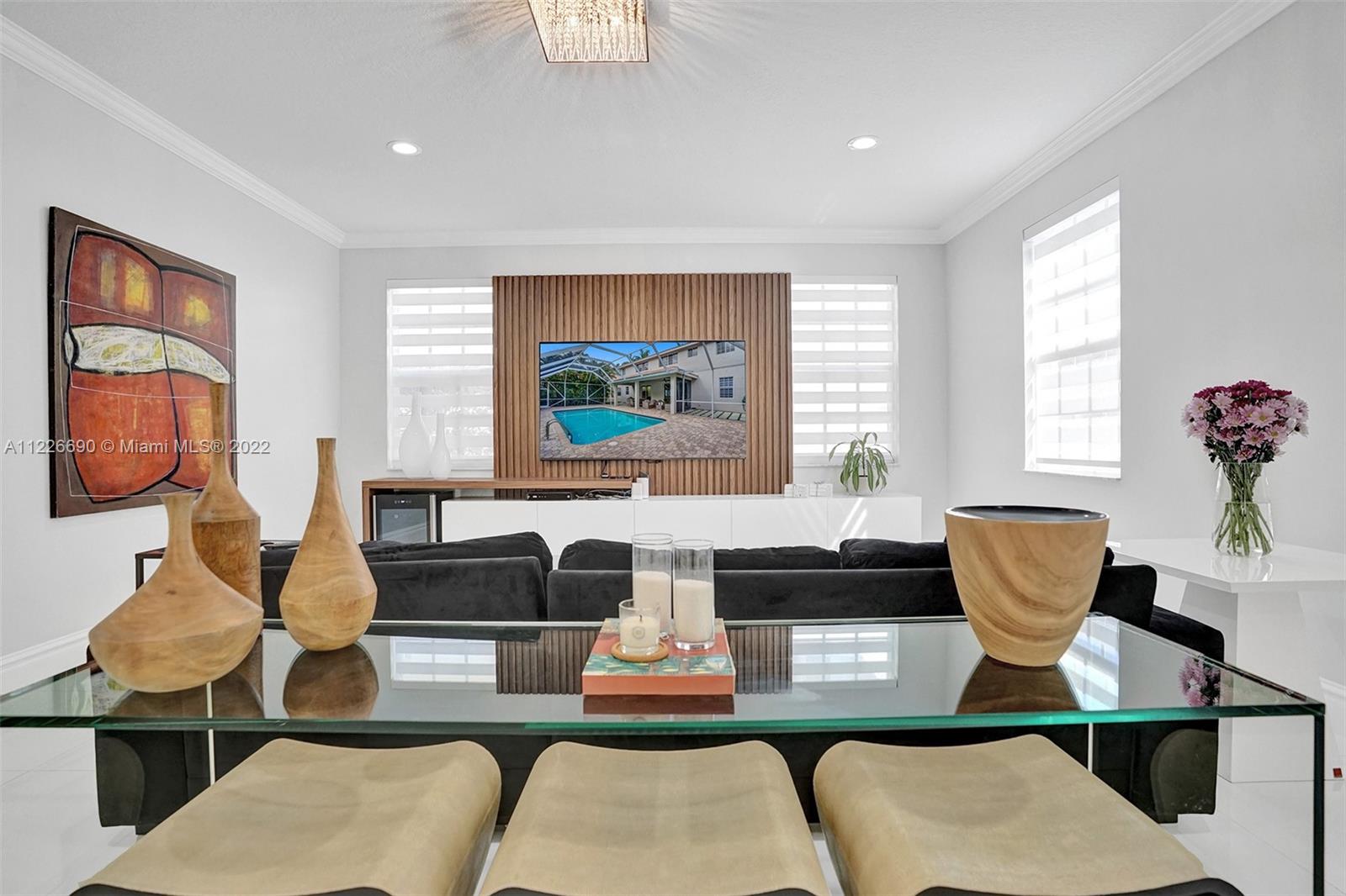 STUNNING MODERNIZED WESTON HILLS HOME. THIS HOME FEATURES 5 BED WITH OFFICE/DEN, 4 BATH, 3 CAR GARAGE AND HEATED POOL. ALL SPACIOUS BUILT-IN WALK IN CLOSETS. BRAND NEW MODERN KITCHEN WITH WALL OVEN, CENTER ISLAND, QUARTZ COUNTERTOPS AND WALLS. PORCELAIN FLOORING DOWNSTAIRS AND WATERPROOF WOOD FLOORING UPSTAIRS, NEW BATHROOMS, LED LIGHTING, GLASS STAIRCASE. FRESHLY PAINTED EXTERIOR. FULL PANEL PROTECTION, HIGH IMPACT FRONT DOOR, SCREENED POOL W/ SPACIOUS PAVER PATIO AND OVERHANG, PRIVACY HEDGED. SILHOUETTE WINDOW TREATMENTS, BUILT-IN TV UNIT IN FAMILY ROOM. NOTHING TO DO BUT MOVE IN.